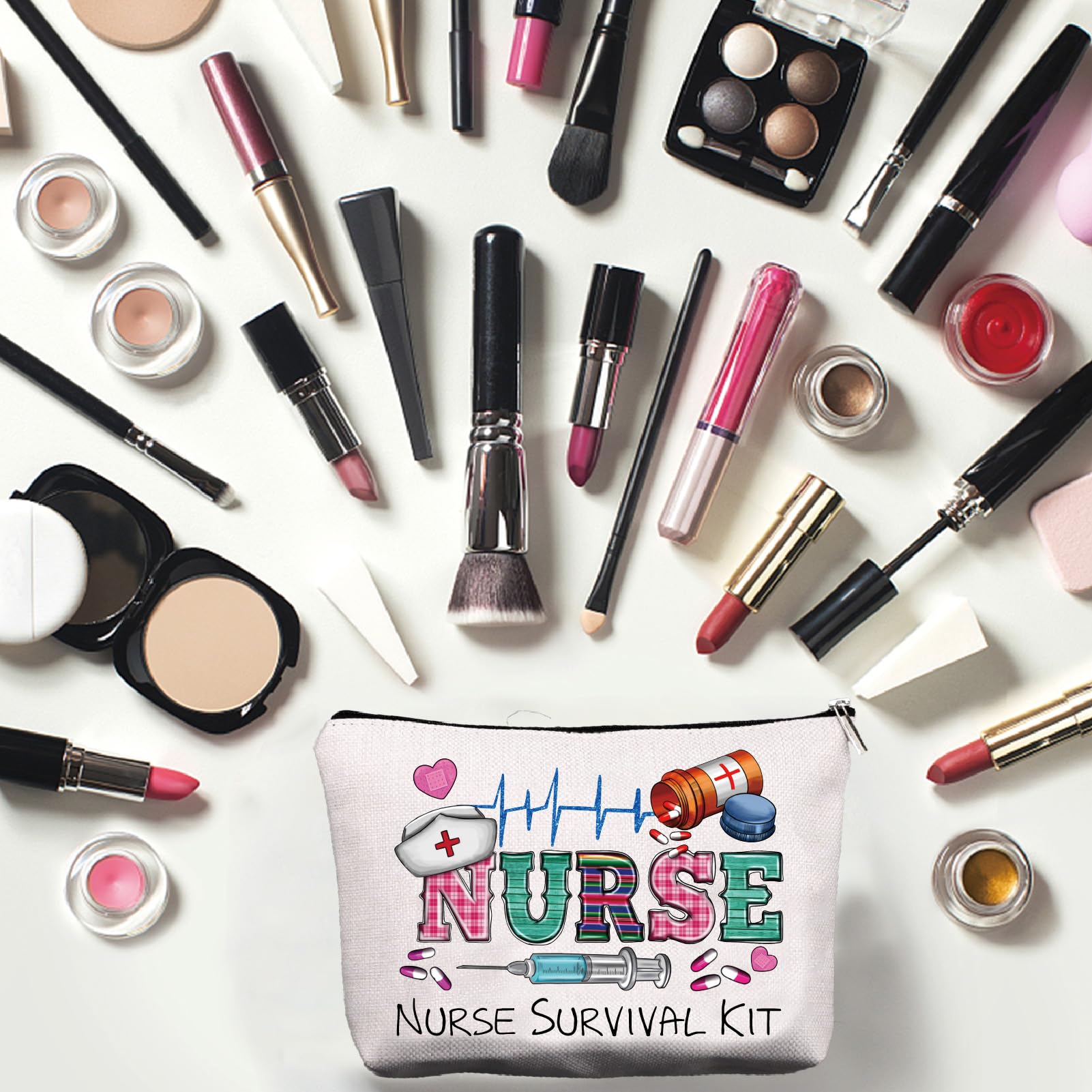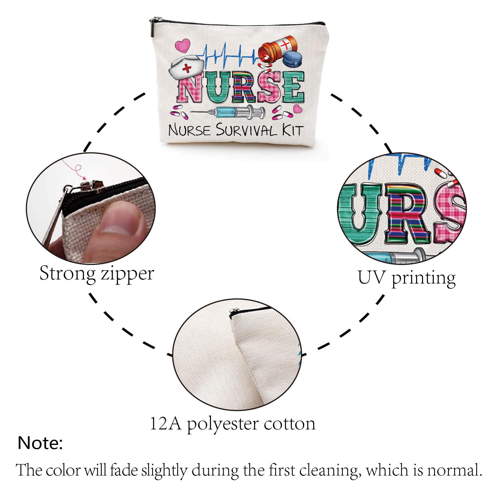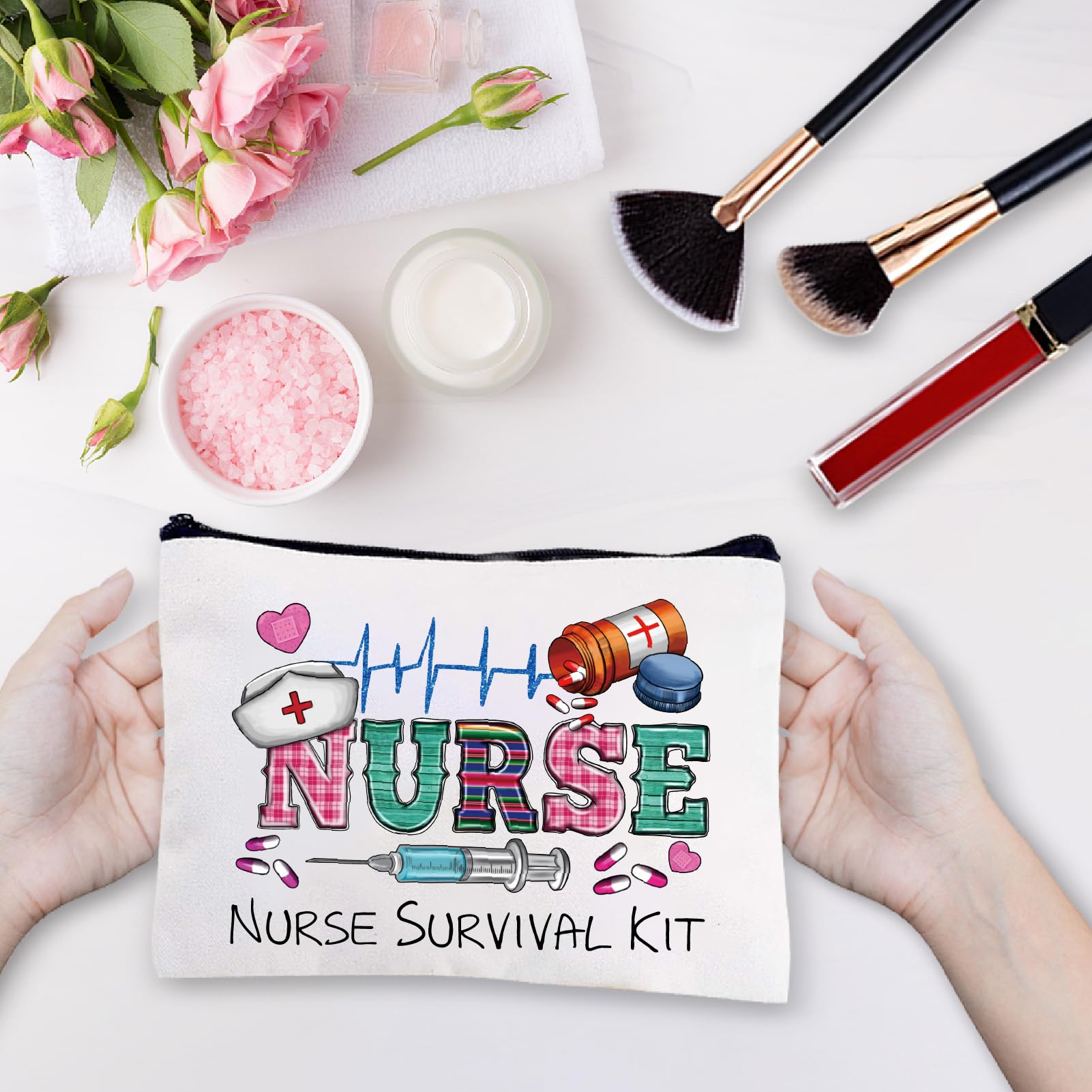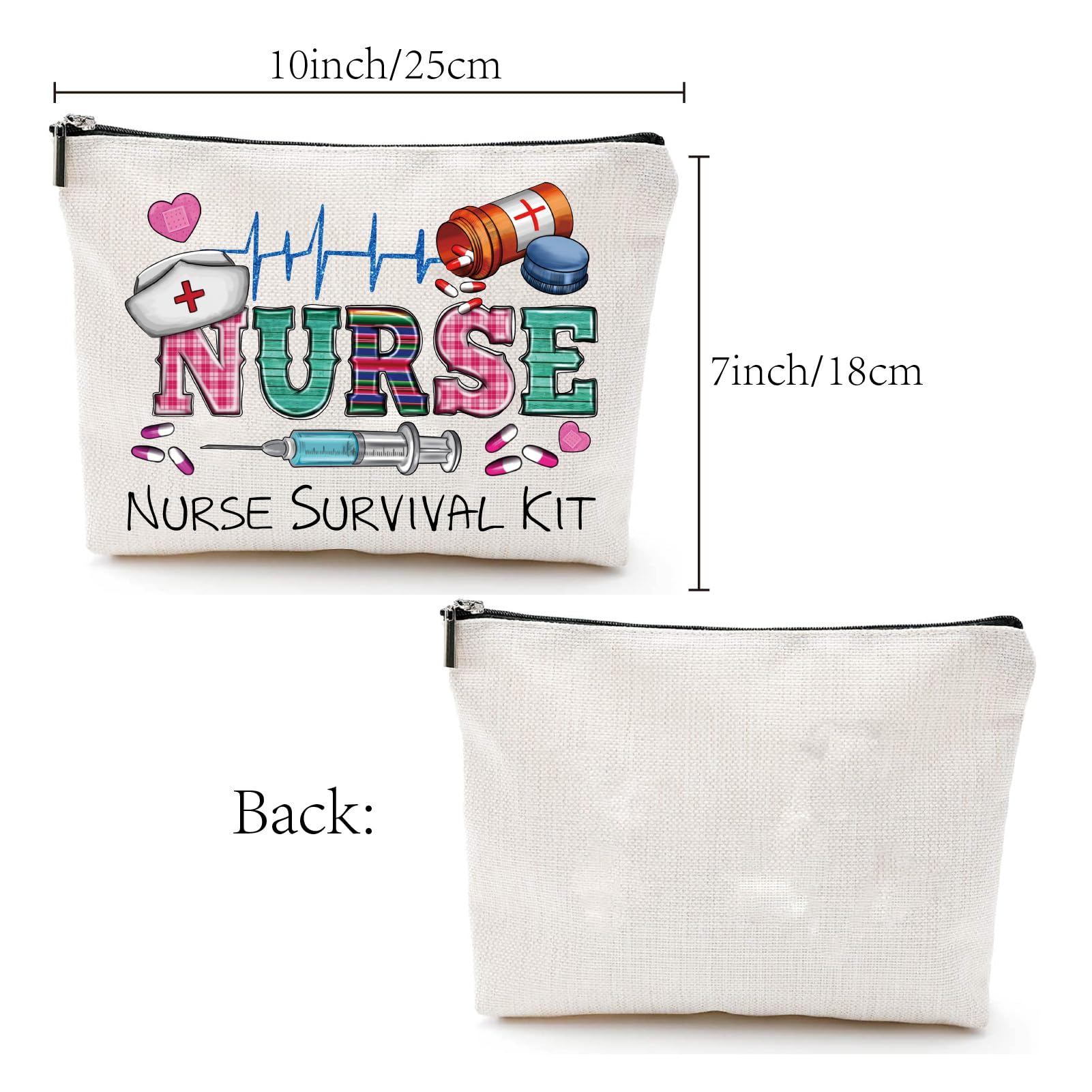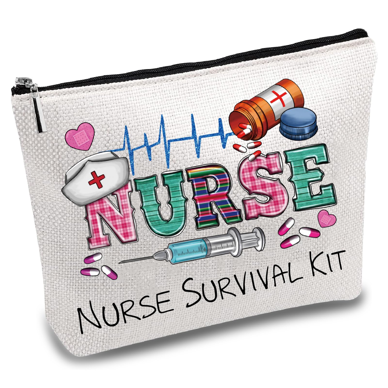 CREATCABIN Krankenschwester-Schminktasche-Überlebenskit-Tasche-Geschenk Für Frauen,Canvas-Kosmetiktasche,Mehrzweck-Stifteetui,Reißverschlusstaschen,Kulturbeutel,Reisetasche,Geldbörse Studentin,25x18cm