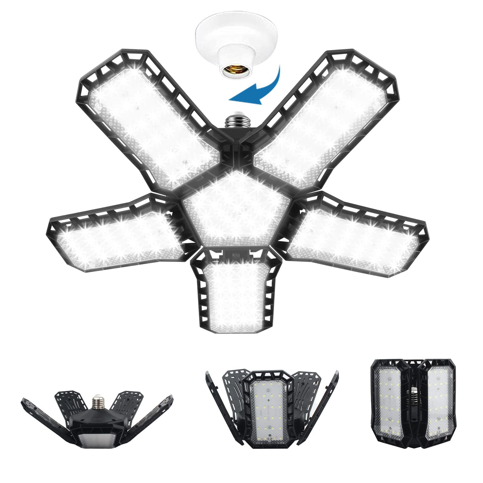 2,Neues Upgrade-Werkstatt Deckenleuchteein flexibles Design.(5+1)Die 5 einstellbaren Paneelen der deckenleuchte werkstattlampe können von 0 ° bis 90 ° gefaltet werden, und der Beleuchtungsbereich kann nach Belieben angepasst werden, um die zufriedenstellendste Beleuchtung zu erzielen. und die Beleuchtung kann den 360 ° -Band abdecken,Sie können die gesamte Garage beleuchten.