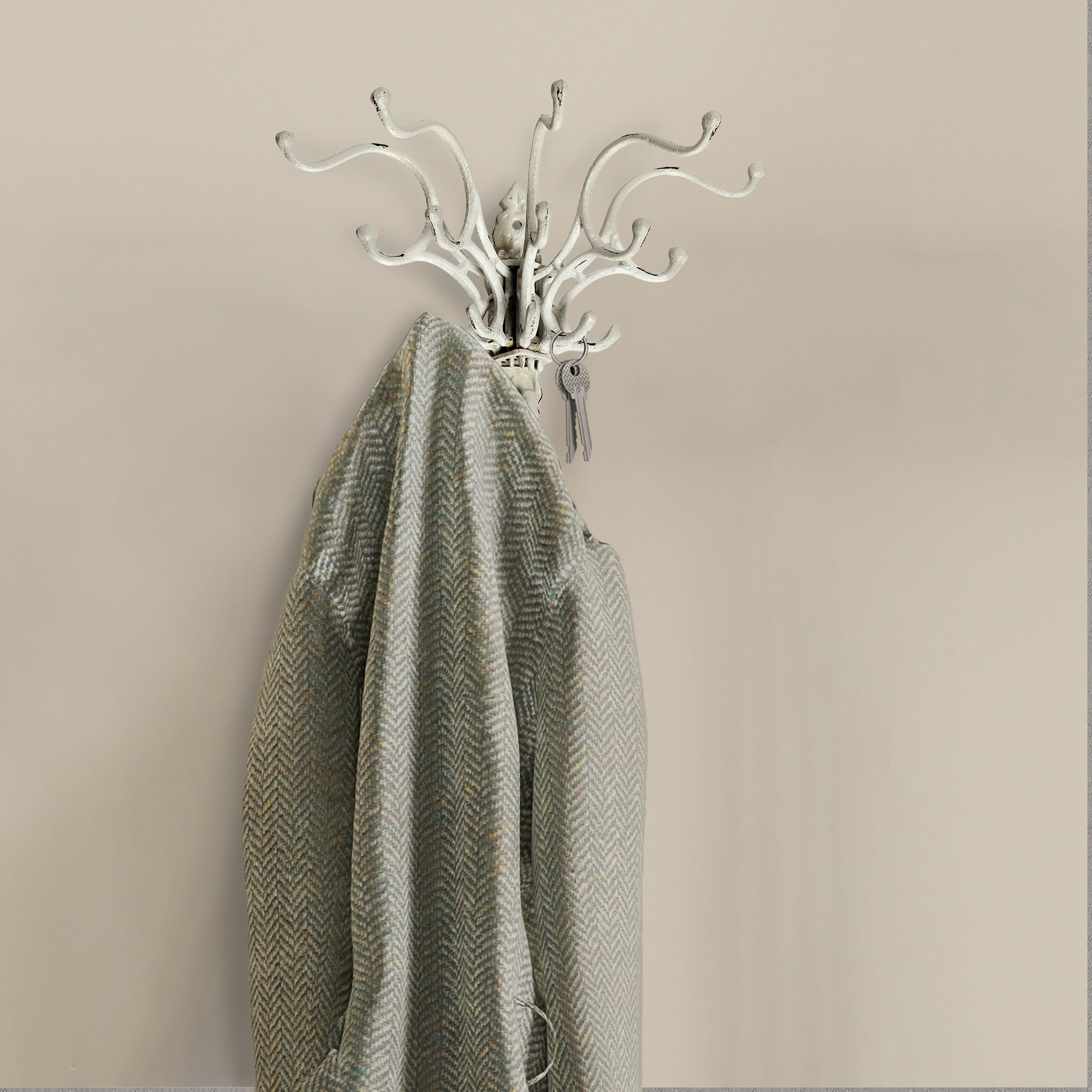 Creative Co-op Dekorativer Wandhaken aus Metall im Used-Look, Weiss