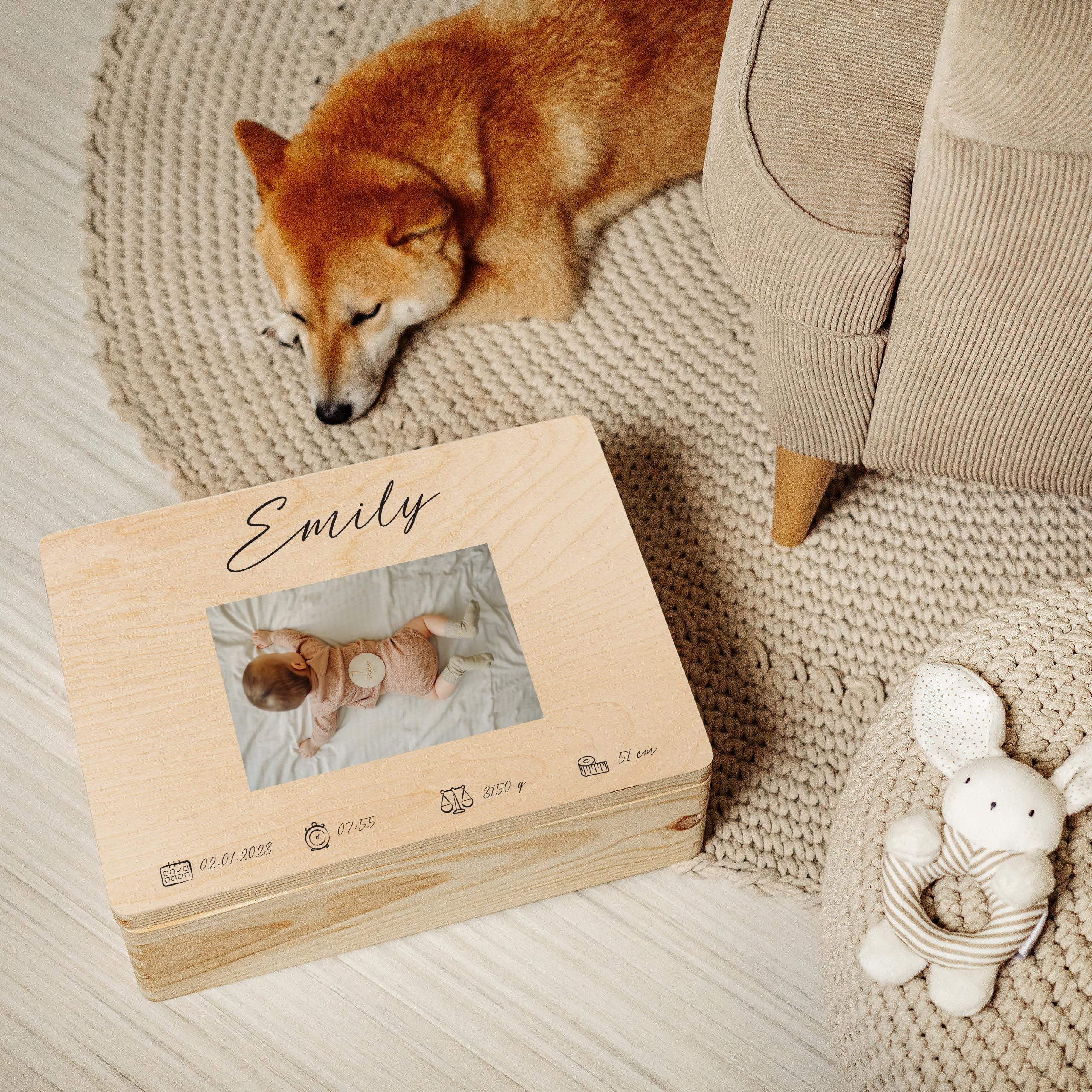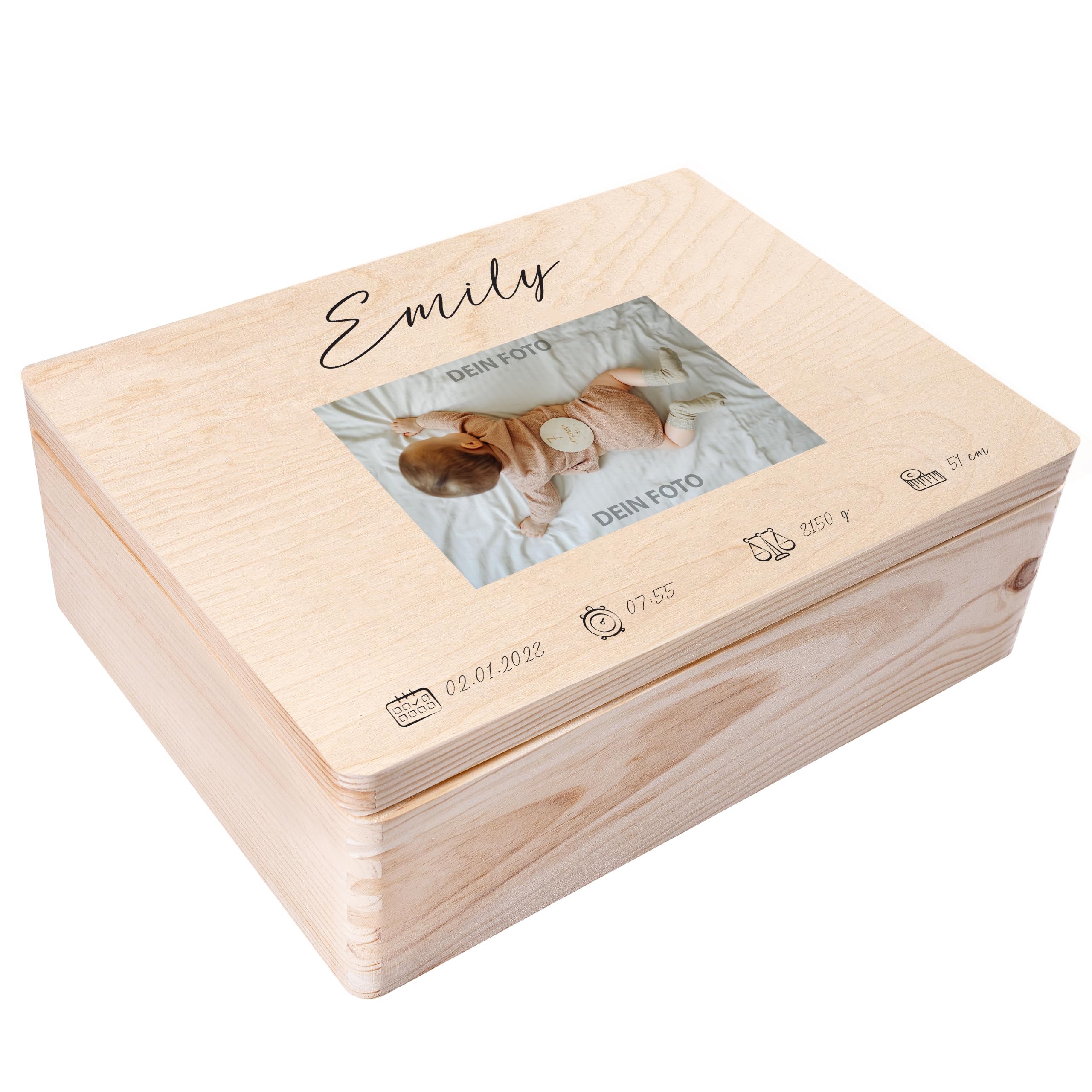 Creative Deco Foto Erinnerungsbox Baby Holzkiste Fotogeschenke Personalisierte | für Geburt & Taufe | dein Eigenes Bild Individuelle Geschenk für Mädchen und Jungen | Erinnerungskiste
