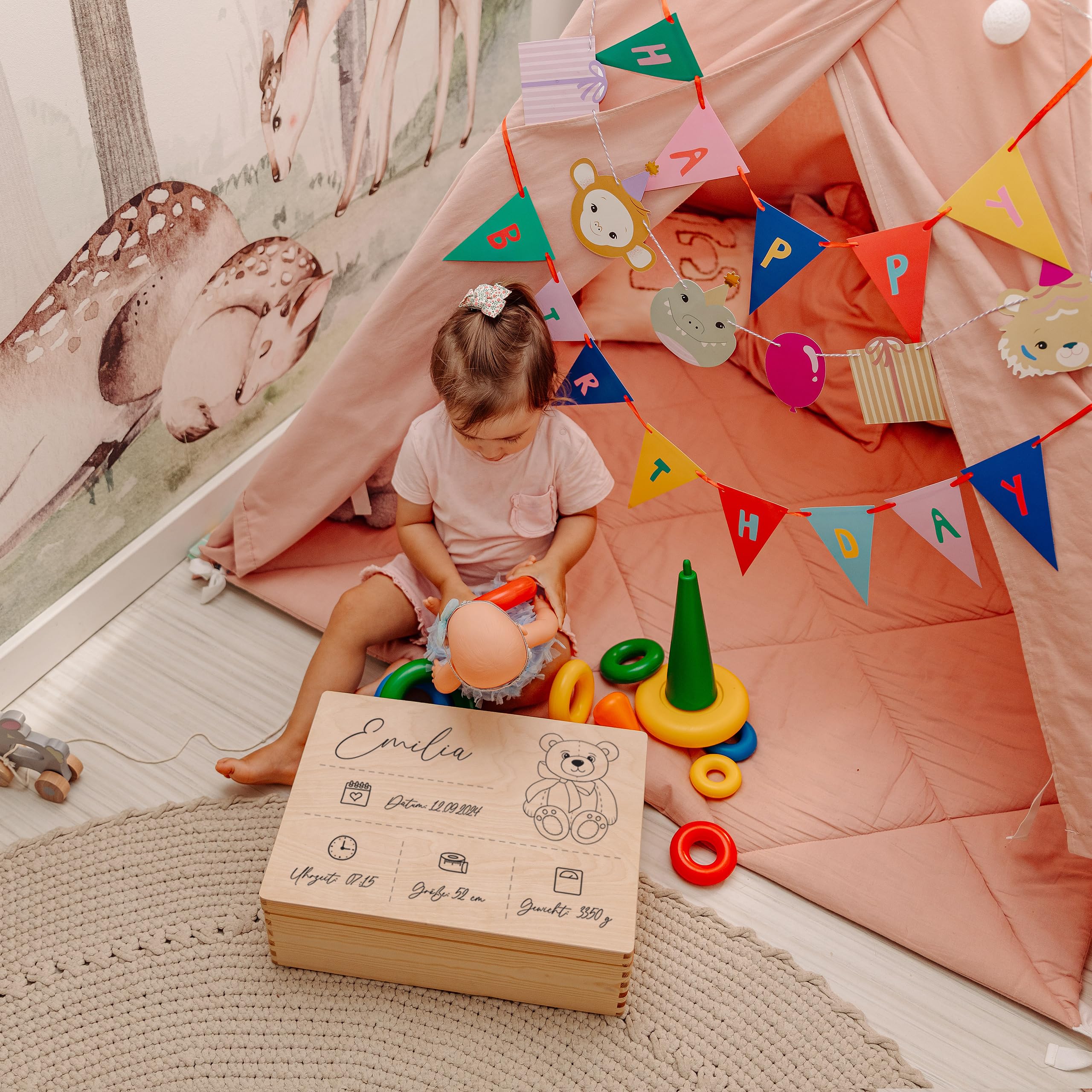 - BABY-SCHATZKISTE – Für Ihr Neugeborenes als Erinnerungs-/Geschenkbox oder Zeitkapsel passend für Kindheitserinnerungen – z.B. Kuscheldecke, erste Schuhe, Lieblingsschnuller, erstes Foto, Wertsachen, Spielzeug, Geschenke und Karten.