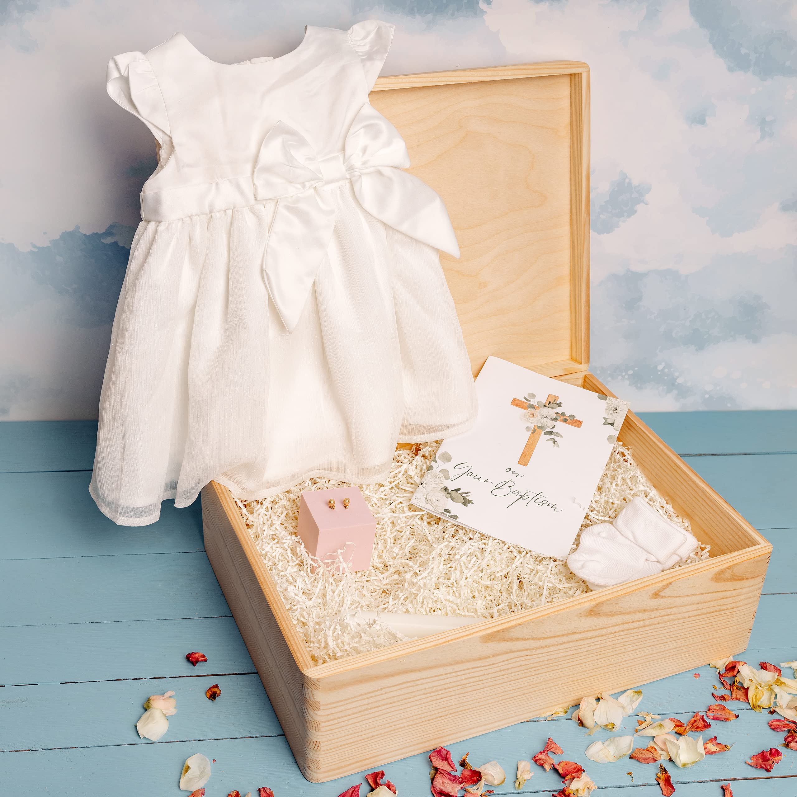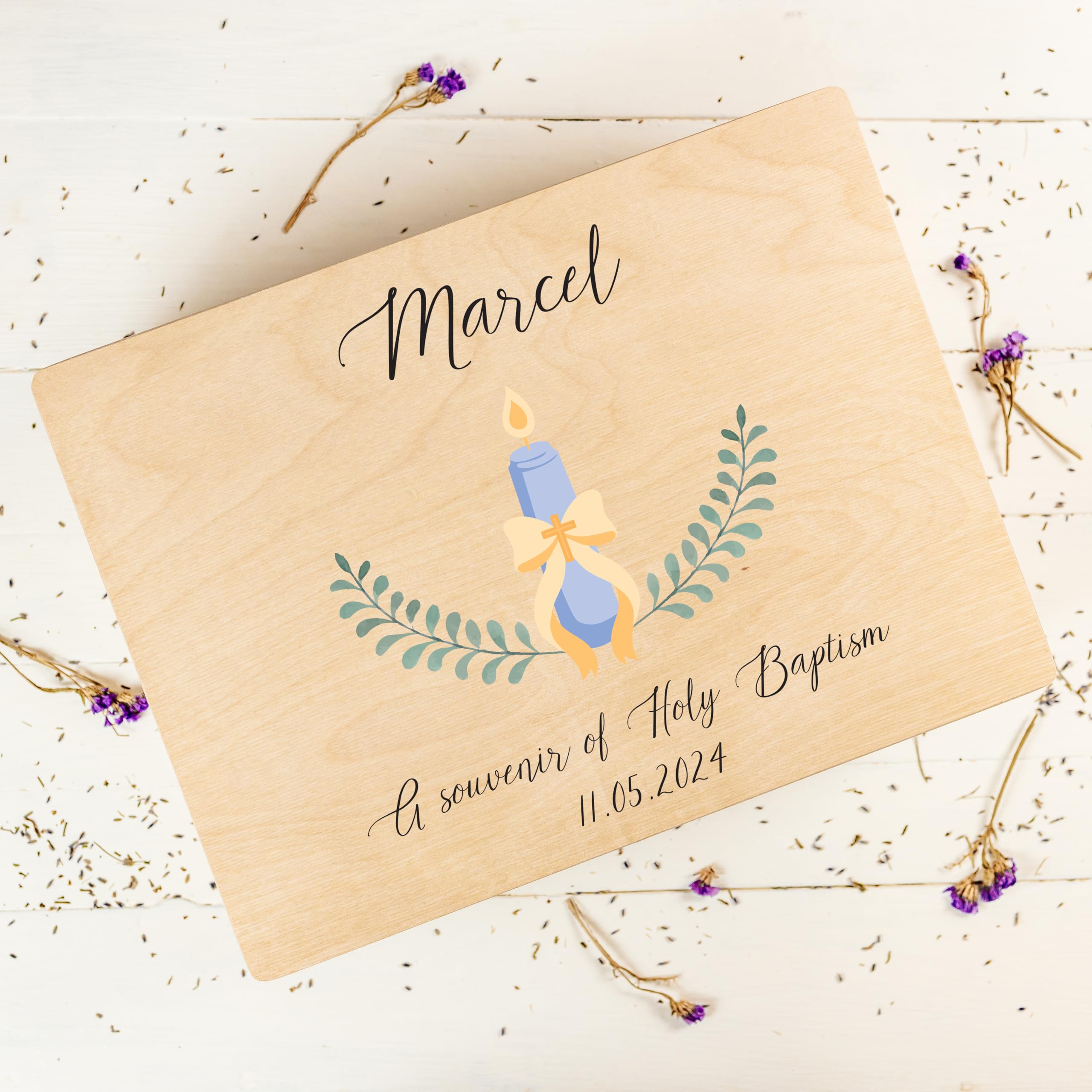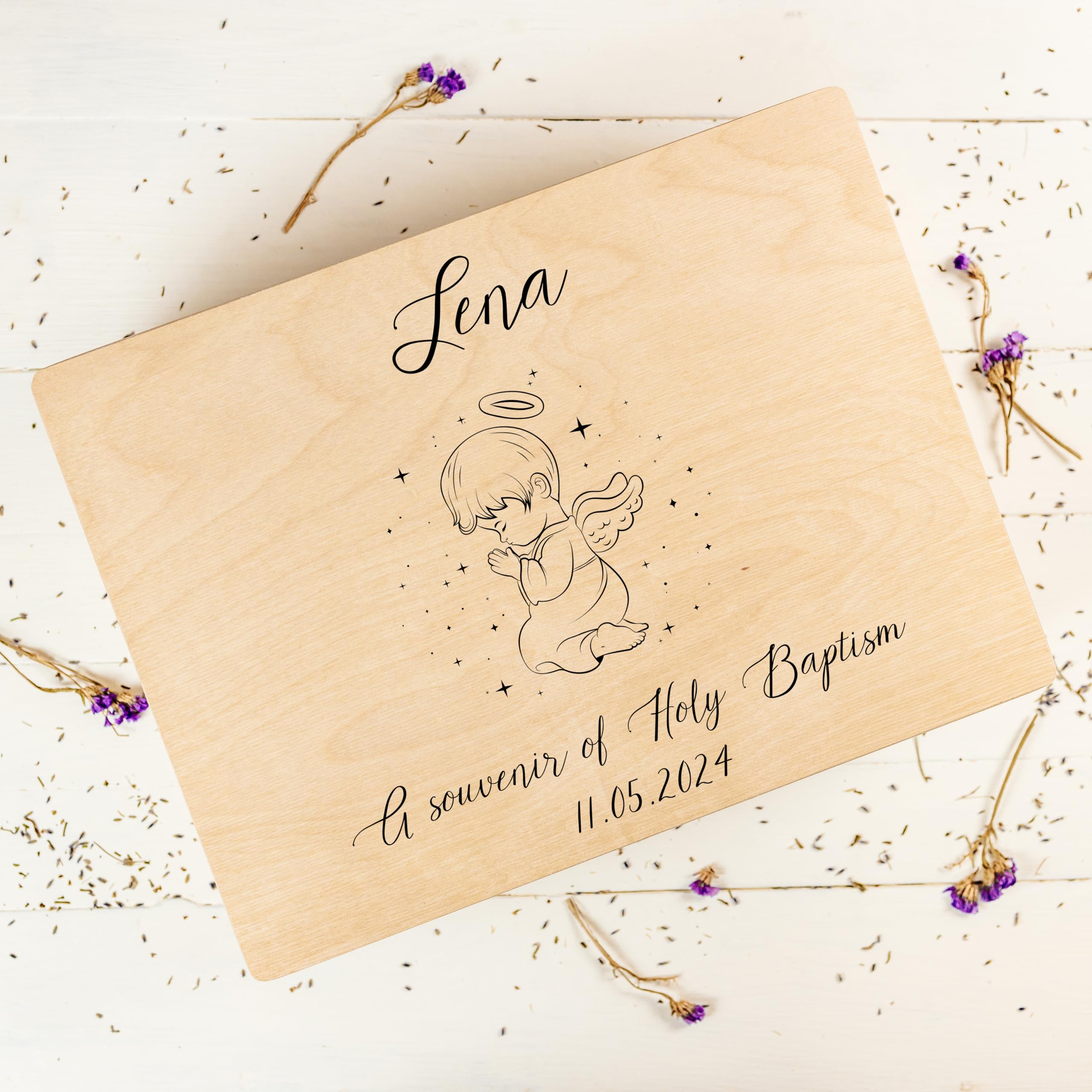 Creative Deco Personalisiert zur Taufe Geschenk für Mädchen und Junge | Mehrere Taufe Motive | Holzkiste Erinnerungsbox Deko | Individuelles Geschenk Spielzeugkiste Holzbox mit Deckel | Spardose
