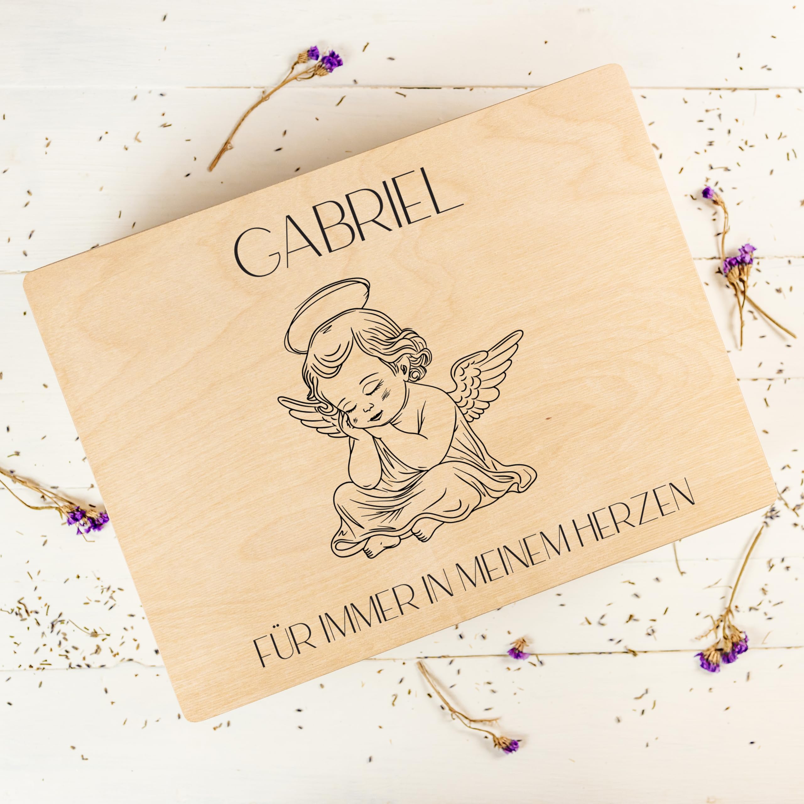 Creative Deco Trauerkiste Erinnerungsbox Sternenkind | 40 x 30 x 14 cm | Trauer Personalisiert Holzkiste für Sternenkinder Andenken | wie Trauerkarte, Beileidskarte, Kondolenzkarte