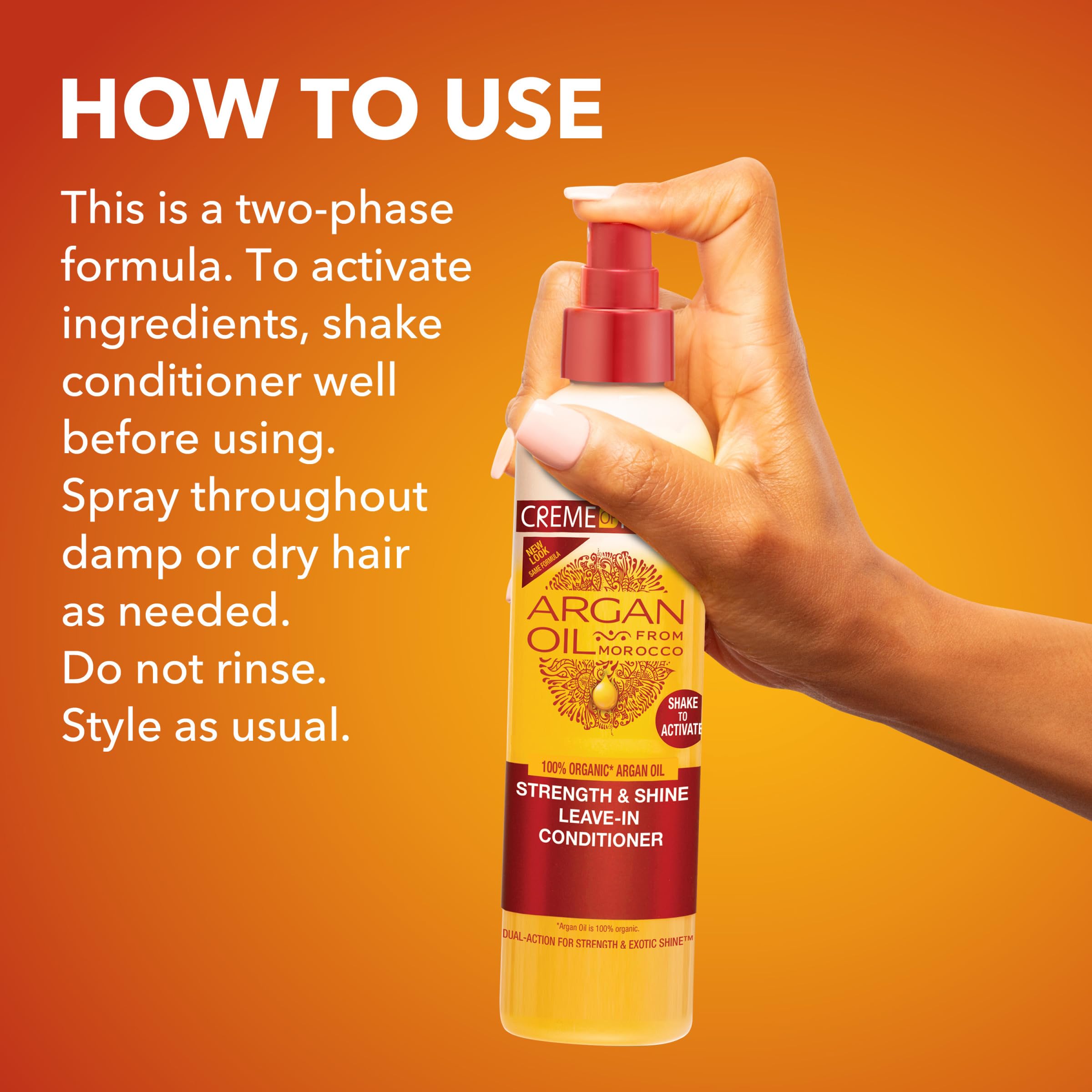 DUAL-ACTION FOR STRENGTH & EXOTIC SHINE Strength & Shine Leave-In Conditioner ist eine einzigartige Zwei-Phasen-Formel, die den flüssigen Glanz aus dem Arganöl und einen stärkenden Proteinkomplex kombiniert, der das Haar stärkt, vor Schäden und beim Hitzestyling schützt und ihm Feuchtigkeit und den Exotic Shine verleiht.