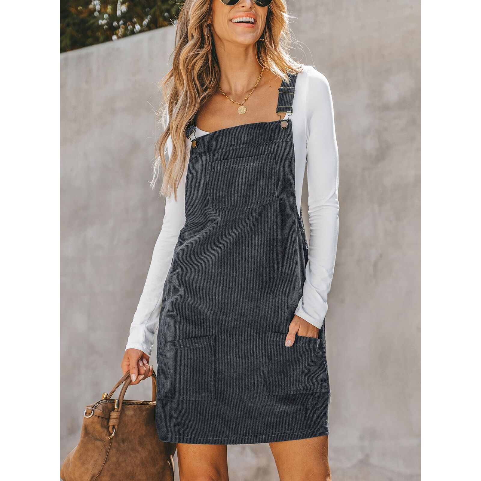 CUPSHE Damen Latzrock Quadratischer Ausschnitt Hosenträger Taschen Cord Latzkleid Overallkleid Freizeitkleider Corduroy Mini Dress