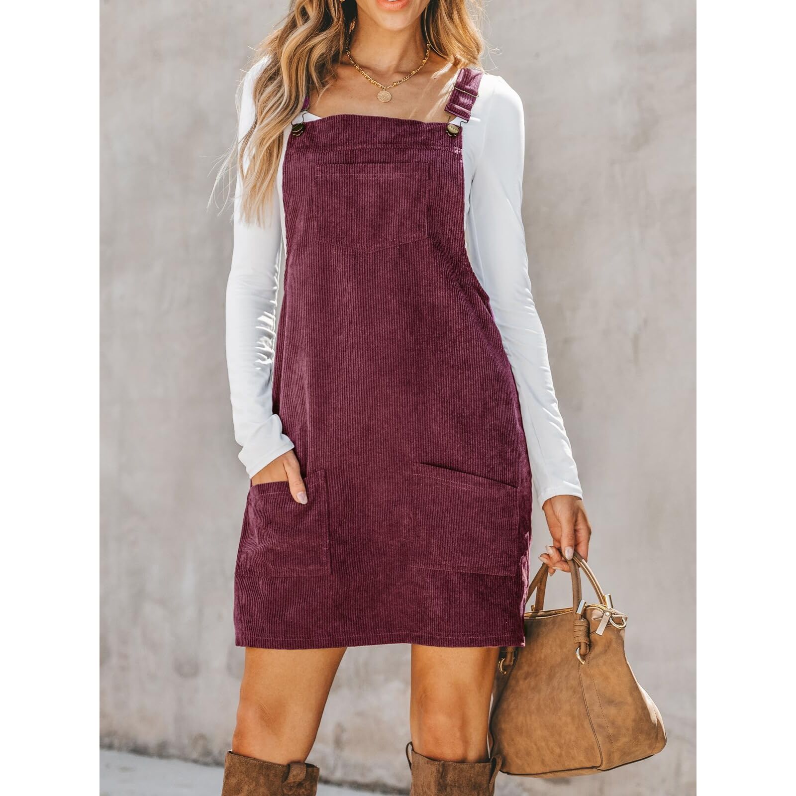 CUPSHE Damen Latzrock Quadratischer Ausschnitt Hosenträger Taschen Cord Latzkleid Overallkleid Freizeitkleider Corduroy Mini Dress
