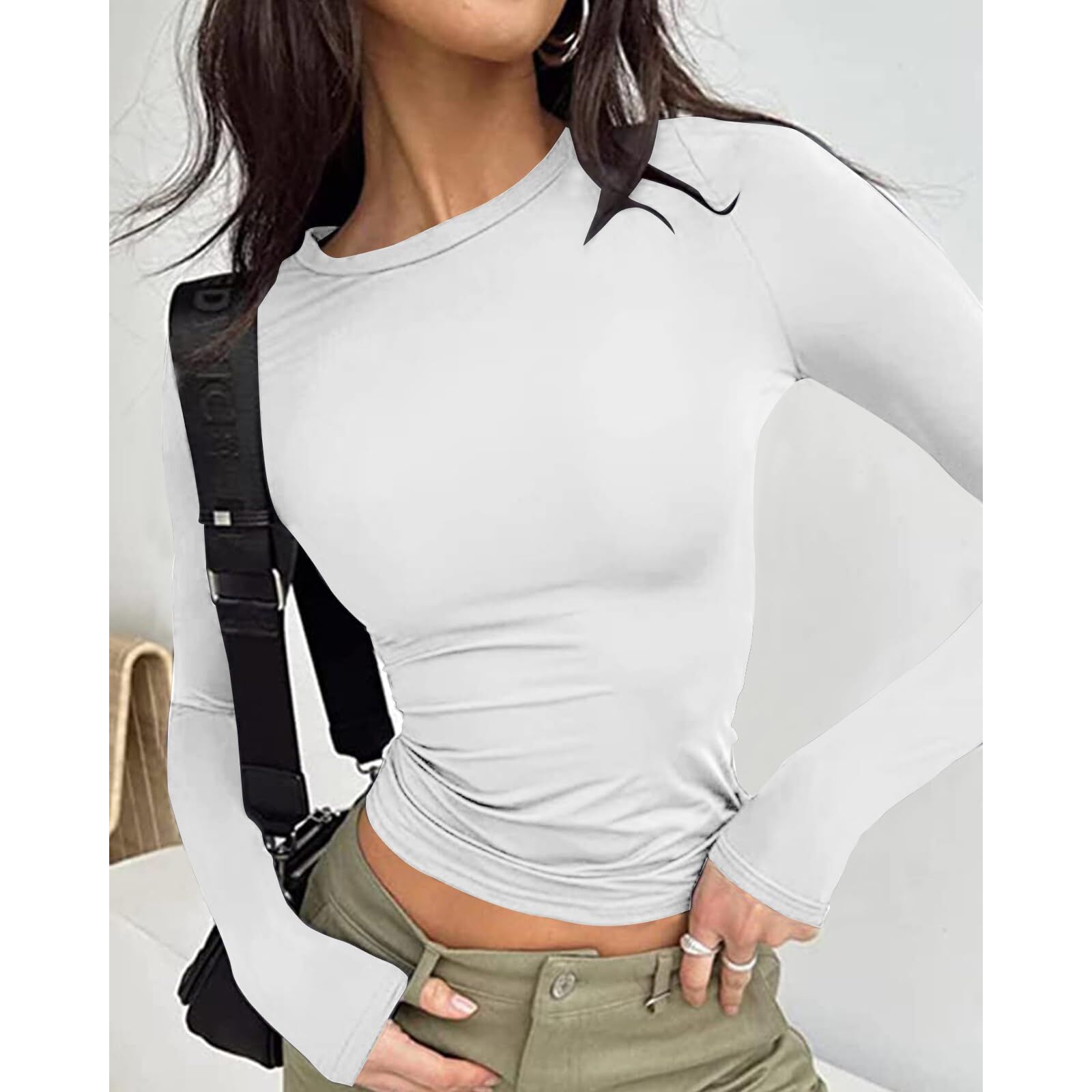 Cuptacc Langarmshirt Damen Eng Rundhals Basic Tshirt Langarm Lightweight Oberteile Damen Einfarbig Longsleeve Top
