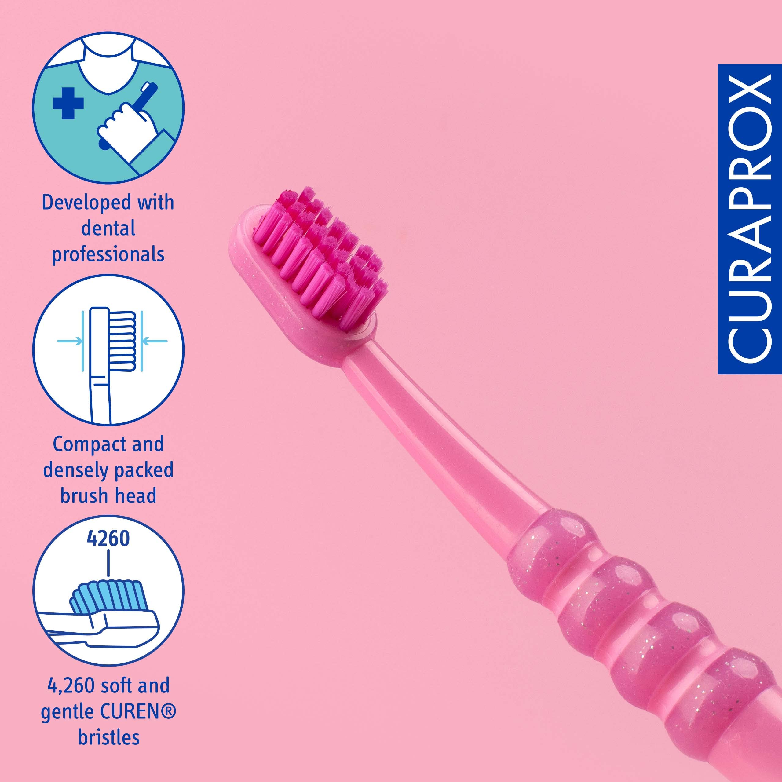 Curaprox Babyzahnbürste - Für Babys und Kleinkinder/Ultraweiche Borsten für sanftes, freudiges Bürsten/Pink-Pink | Einzelpackung/Hergestellt in der Schweiz