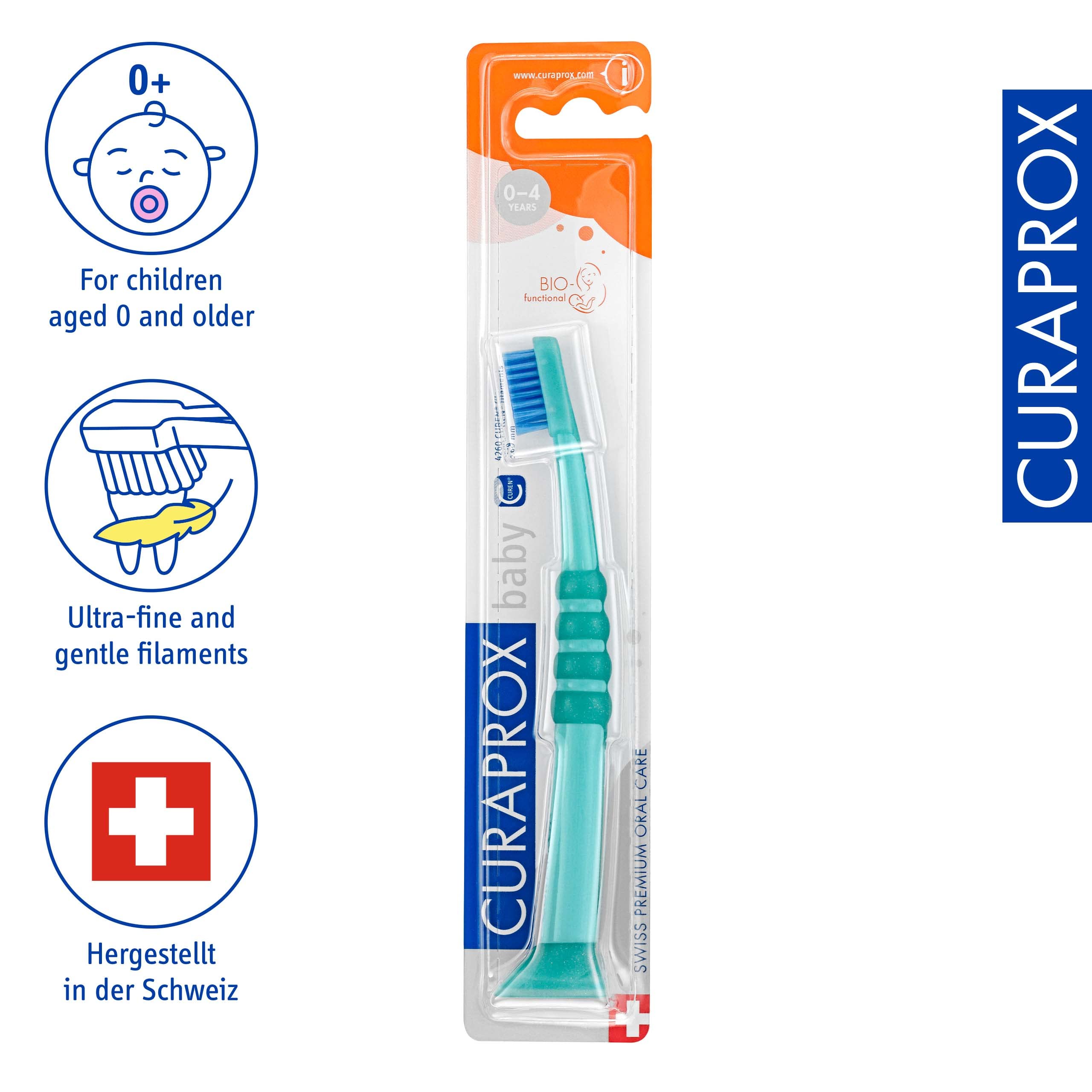 Curaprox Babyzahnbürste - Für Kleinkinder und Kleinkinder/Ultraweiche Curen®-Borsten für sanfte Reinigung/Grün-Grün | Einzelpackung/Hergestellt in der Schweiz