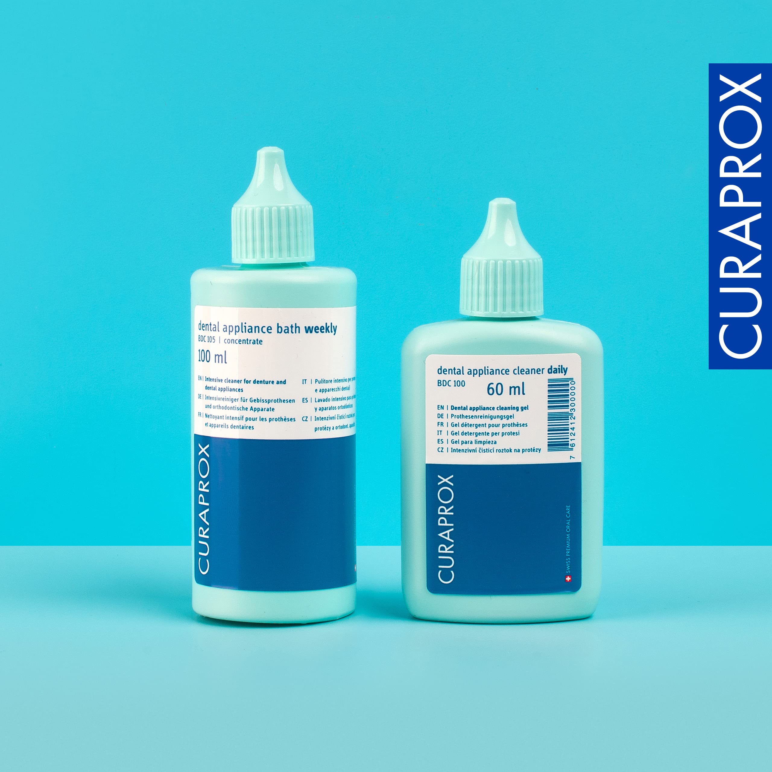 Curaprox BDC 105 Wöchentliche Reinigung 100ml Konzentrat - Für Zahnersatz & Retainer/Sanfte Formel mit Zitronensäure & Eukalyptusöl/Designed in der Schweiz