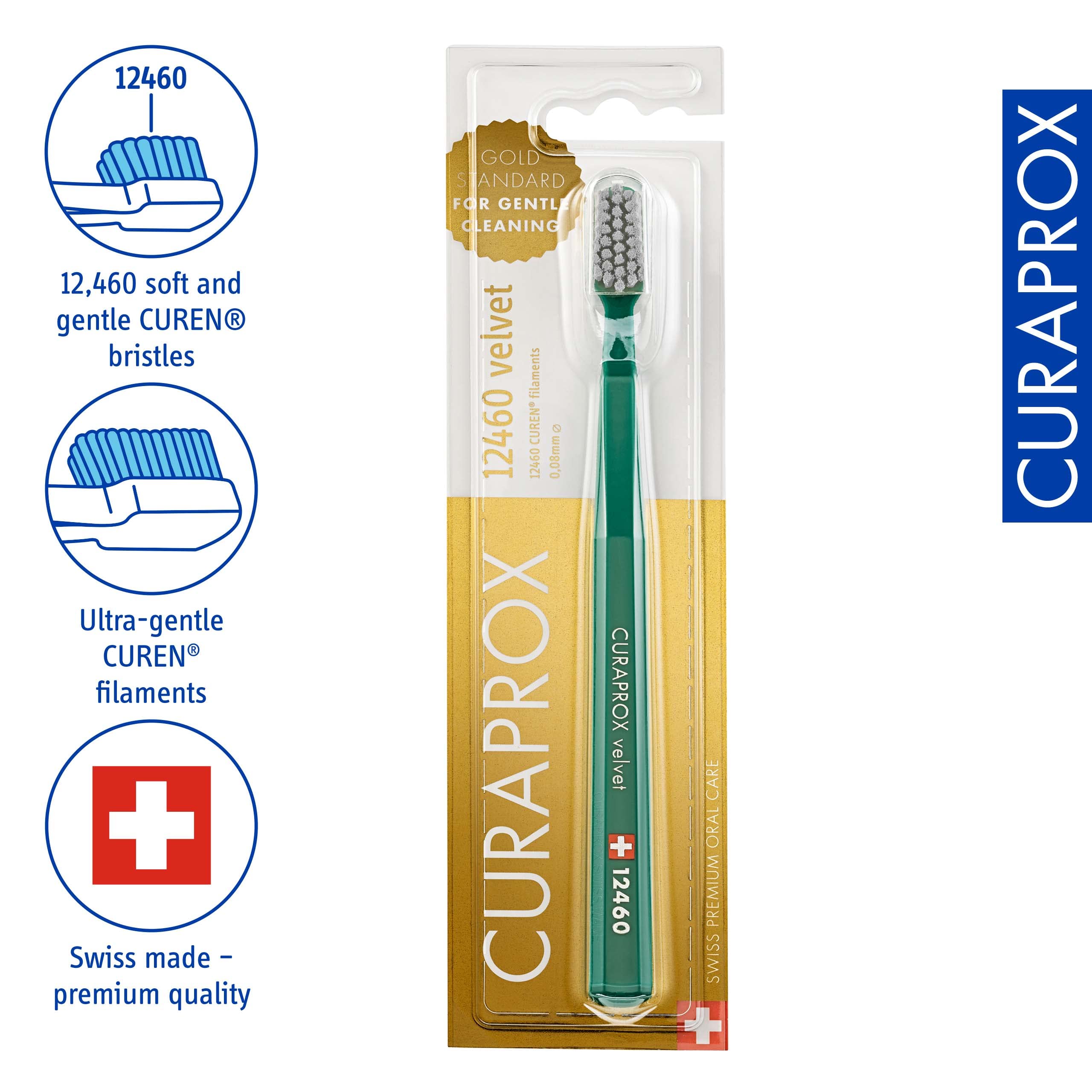 Curaprox CS 12460 Samtweiche Zahnbürste - Empfindliche Zahnfleischpflege/Ultraschonende Reinigung mit 12.460 Filamenten/Einzelpackung, zufällige Farbe/Hergestellt in der Schweiz
