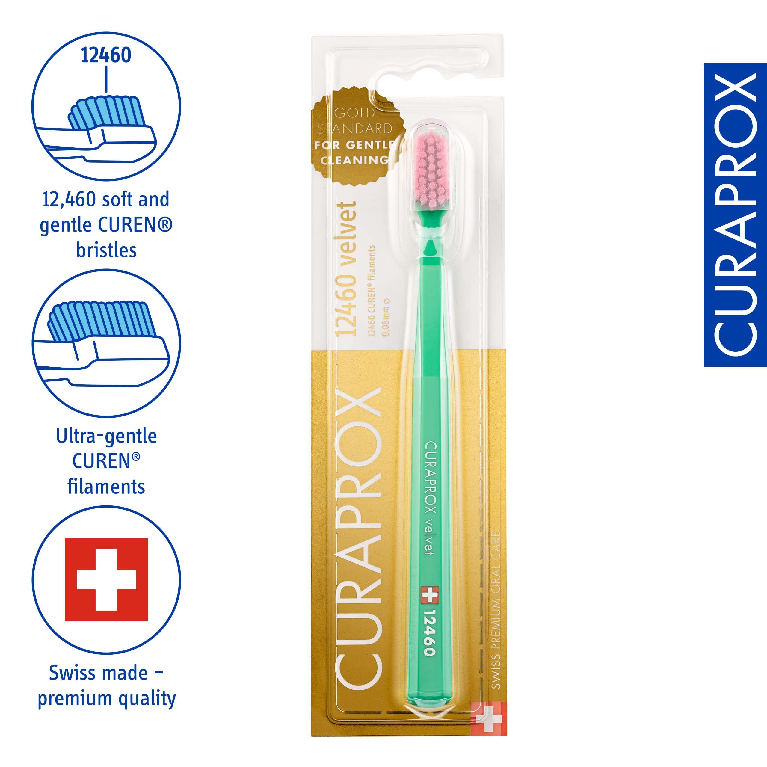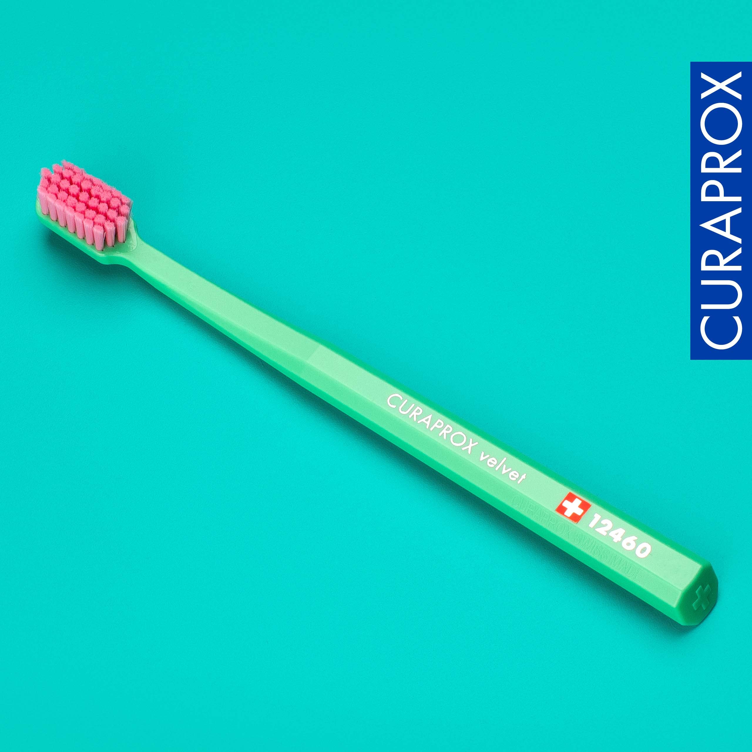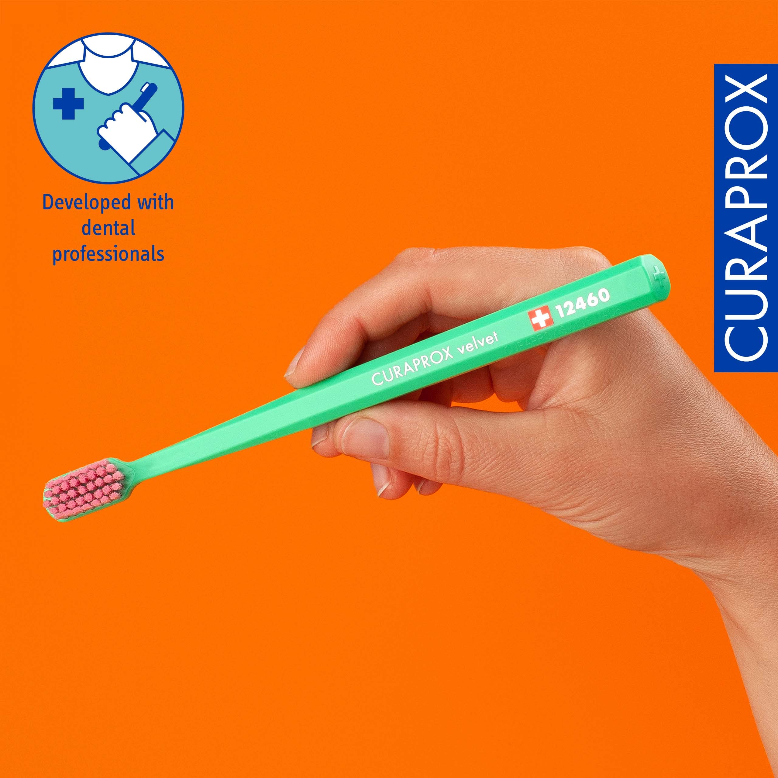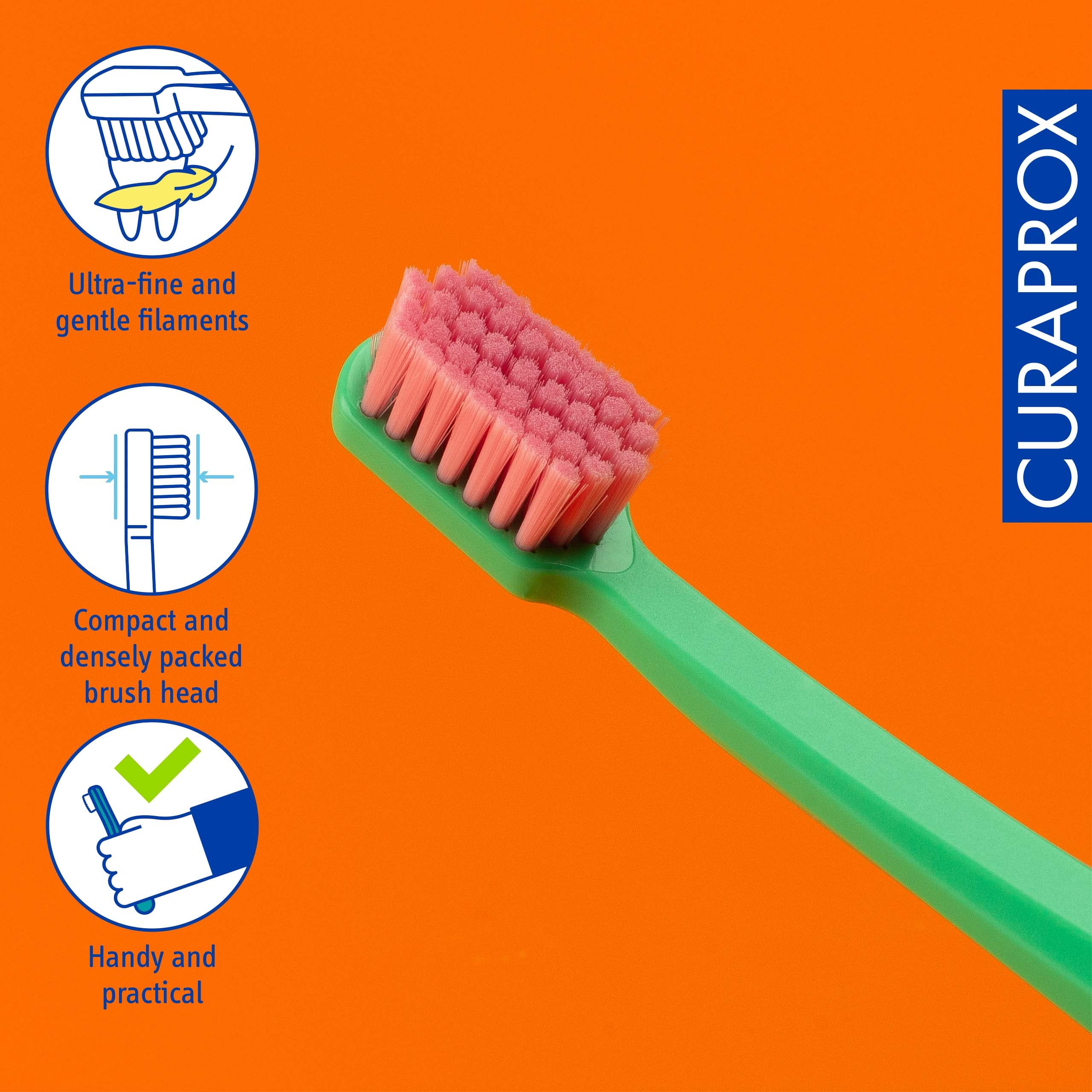 Curaprox CS 12460 Samtweiche Zahnbürste - Empfindliche Zahnfleischpflege/Ultraschonende Reinigung mit 12.460 Filamenten/Einzelpackung, Hellgrün-Pink/Hergestellt in der Schweiz