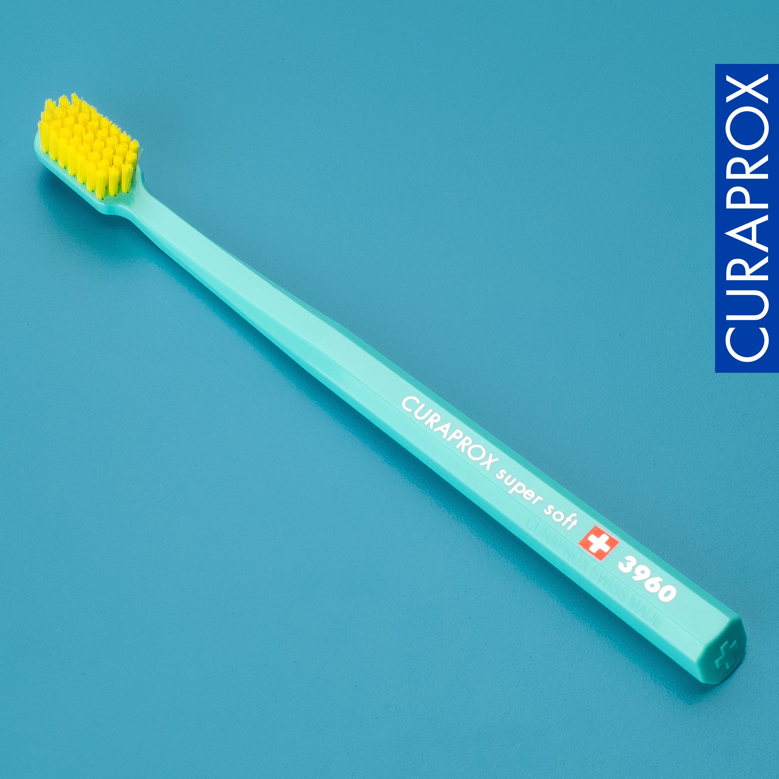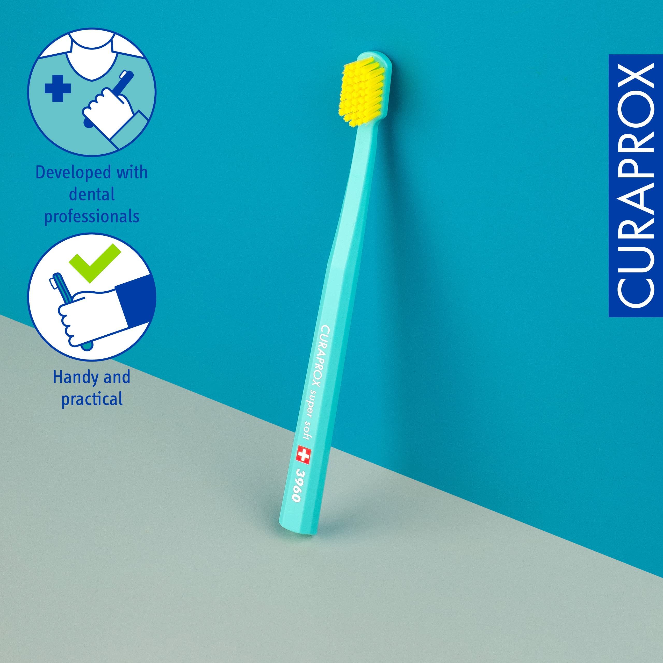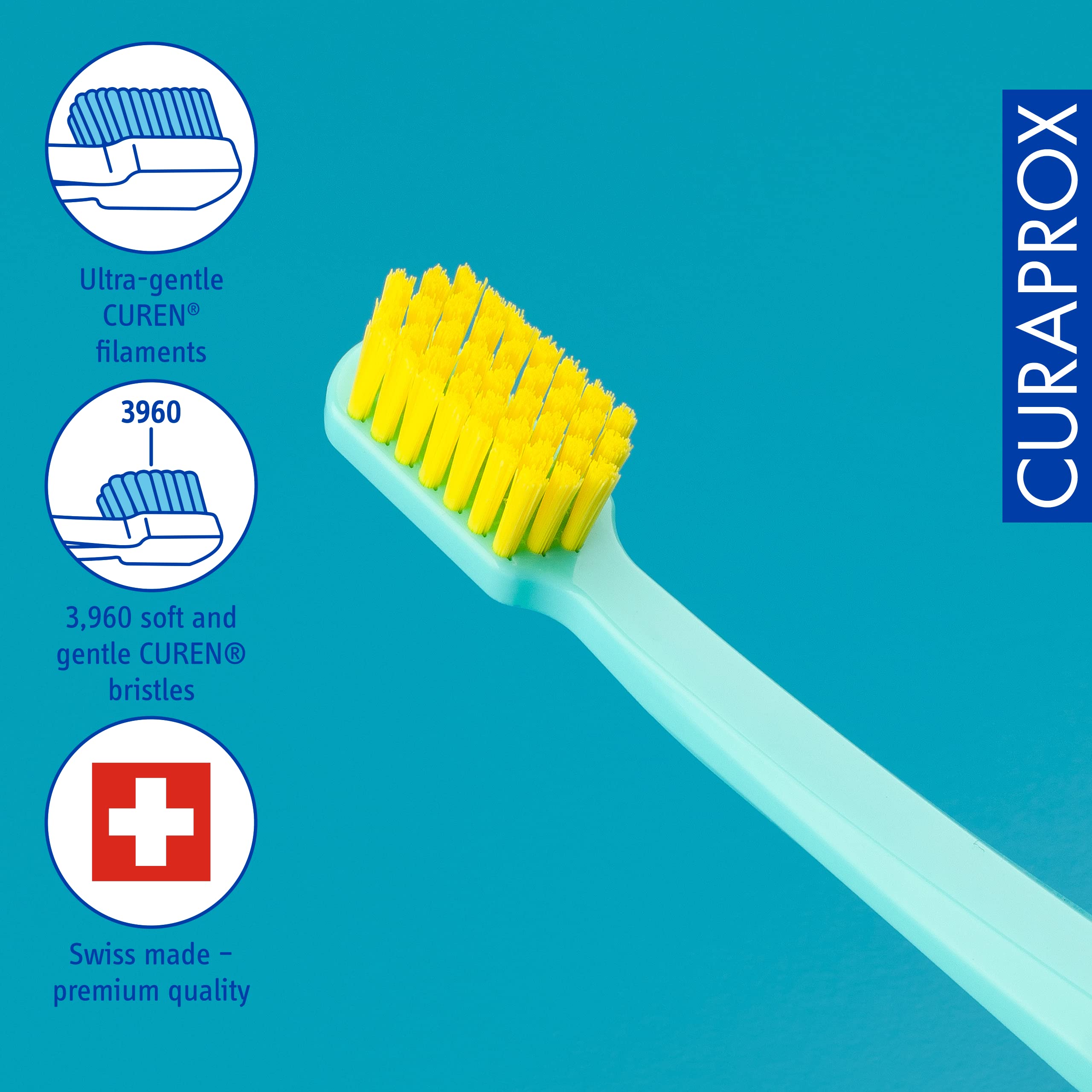 Curaprox CS 3960 Superweiche Zahnbürste - Zahn- und Zahnfleischpflege für Erwachsene/Superweiche Borsten für sanfte und Reinigung/Türkis-Gelb, Einzelpackung/Hergestellt in der Schweiz