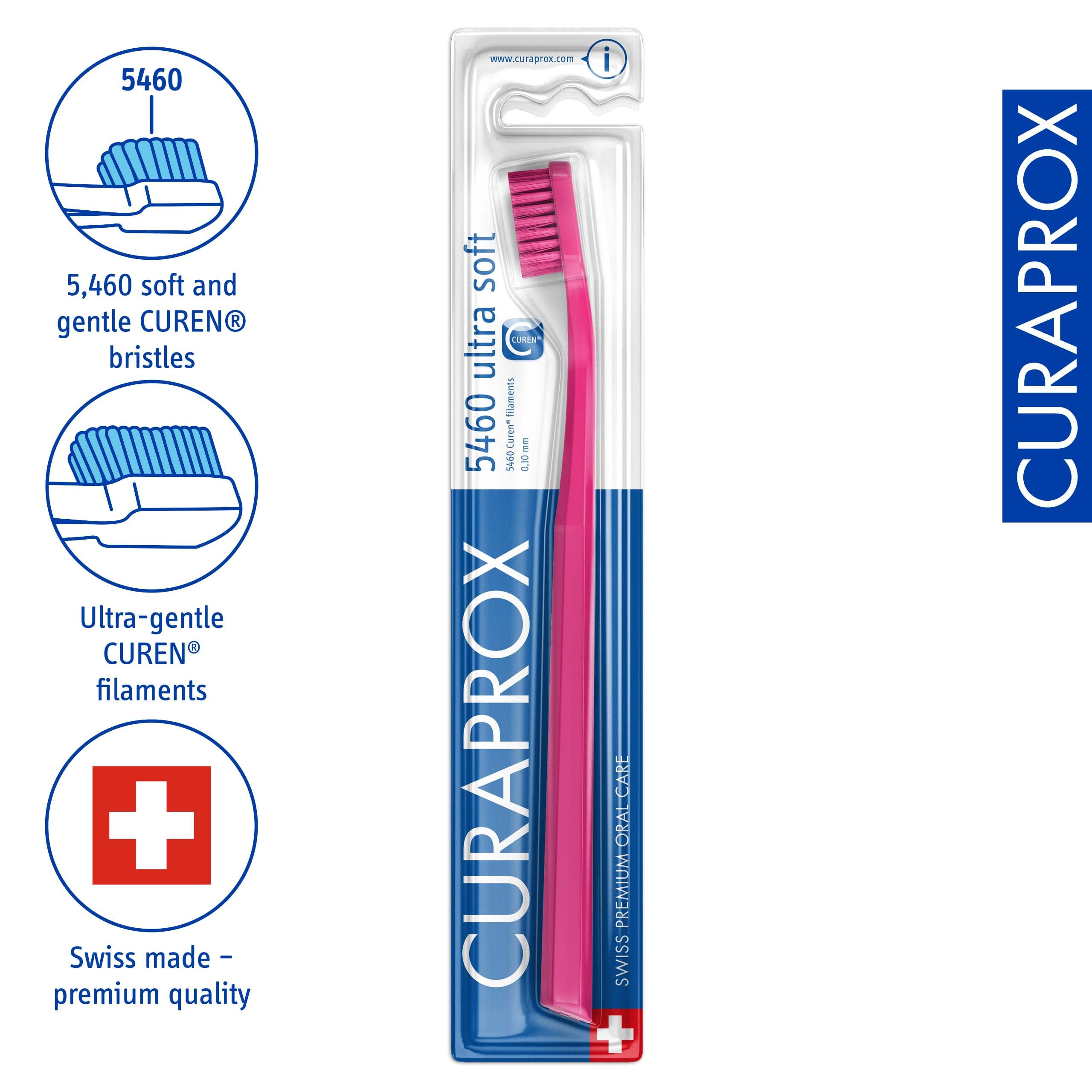 Curaprox CS 5460 Ultraweiche Zahnbürste - Zahn- und Zahnfleischpflege für Erwachsene/Superweiche Curen®-Borsten für sanfte Reinigung/Magenta, Einzelpackung/Hergestellt in der Schweiz