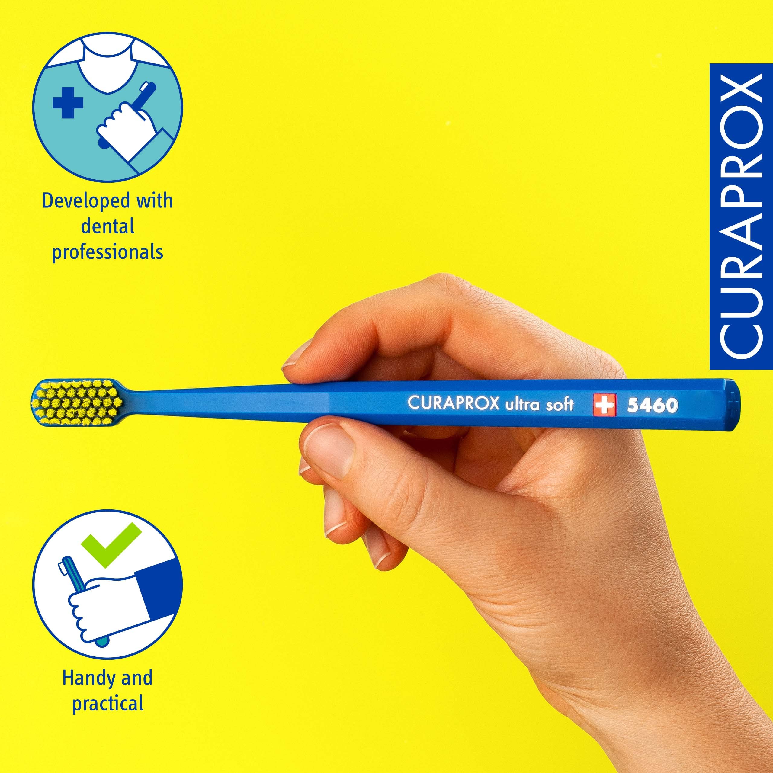 Curaprox CS 5460 Ultraweiche Zahnbürste - Zahn- und Zahnfleischpflege für Erwachsene/Superweiche Curen®-Borsten für sanfte Reinigung/Blau-Gelb, Einzelpackung/Hergestellt in der Schweiz