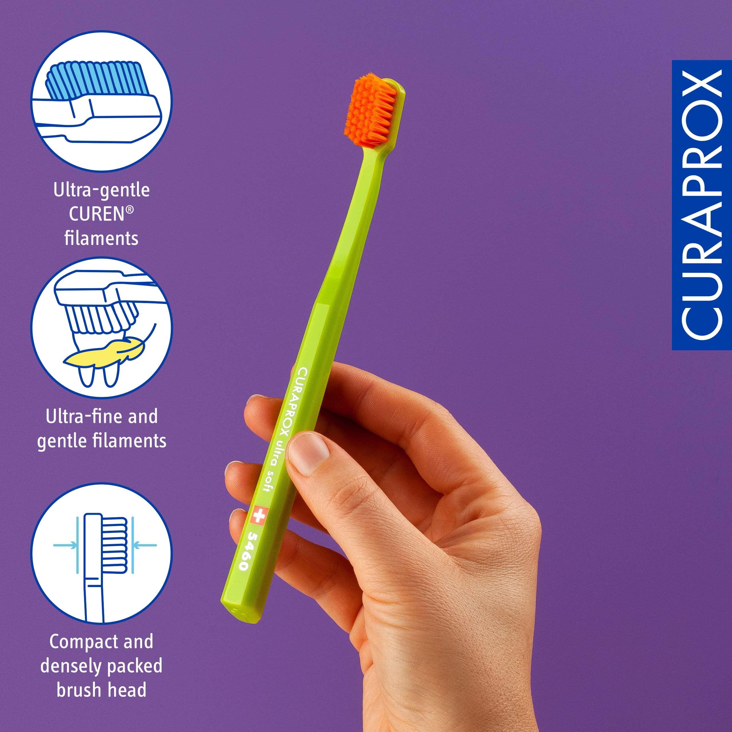 Curaprox CS 5460 Ultraweiche Zahnbürste - Zahn- und Zahnfleischpflege für Erwachsene / Superweiche Curen®-Borsten für sanfte Reinigung / Grün | Blau | Lila | Hergestellt in der Schweiz