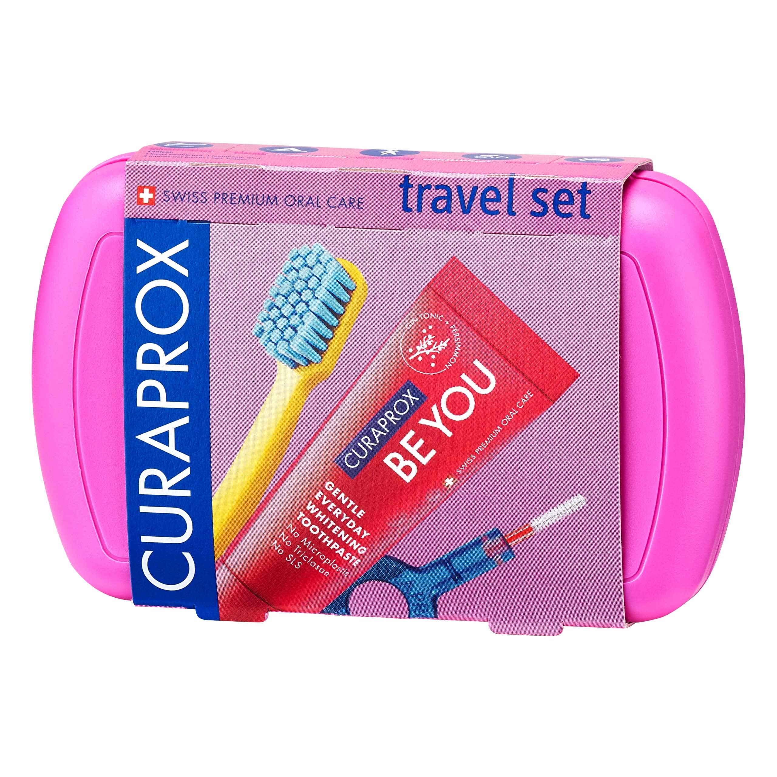 Curaprox Reiseset - CS 5460 Zahnbürste mit 'Be You' Zahnpasta | 2 CPS Prime Interdentalbürsten 07 und 09 / Zahnpflegeset 9,5 cm x 6 cm/Magenta/Hergestellt in der Schweiz