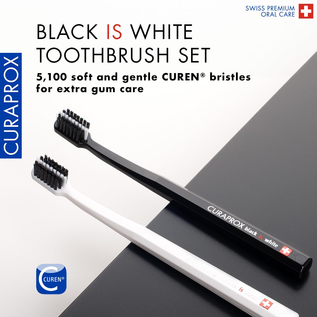 Curaprox Zahnbürsten-Duo - Für Erwachsene/Stylische ultraweiche Zahnbürsten in Schwarz und Weiss/Whitening-freundlich | Schwarz/Weiss | 2er Pack/Hergestellt in der Schweiz