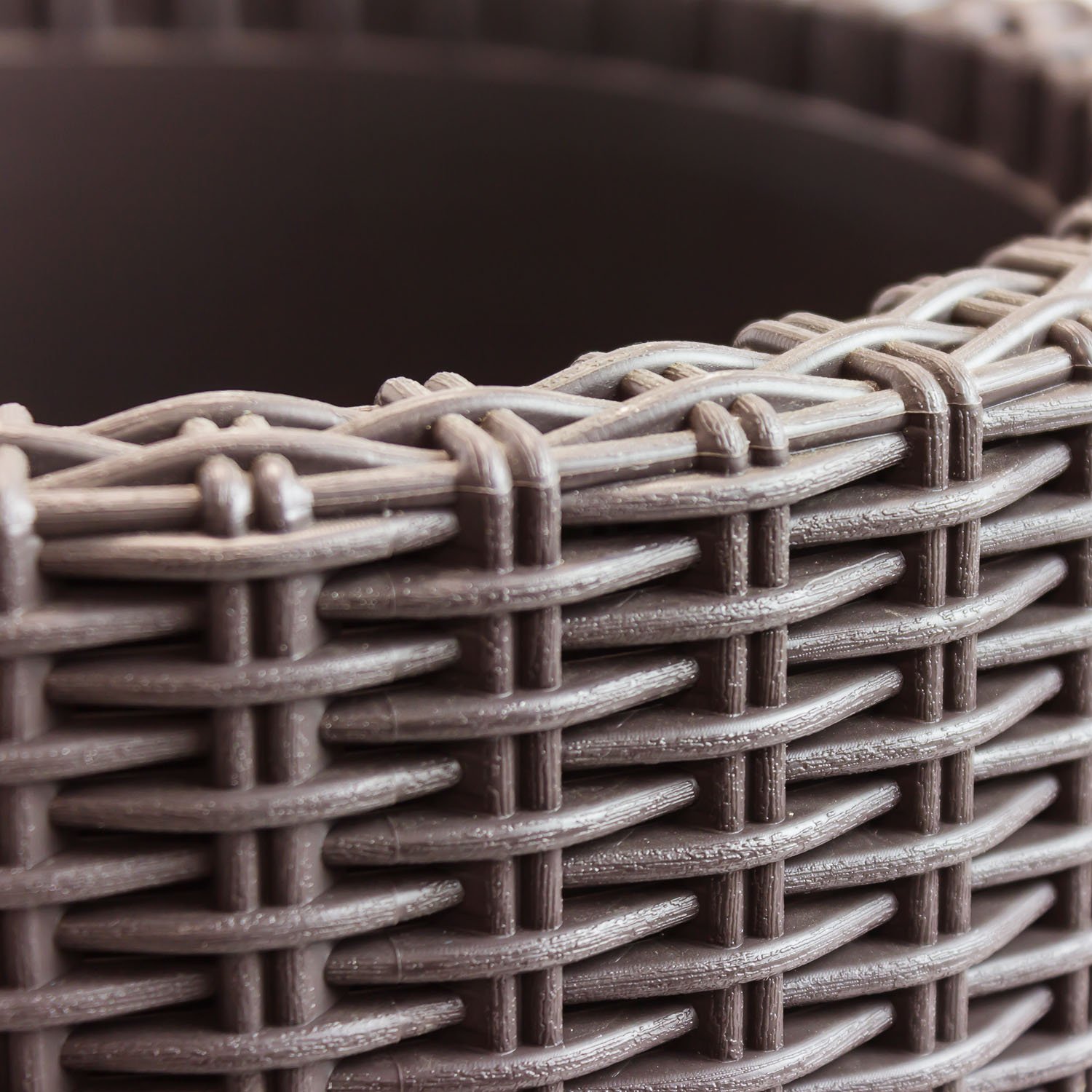 Schaffen Sie eine natürliche und dekorative Atmosphäre mit unseren Blumentöpfen für eine Vielzahl von Gemüse, Blumen und anderen Pflanzen. Dieser grosse Topf hat ein Fassungsvermögen von 145 Litern. Die Konstruktion aus gespritztem Polypropylen und das flache Rattan-Finish machen diesen Blumentopf für jedes Wetter gewappnet, egal ob Wind, Regen, Schnee, Sonne usw. Drainagelöcher regulieren die Bewässerung und schützen vor überschüssigem Wasser und Wurzelverfall. Unsere Outdoor-Töpfe sind mit einem scharfen Gegenstand leicht zu öffnen. Geniessen Sie eine natürliche Textur und einen eleganten und warmen Touch mit jedem unserer dekorativen Blumentöpfe, die alle zu jedem Ihrer Gartenmöbel passen. Erhältlich in Schokoladenbraun. Produktabmessungen: 44 x 44 x 44 cm (L x B x H).