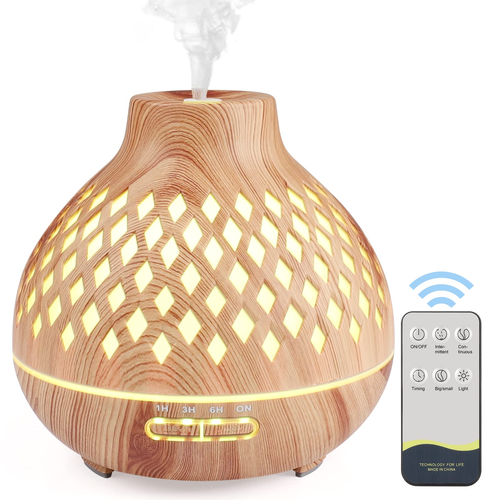 Czemo Aroma Diffuser 400ml Ultraschall Luftbefeuchter Duftöl Duftlampen Aromatherapie Diffusor mit Fernbedienung und 14 Farben LED für Yoga Büro Schlafzimmer