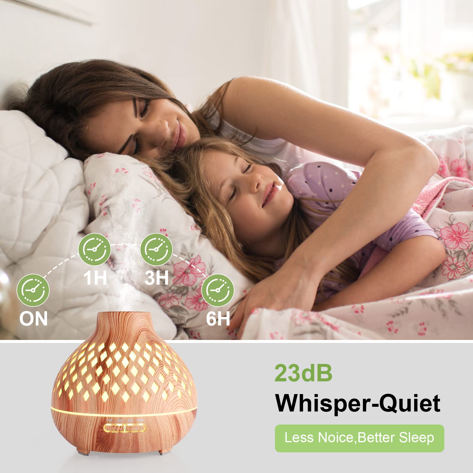• Grosser Wassertank und Fernbedienung: Grosse 400 ml Wasserkapazität, die jedes Mal bis zu 8 Stunden verwendet werden kann. Mit der Fernbedienung können Sie mit dieser Fernbedienung am Bett, weich und in jeder Ecke Ihres Zimmers tun, was Sie wollen.