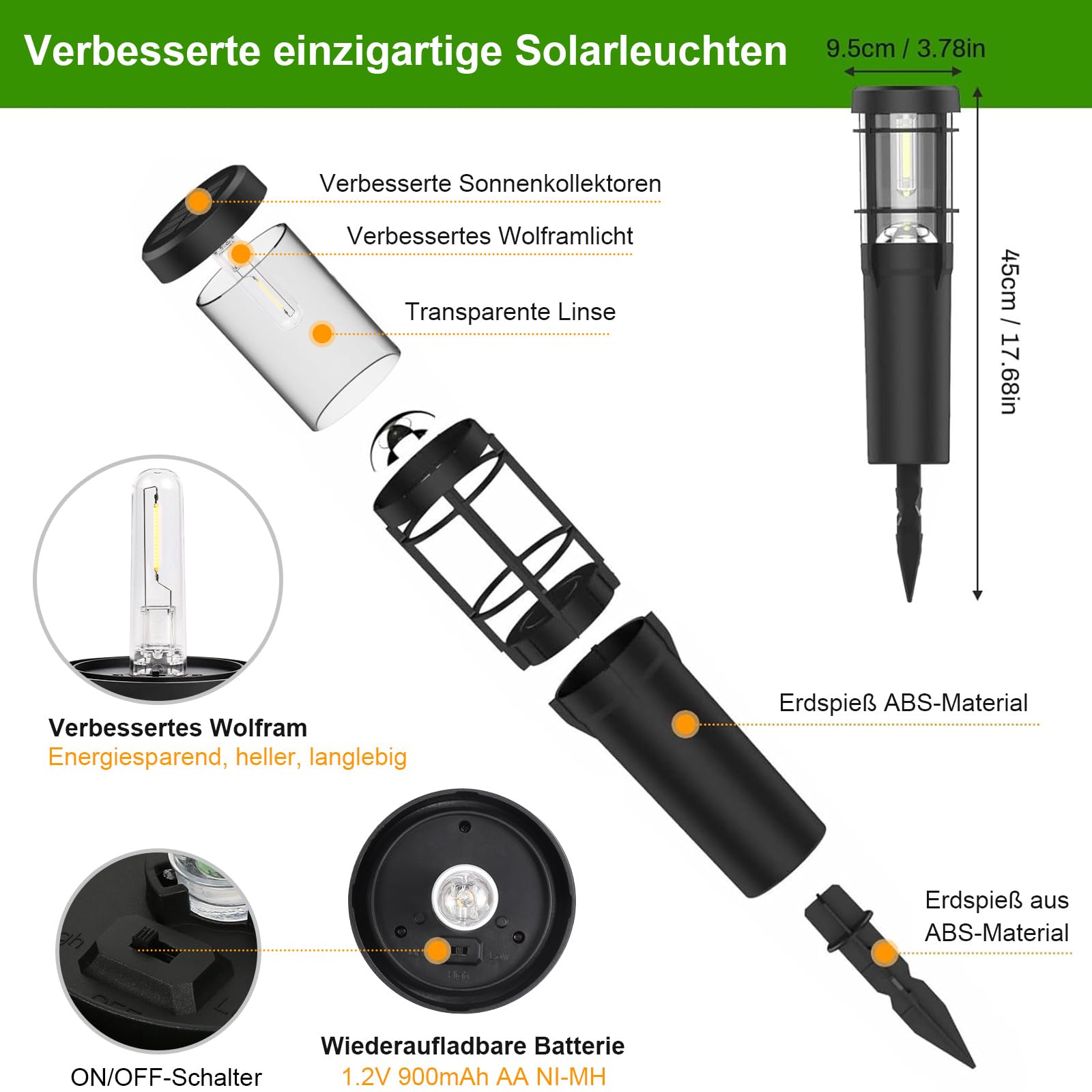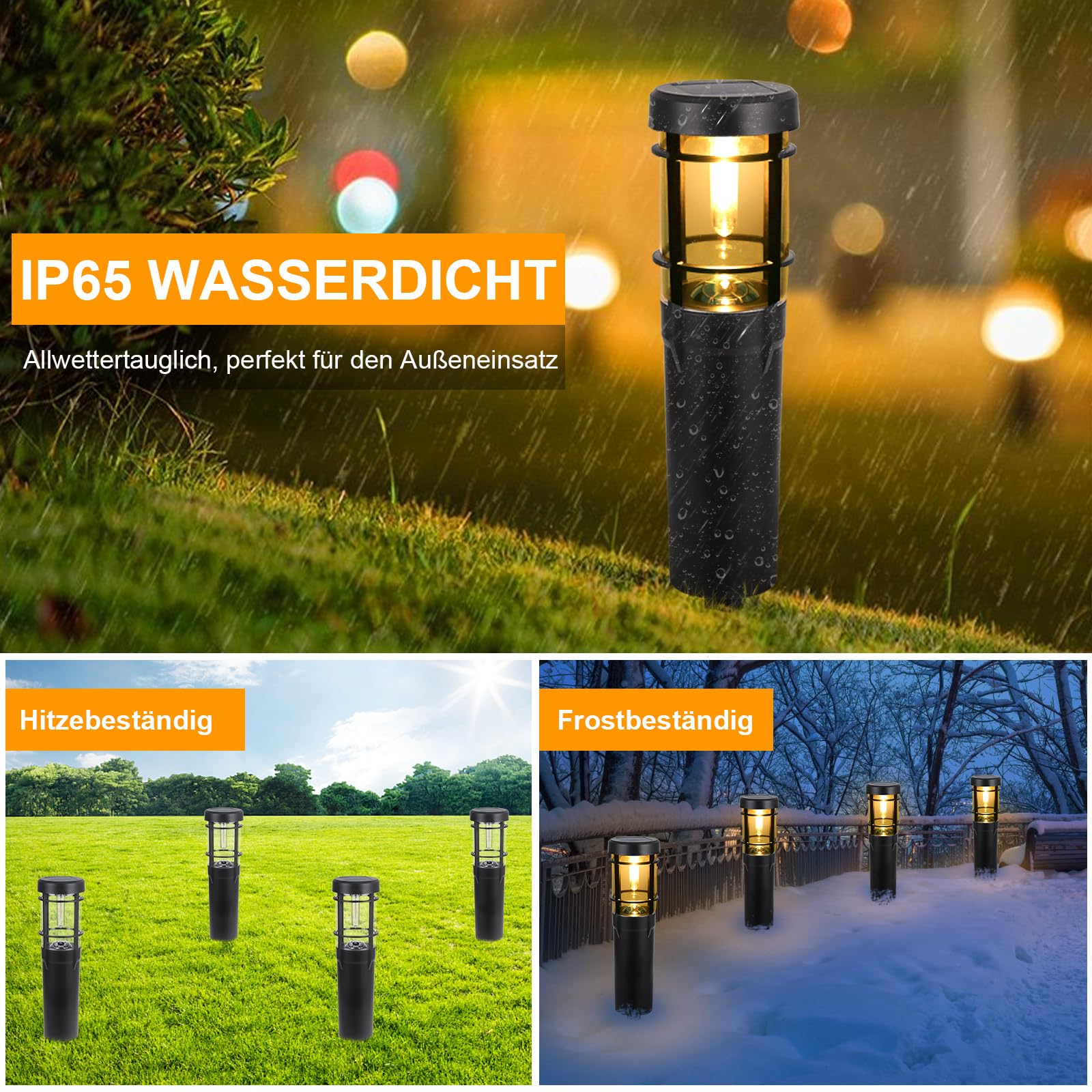 Czoele Solarlampen für Aussen Garten, 4 Stück Solarleuchten Garten 900mAh Warmweiss Solar Gartenbeleuchtung Wasserdichte mit Erdspiess IP65 Wasserdichte Auto Ein/Aus für Garten Terrasse Pfad Rasen (A)