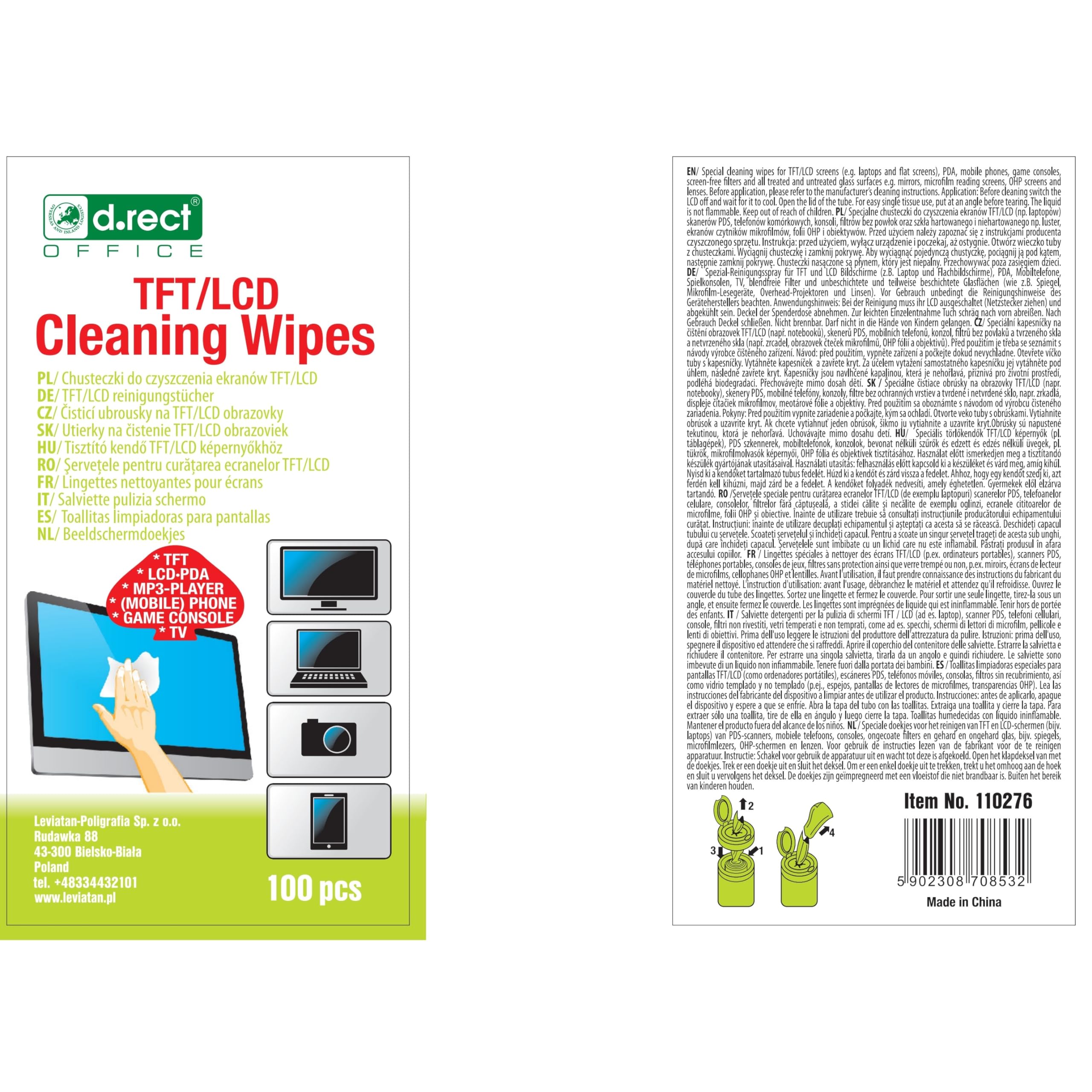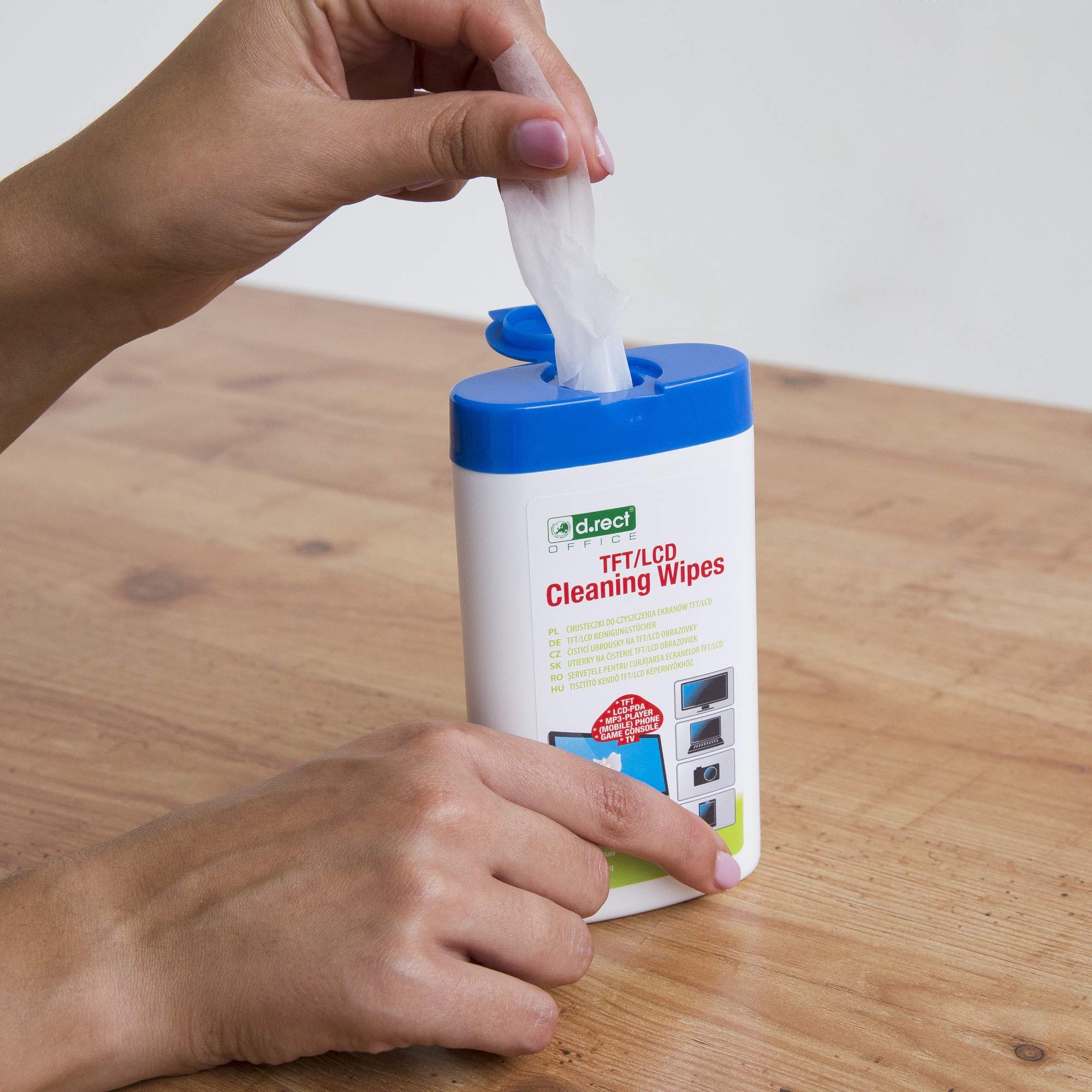 D.RECT Allzweck-Reinigungstücher 100 Stück x 4 Set - Feuchte Reinigungstücher in Spender - 400x Feuchte Allzwecktücher für TFT/LCD-Monitore, Notebook, Tablet