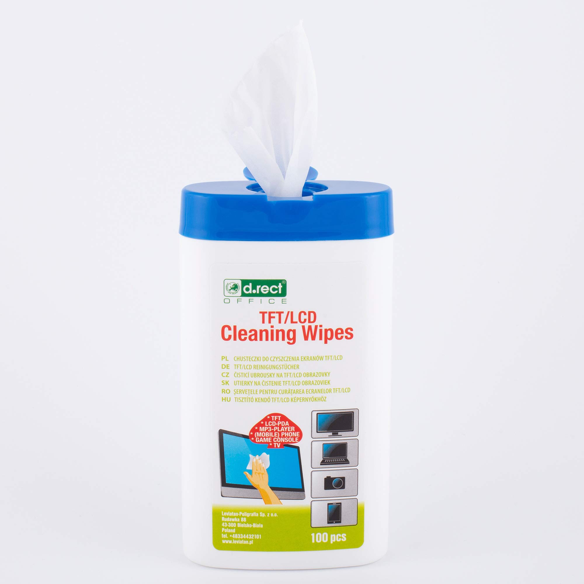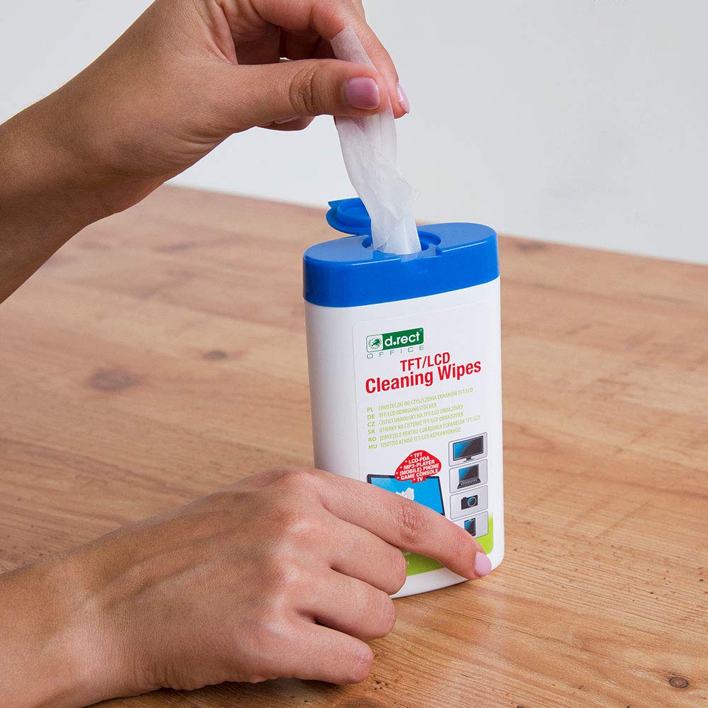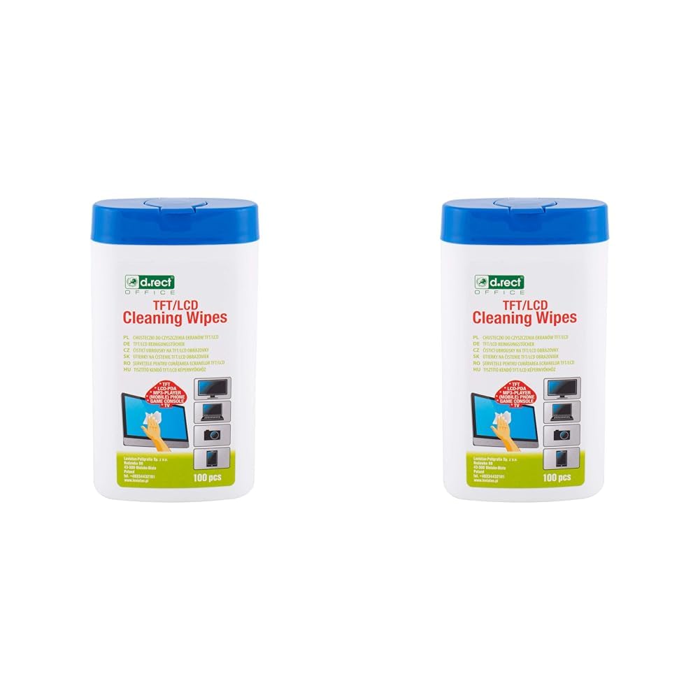 D.RECT Allzweck-Reinigungstücher 100 Stück - Reinigungstücher Feuchte in Spender - Allzwecktücher Feuchte für TFT/LCD-Monitore, Notebook, Tablet (Packung mit 2)