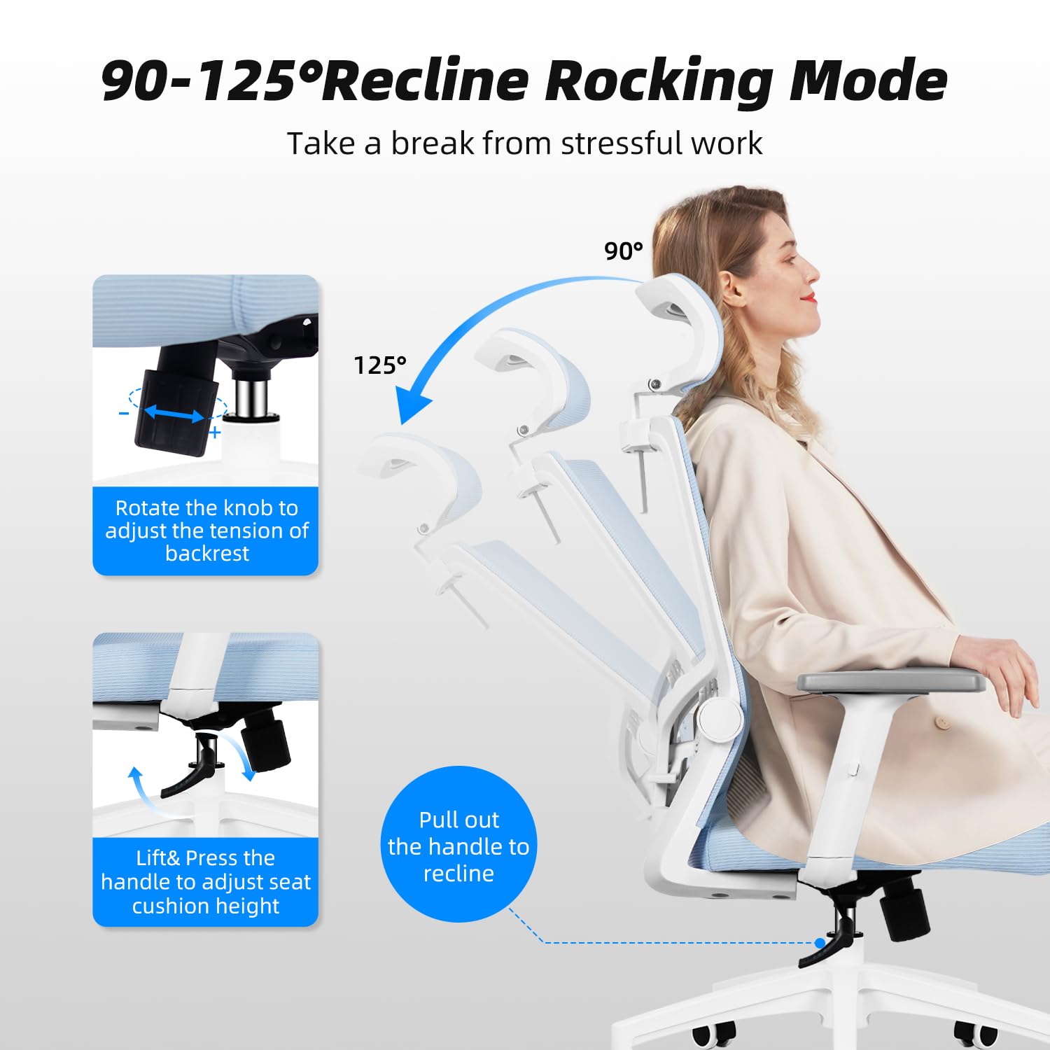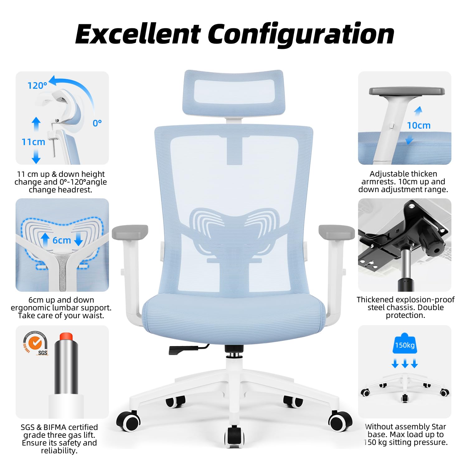 Daccormax Bürostuhl Ergonomischer Bürostuhl mit Verstellbarer Kopfstütze Lendenwirbelstütze Armlehnen Wippfunktion Bürostuhl Bürostuhl Bürostuhl 150 kg