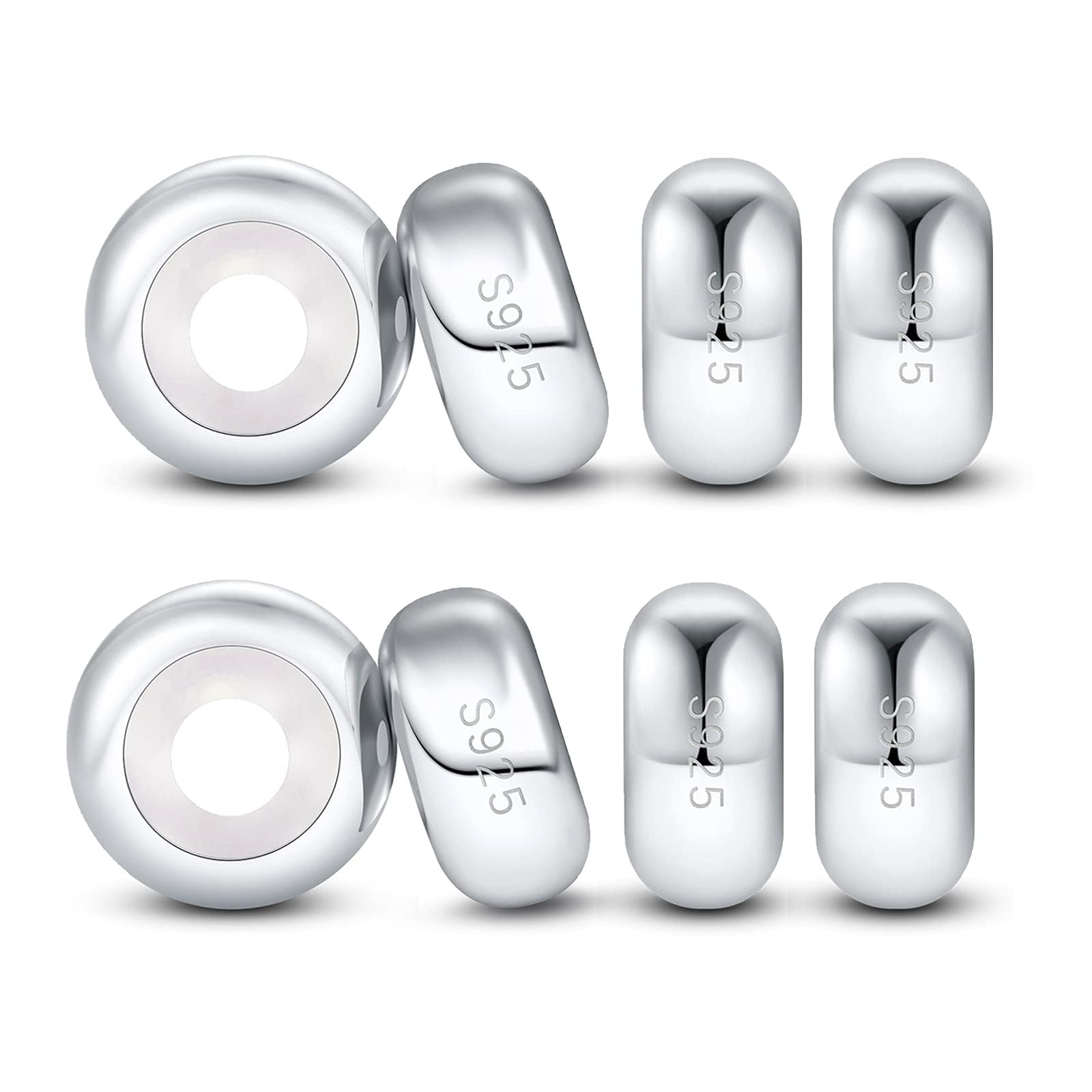 Dieses Set enthält 8 hochwertige Sterlingsilber-Spacer-Stopper-Anhänger von DALARAN, ideal für Pandora Armbänder. Jeder Anhänger ist aus nickelfreiem, bleifreiem und cadmiumfreiem 925 Silber gefertigt und mit einem inneren Gummikern versehen. Die Abmessungen der Charms Stopper betragen 7,5 mm x 3,67 mm (dick) mit einem Lochdurchmesser von 2,5 mm bis 4,5 mm, was für Armbänder mit einem Durchmesser von weniger als 3,5 mm geeignet ist. Verwenden Sie diese Stopper als Füllstopfen oder Abstandshalter, um Ihre Perlen in Position zu halten und die Charms zu stoppen. Das Set enthält 8 Sterlingsilber-Spacer-Stopper und ein Schmuckreinigungstuch. Geniessen Sie den exquisiten Handwerkskunst und 100% Kundenzufriedenheit mit unserem Kundenservice.