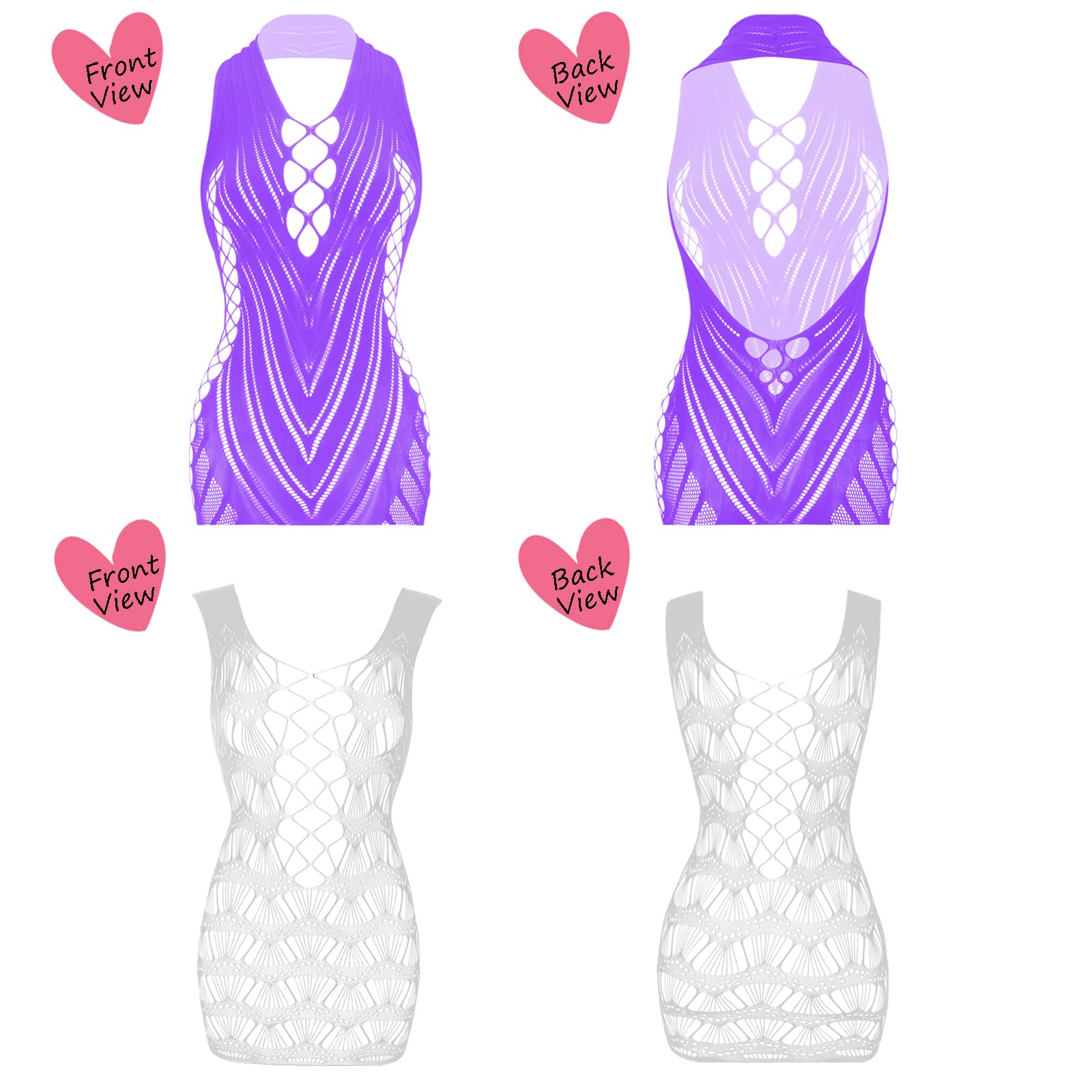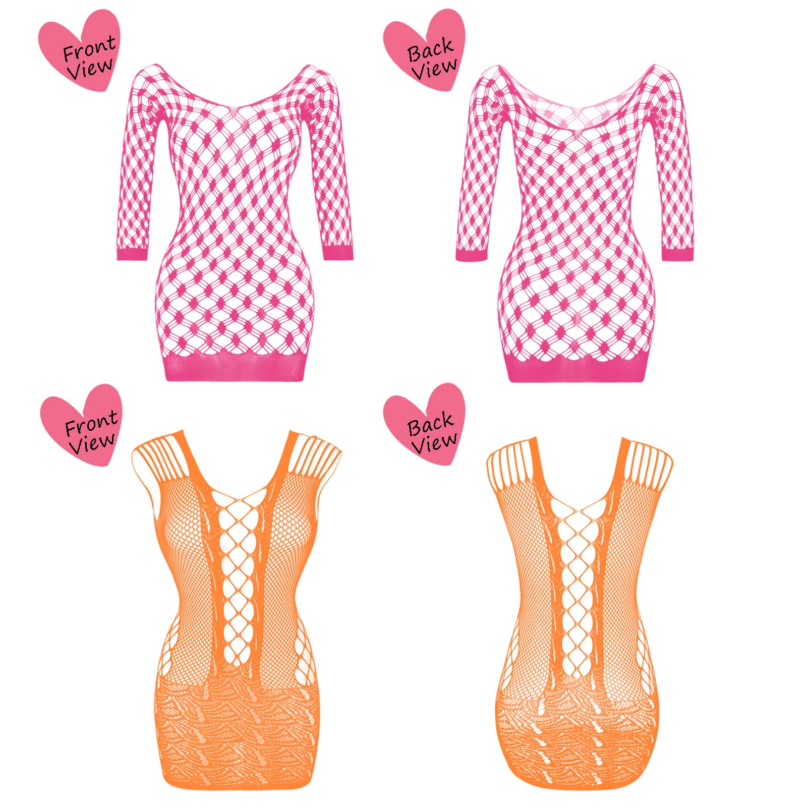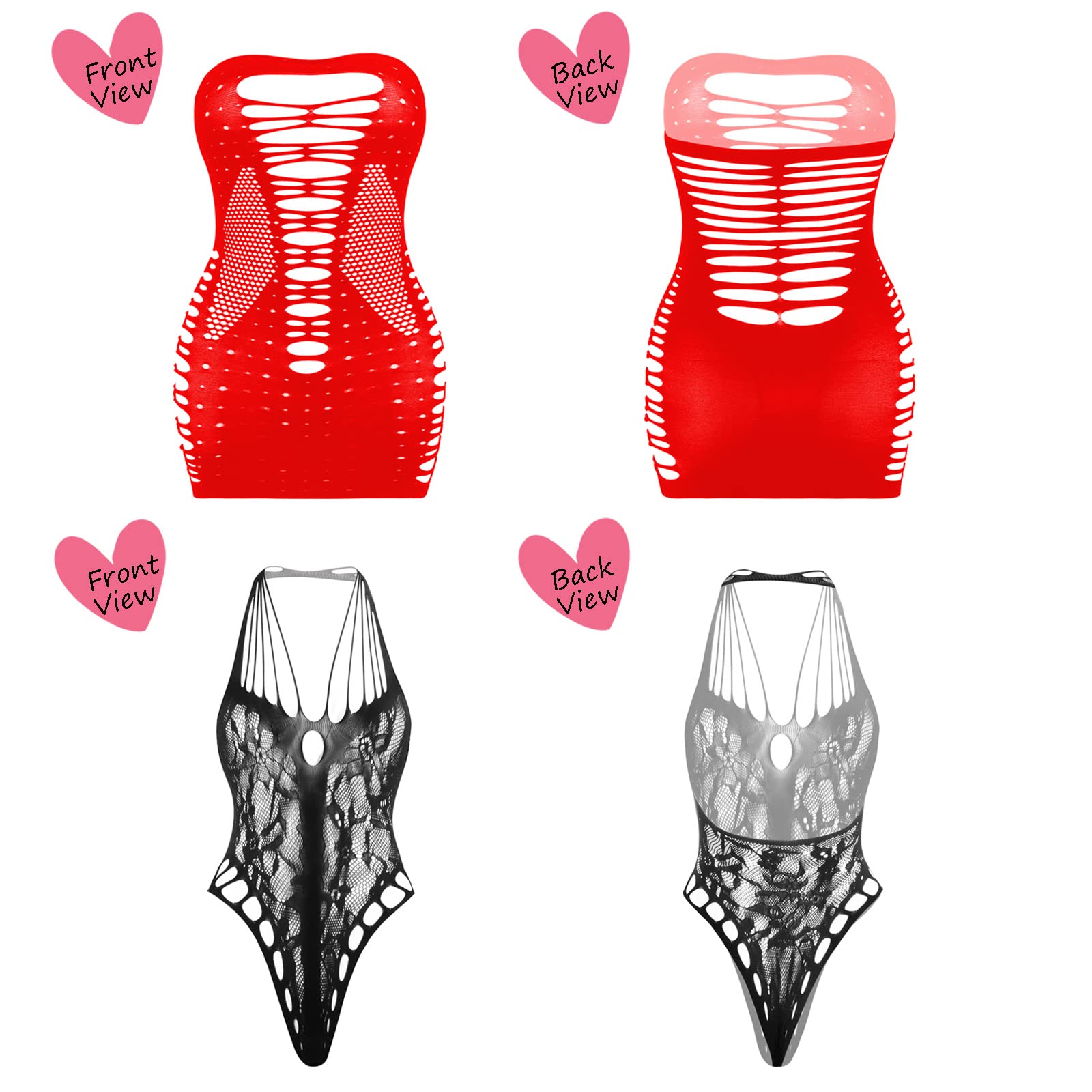 Das Material dieser hohlen Netzunterwäsche ist Nylon und Spitze, die flexibel und angenehm zu tragen ist, sie eignet sich als Geschenk zum Valentinstag. Diese Spitzenstrümpfe Dessous enthält zwei Teile, es wird empfohlen, den Teil des Strumpfes zu tragen, damit es einfacher zu tragen ist