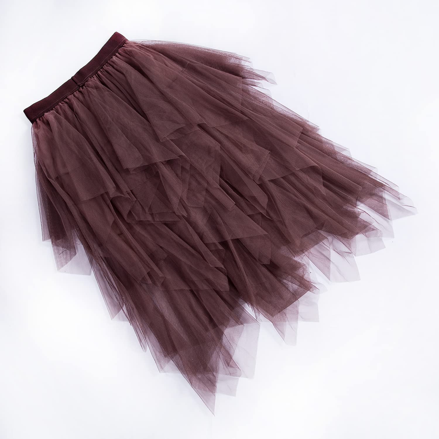 Damen Rock Tüll Unregelmässig Unterrock Lagenrock Ballett Tutu Abschlussball Party Faltenkleid A-Linie Midirock High Waisted Rock