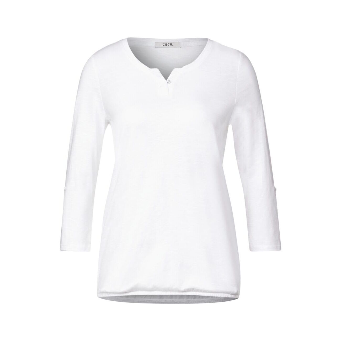 Mit der schlichten Ausstrahlung lässt sich das Shirt immer wieder neu und easy kombinieren. Highlights setzen der geschlitzte Rundhalsausschnitt und die verkürzten Ärmel mit Turn-Up Funktion. Ein weicher Materialmix und der Elastiksaum sorgen für einen hohen Tragekomfort. Masse bei EU-Grösse XS ca.: Länge 62cm, Breite 50cm, Taille 49cm