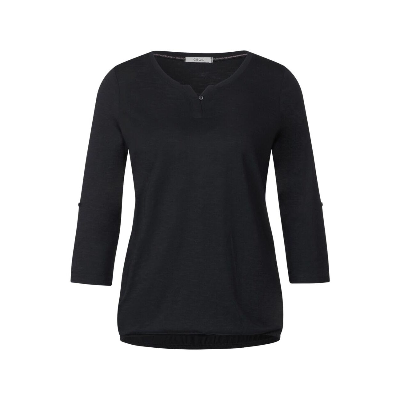 Mit der schlichten Ausstrahlung lässt sich das Shirt immer wieder easy kombinieren. Highlights setzen der geschlitzte Rundhalsausschnitt und die verkürzten Ärmel mit Turn-Up Funktion. Ein weicher Materialmix und der Elastiksaum sorgen für einen hohen Tragekomfort. Masse bei EU-Grösse XS ca.: Länge 62 cm, Breite 50 cm, Taille 49 cm