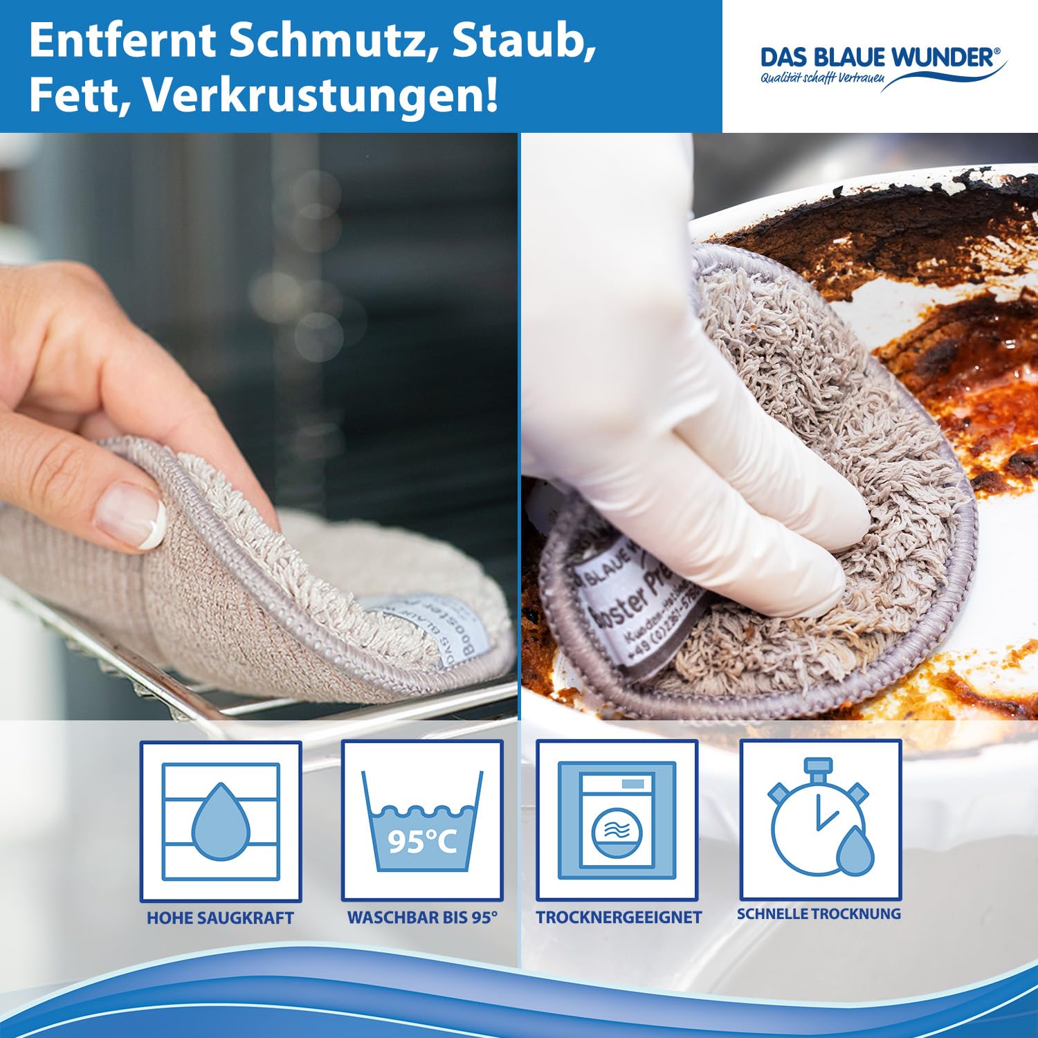 Der BOOSTER Premium ist mit seinen 2 Seiten der Garant für eine extra gründliche Reinigung – sogar auf Ihren empfindlichen Oberflächen, die einer schonenden Behandlung bedürfen. Die abrasive Seite (raue Seite) eignet sich optimal zur Reinigung von hartnäckigen Verschmutzungen und Verkrustungen und das in den meisten Fällen OHNE die Zuhilfenahme von Reinigern. Die Microfaserseite (Soft Seite) eignet sich besonders zum Nachwischen und zur schonenden Reinigung sämtlicher Oberflächen. Ideal zum Reinigen und Trocknen von Geschirr, Pfannen und Töpfen, Fussböden, Fliesen, Waschbecken/Badewannen, Backofen/Kochfelder. Der BOOSTER Premium Fliesen – und Fugenschwamm ist mit seinen 4 Funktionen der Garant für eine extra gründliche Reinigung – neben der abrasiven und soften Seite, wie auch bei den Boostern, eignen sich die seitlich angebrachten Schaber optimal zur Reinigung der Fugen. Die eingearbeitete Mittelnaht umschliesst jede Kante, z.B. den Waschbeckenrand, sicher und putzt diese mit nur einem Wisch restlos sauber. Ein Schwamm für alle Fliesen- und Fugen-Fälle – nass machen, auswringen und loslegen. Entfernt schwierige Flecken auf: Fussböden, Fliesen, Fugen, Waschbecken, Badewannen. Lieferumfang des Sets: 2 x 10 cm Durchmesser, 3 x 15 cm Durchmesser, 1 Fugenschwamm (15 cm x 10 cm)