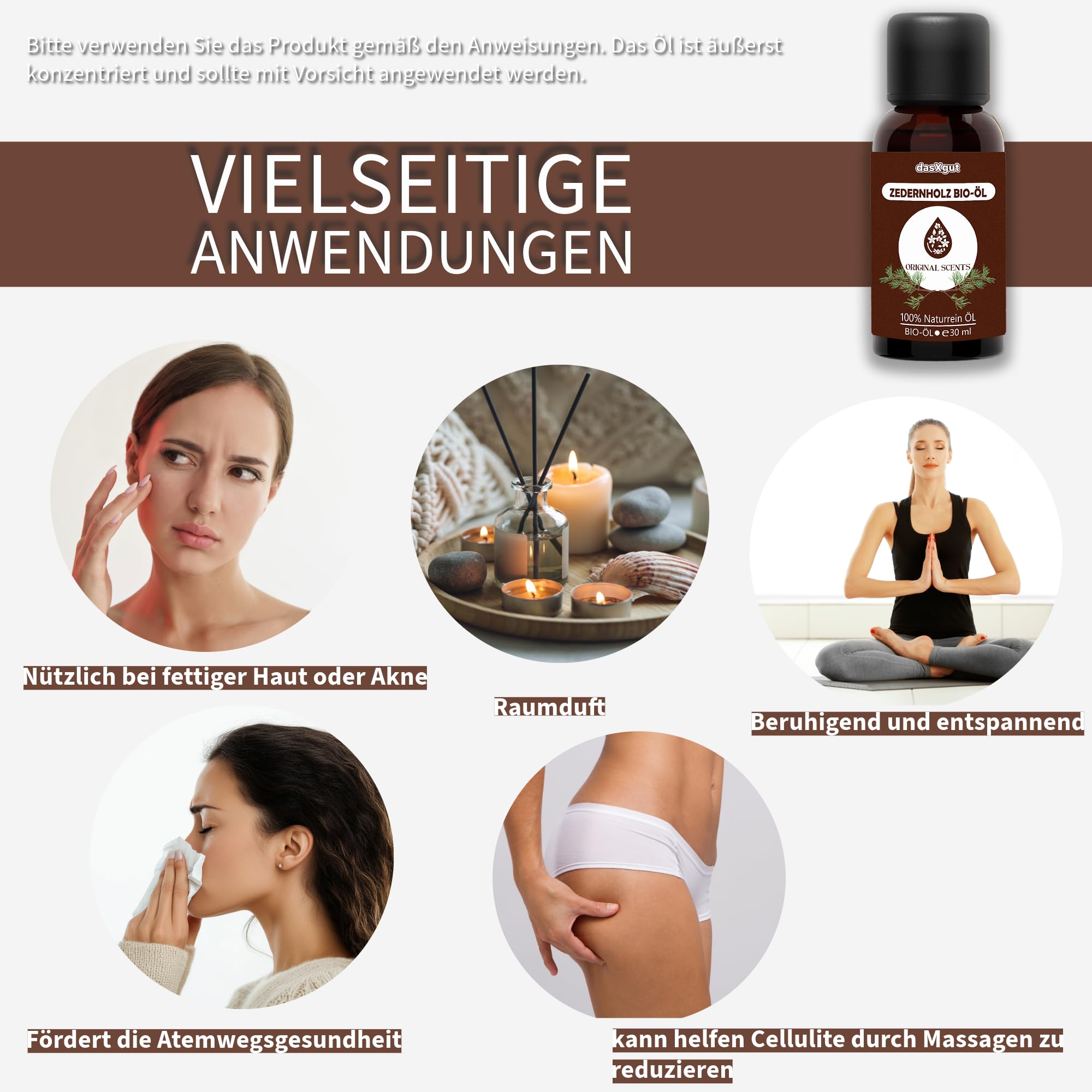 DasXgut - BIO Zedernholzöl 30 ml [100% NATURREIN] - aus nachhaltigem Himalaya Zeder - Echter Duft - Ätherische Öle E5004120 BG-BIO-02
