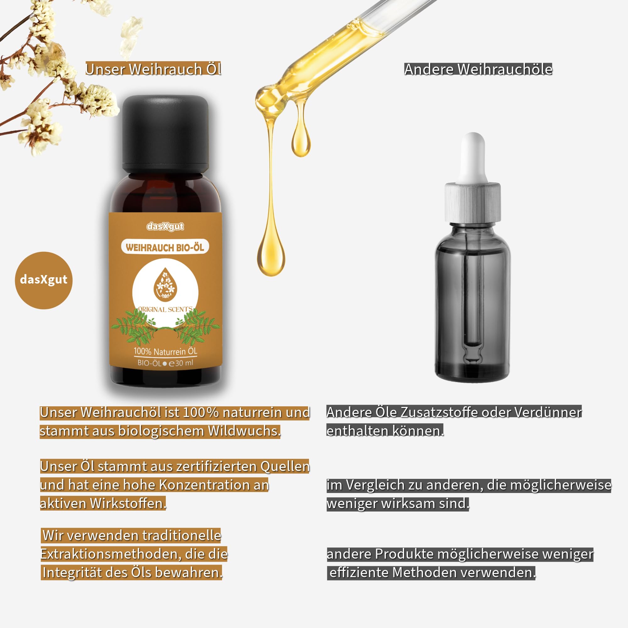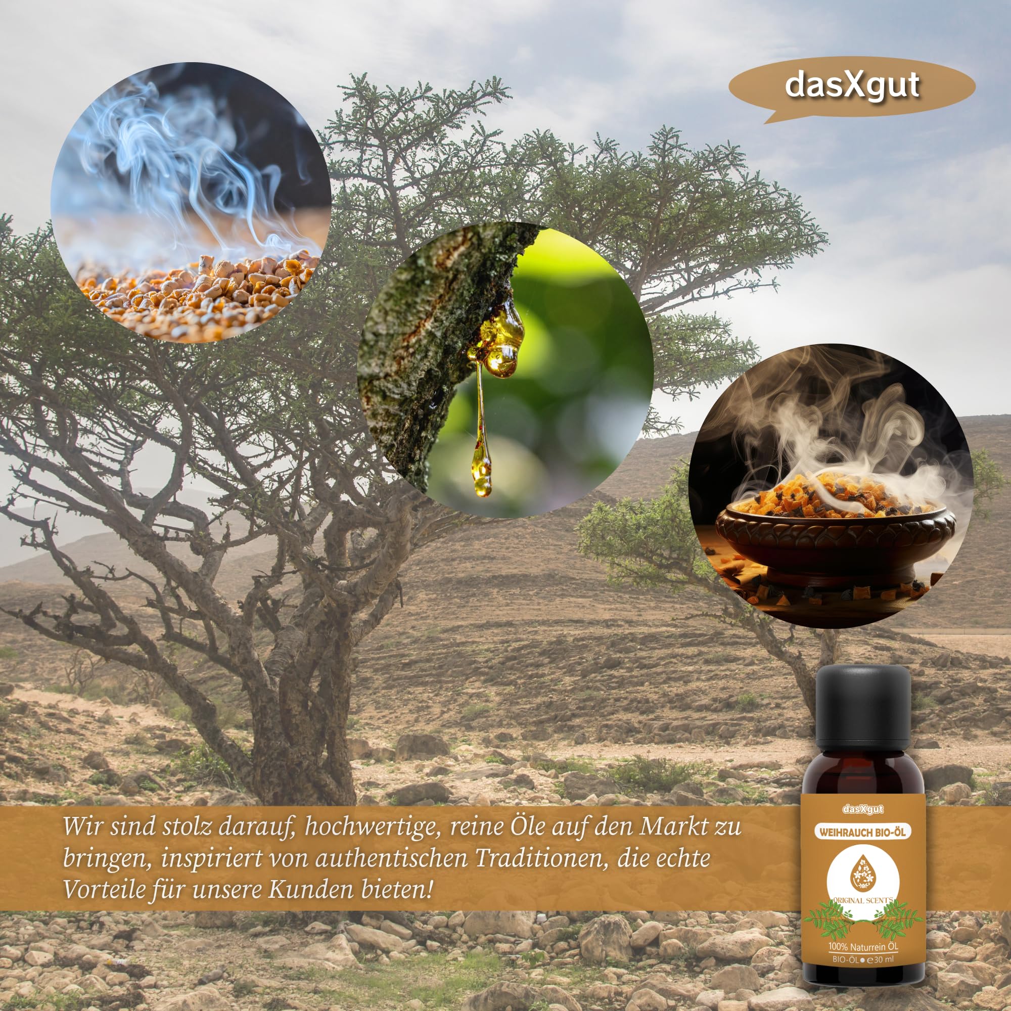 DasXgut - BIO Weihrauchöl 30 ml [100% NATURREIN] - Reines Weihrauch Öl - Duftöl Parfumqualität - Nachhaltiger Wildwuchs - Frankincense Oil E5004119 BG-BIO-02