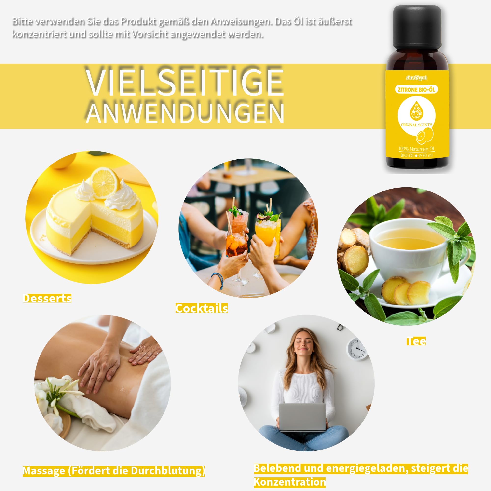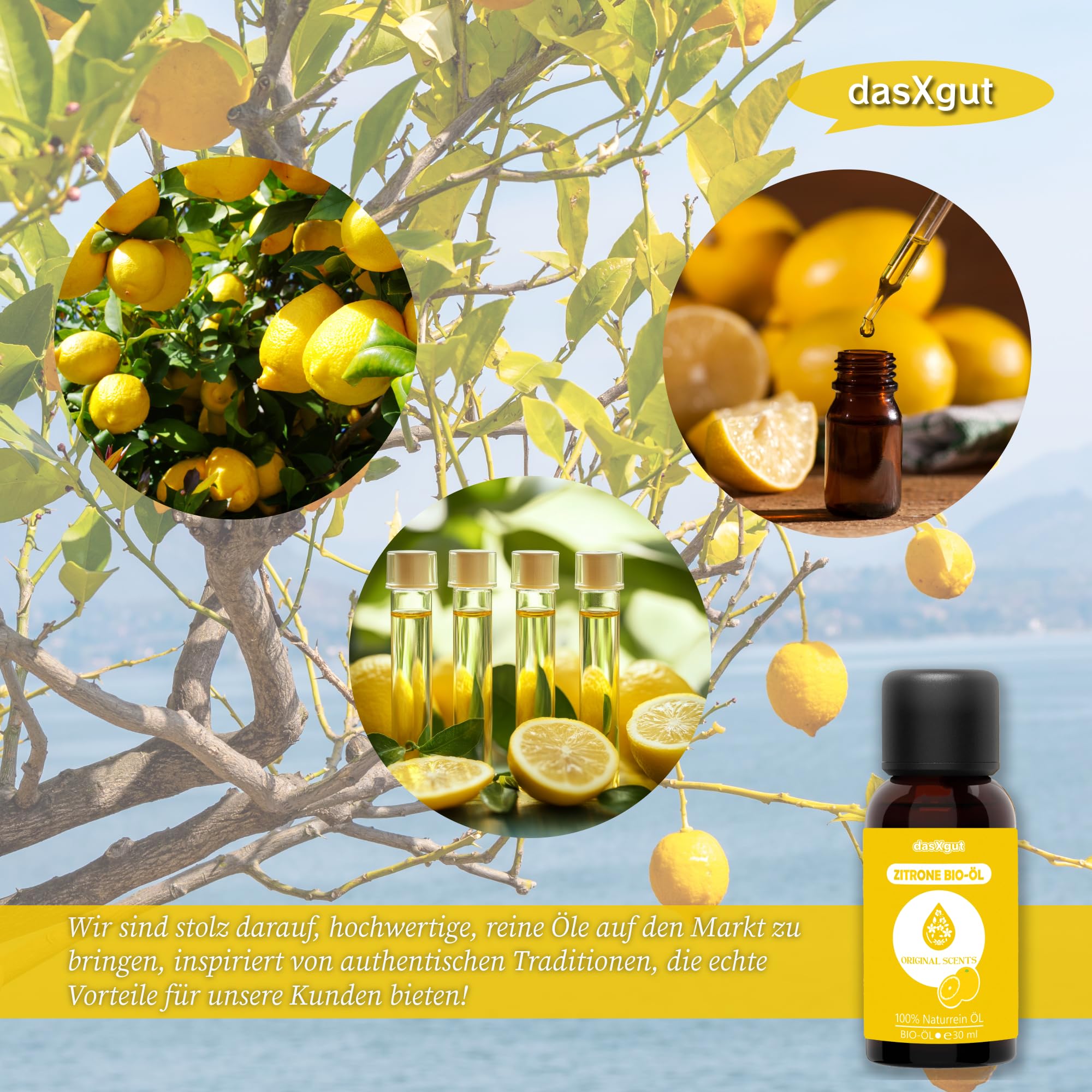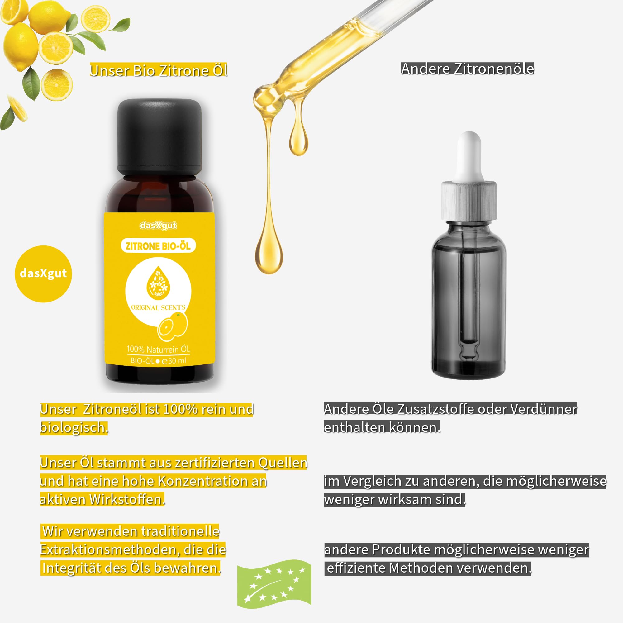 DasXgut – BIO Zitronenöl 30 ml ätherisch [100% NATURREIN] Kaltgepresst aus echten Zitronen zum Verzehr - Lemon Oil E5004116 BG-BIO-02