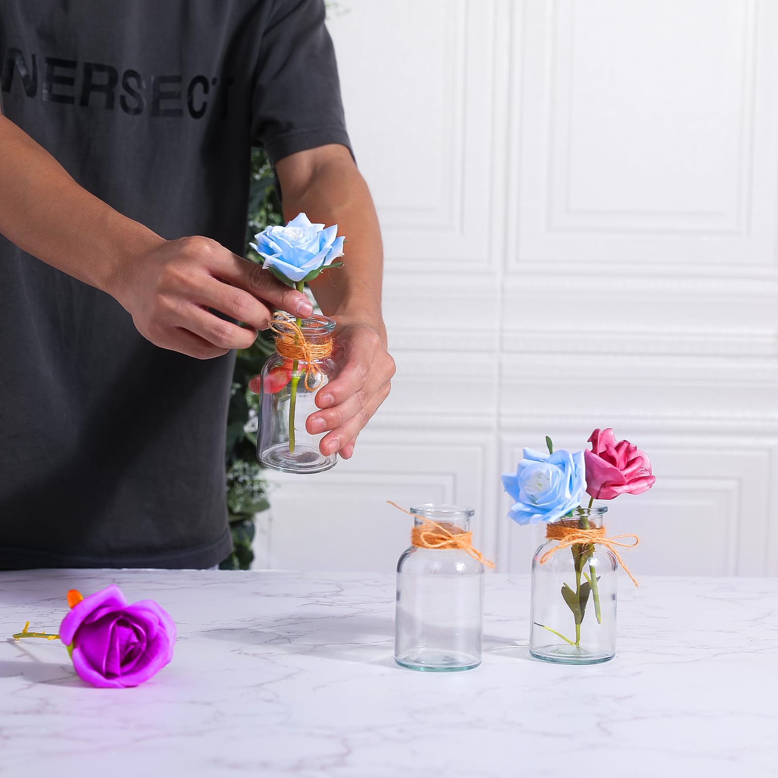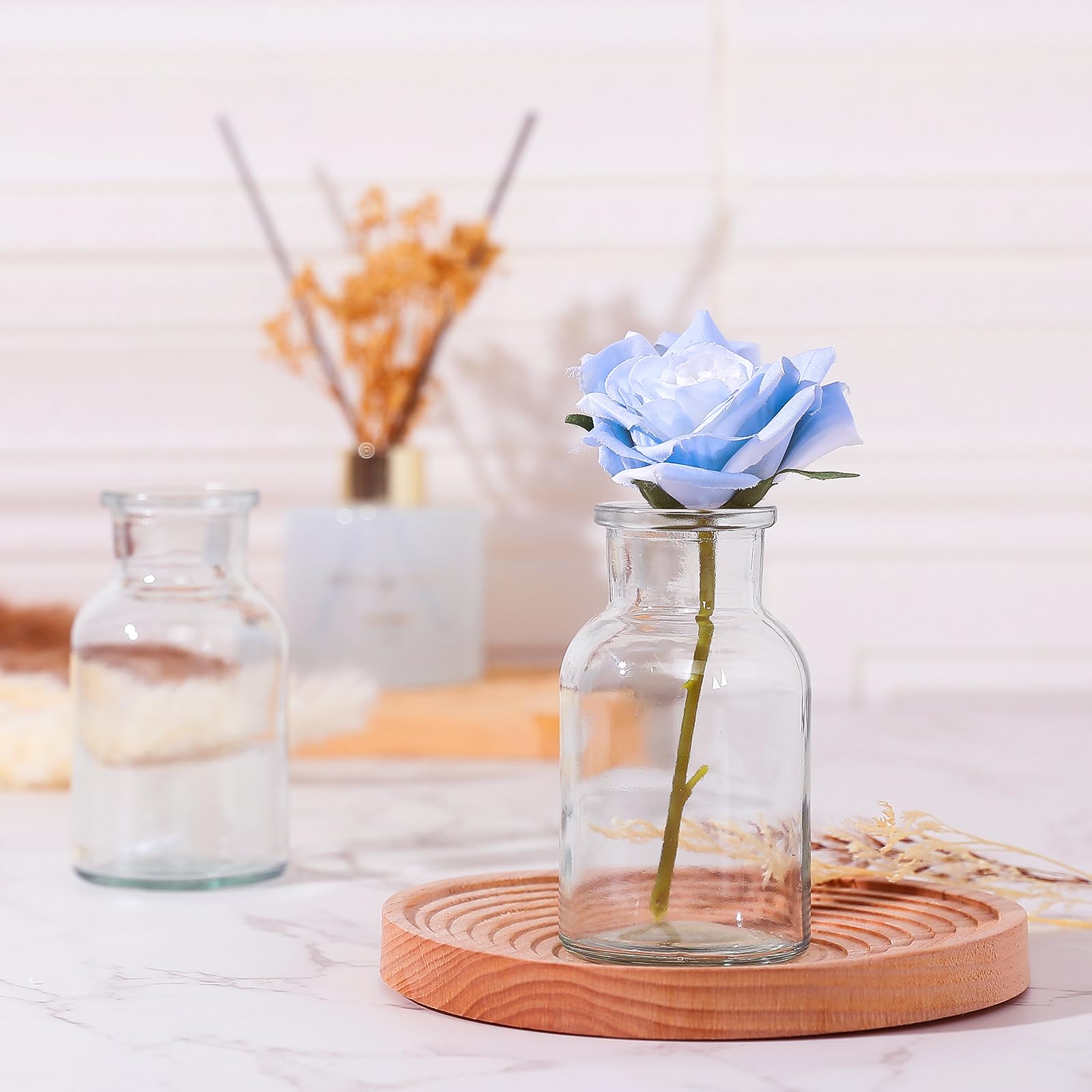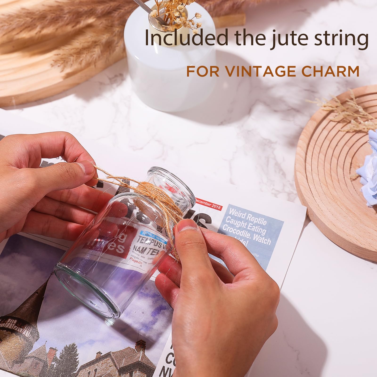DATEFUN 12 Stück Mini Glasvasen, 125ml kleine Väschen mit Juteschnur, Blumenvasen Tischvasen Glasvasen Dekoflaschen Glasflaschen, Glasfläschchen für Tischdeko Mittelstücke, Hochzeitsdekorationen