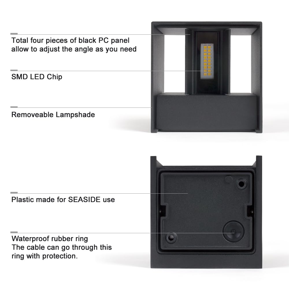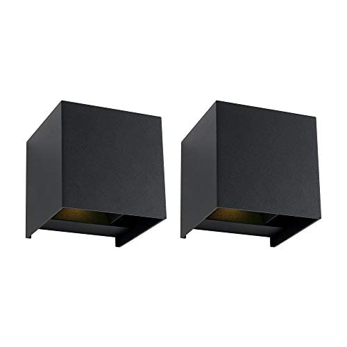 DAWALIGHT Wandlampe Aussen 2er Pack LED 12W 3000K Warmweiss Up Down Wandleuchte IP65 Wasserdichte Lampe Aussen Aussenwandleuchten Einstellbarer Lichtstrahl, Aluminium, Schwarz