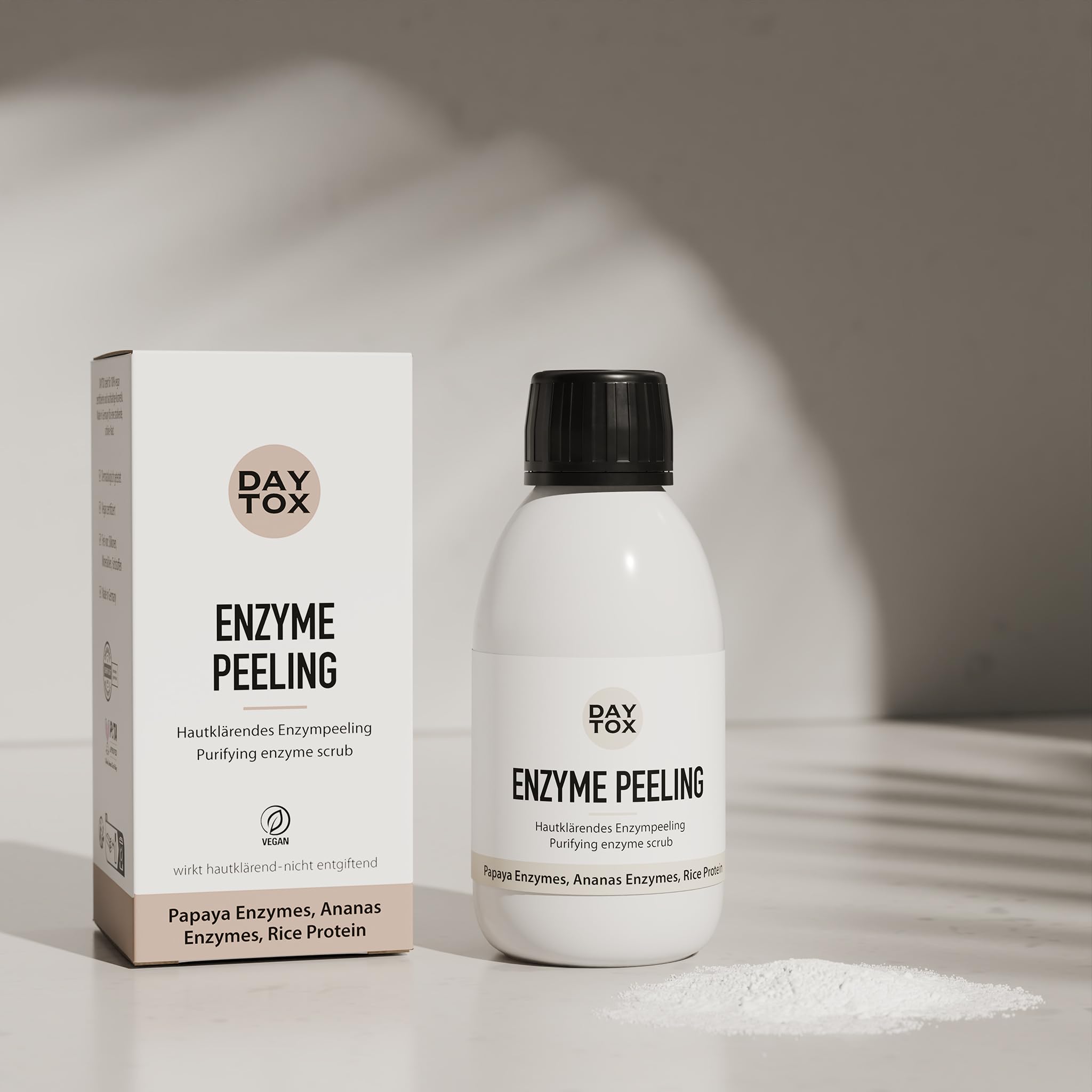 Das DAYTOX Enzympeeling Pulver ist ein besonders mildes, mechanikfreies Gesichtspeeling, das die Haut sanft von abgestorbenen Hautzellen befreit und ihr ein frisches, klares Aussehen verleiht. Durch die enzymatische Wirkung wird die Haut exfoliert, ohne sie zu reizen – ideal fuer alle, die empfindliche Haut haben oder aggressive Peelings vermeiden moechten.