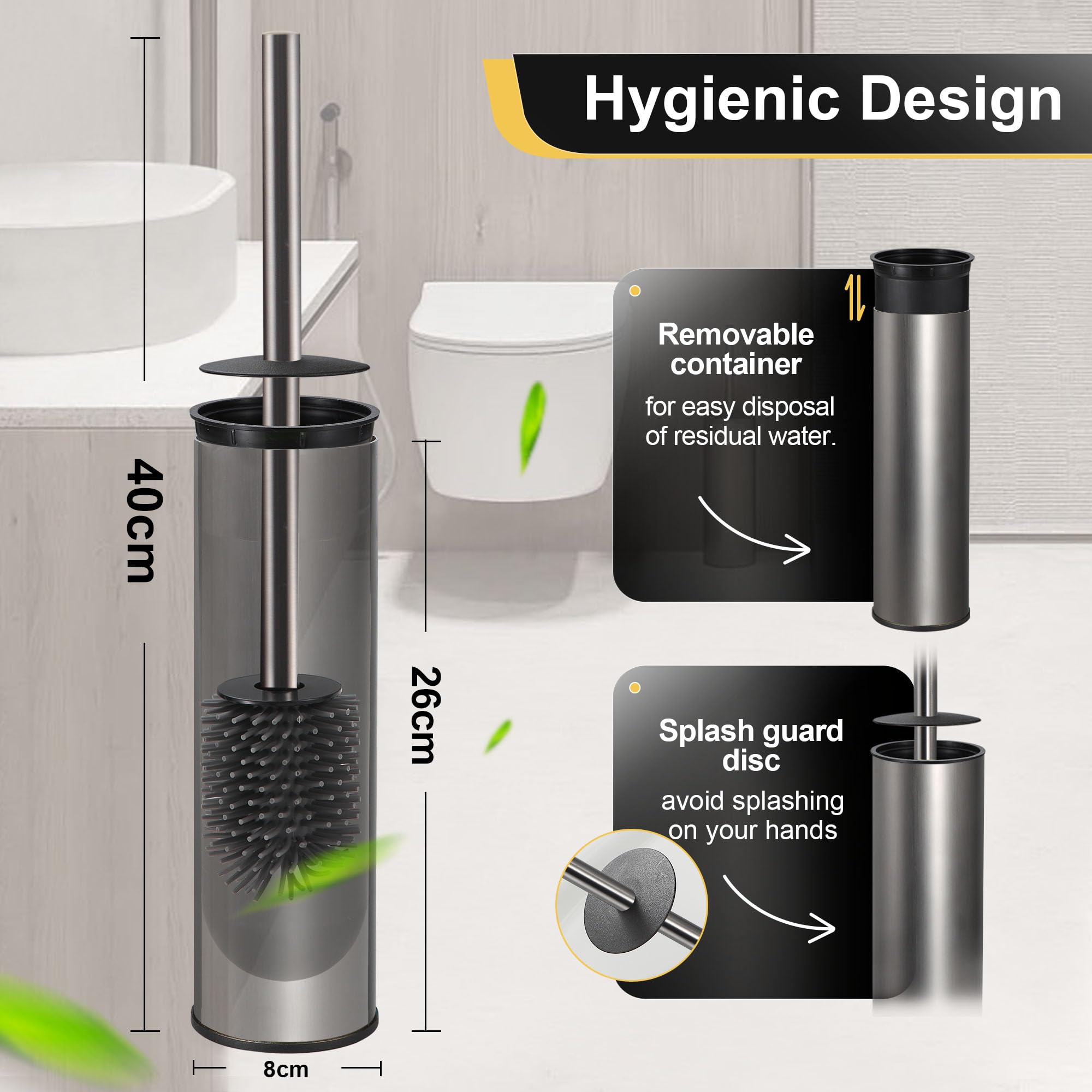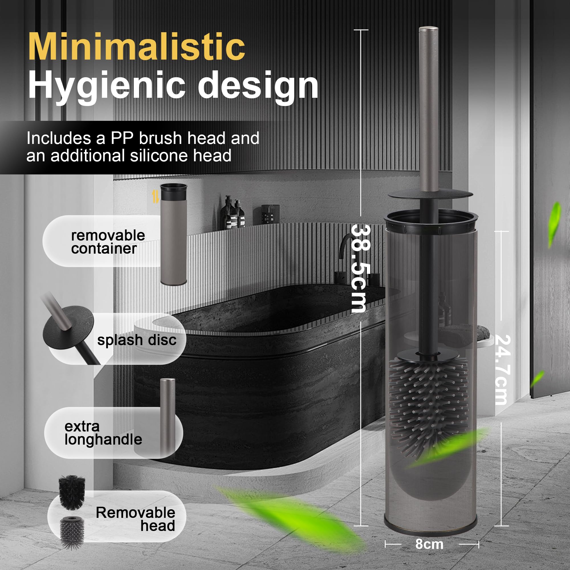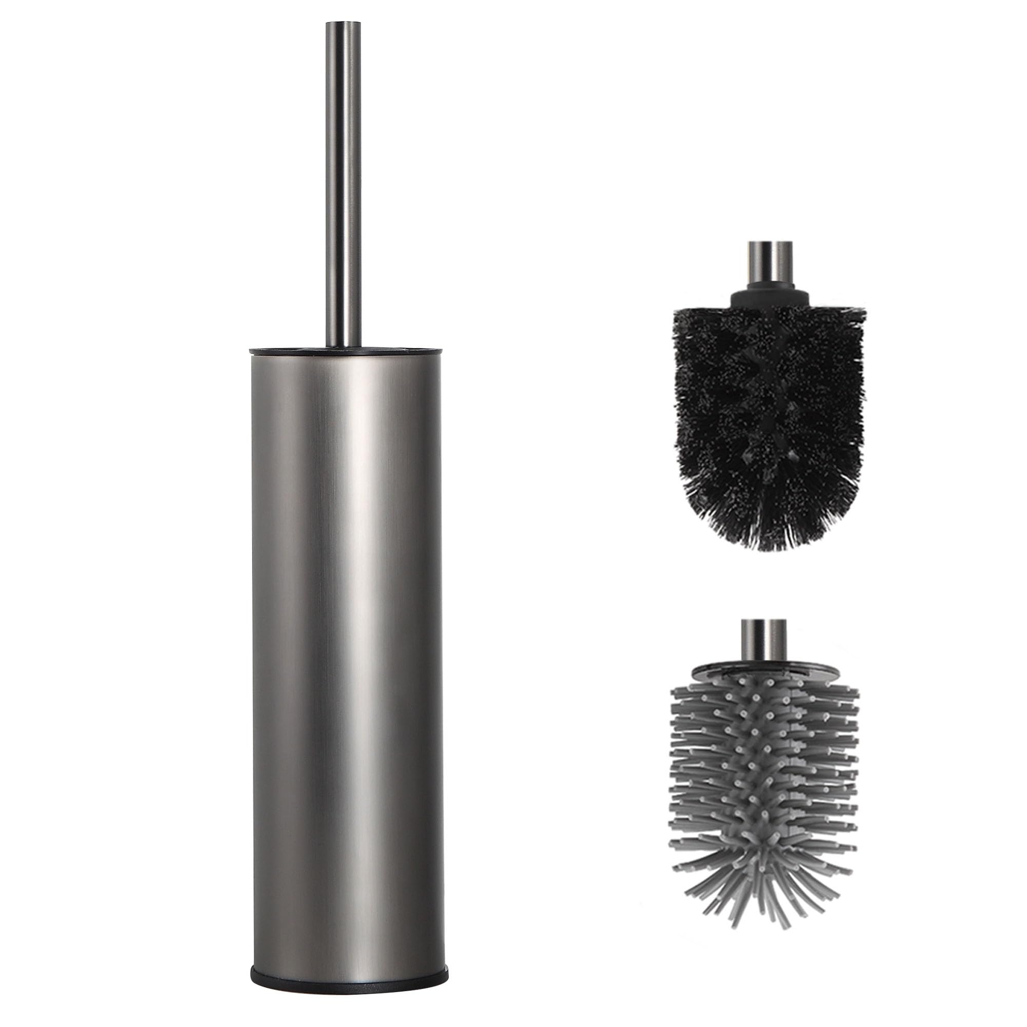 DAZI Klobürste freistehende metallisch, klobürste mit 2 Langen toilettenbürste silikon für eine Tiefenreinigung des Waschbeckens, WC Bürste mit Tropf- und Verstopfungshemmung. (Grau)