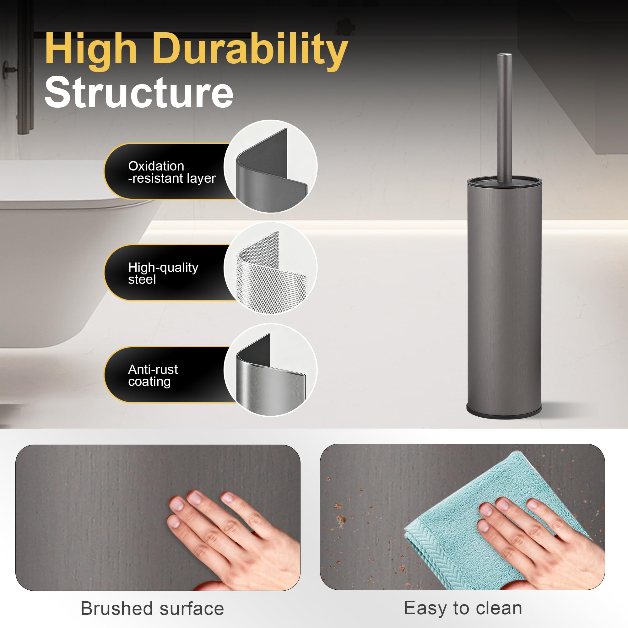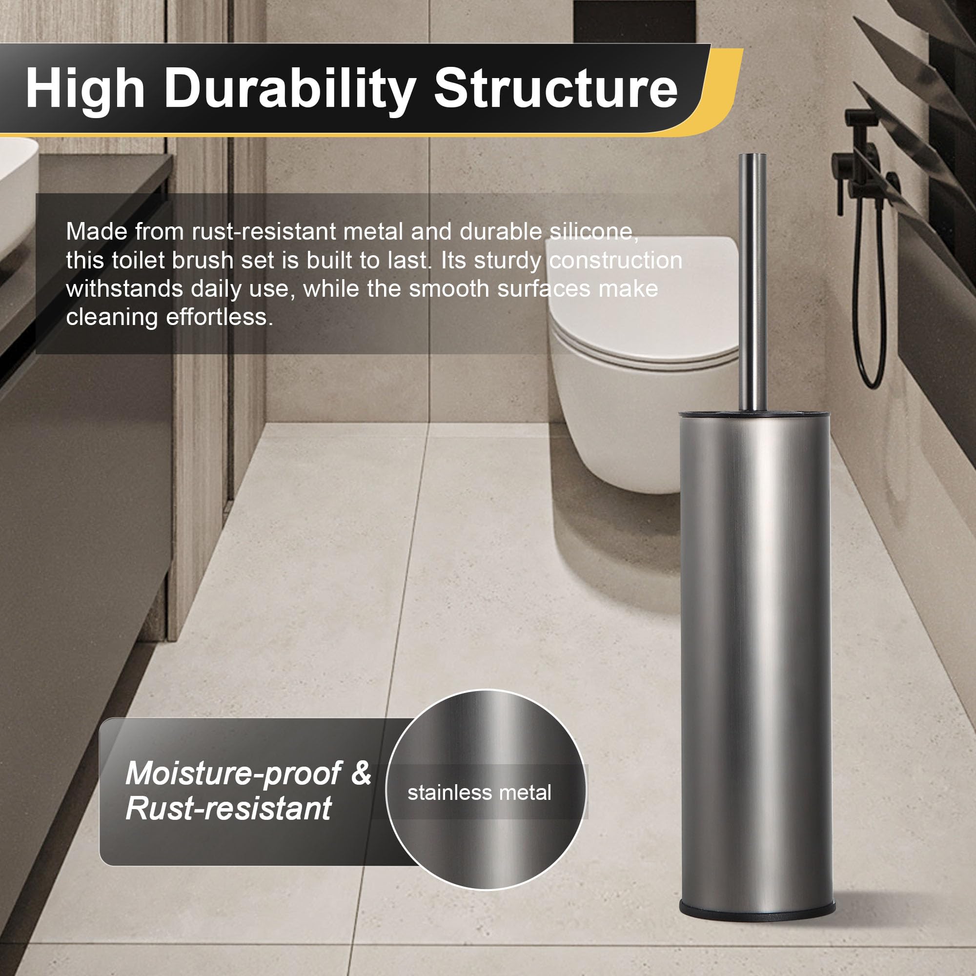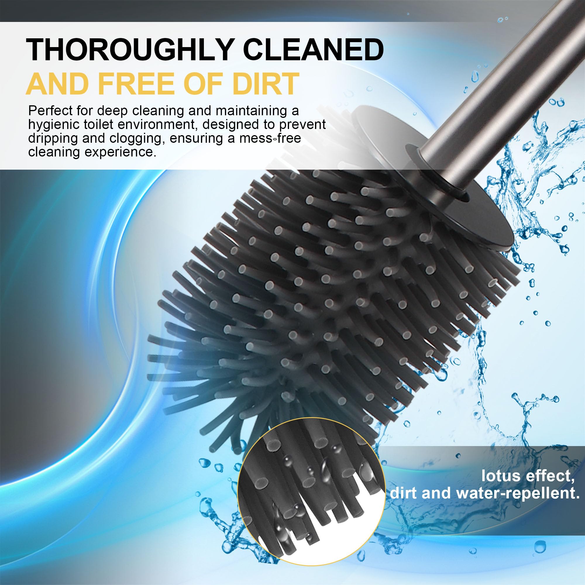 DAZI Klobürste freistehende metallisch, klobürste mit 2 Langen toilettenbürste silikon für eine Tiefenreinigung des Waschbeckens, WC Bürste mit Tropf- und Verstopfungshemmung. (Grau)