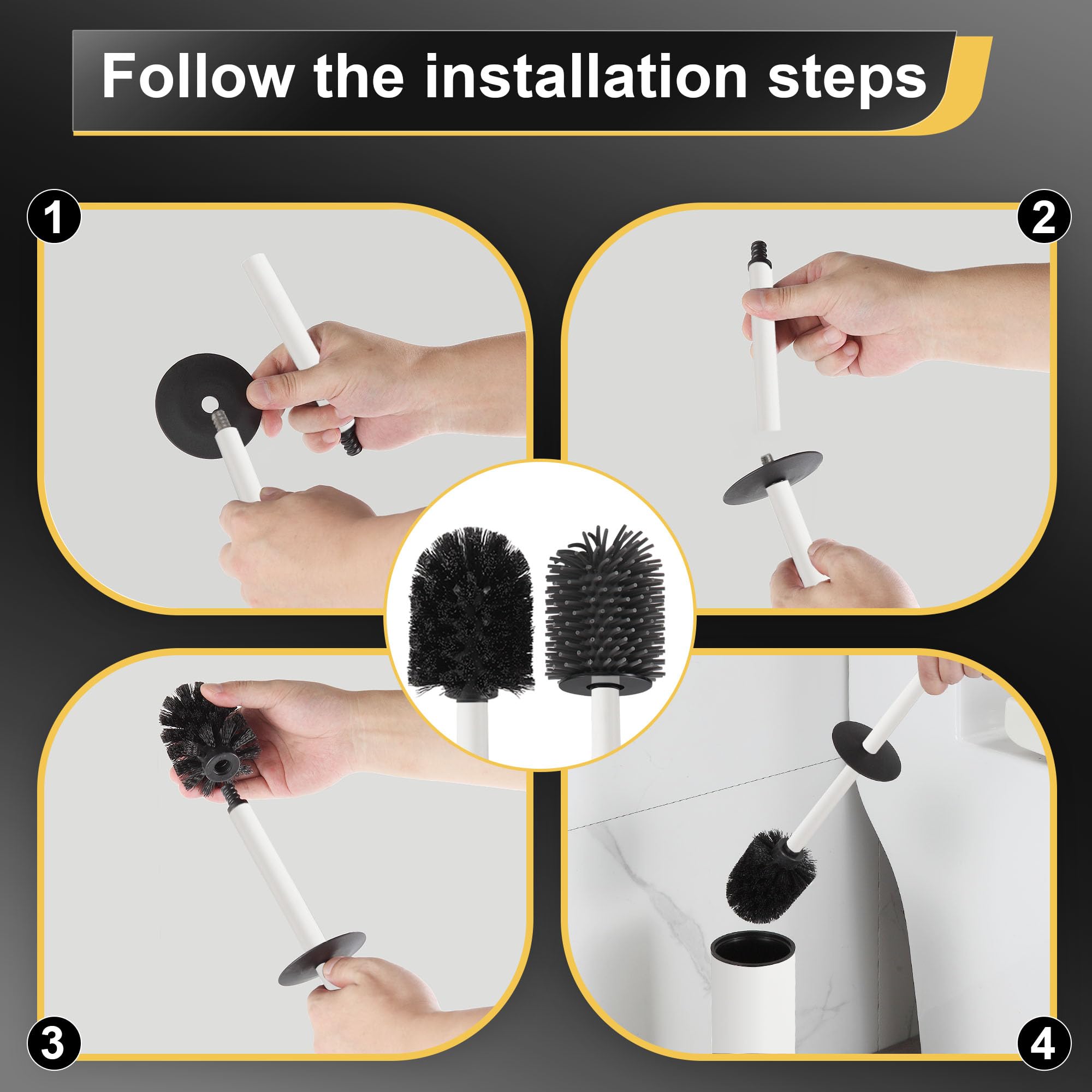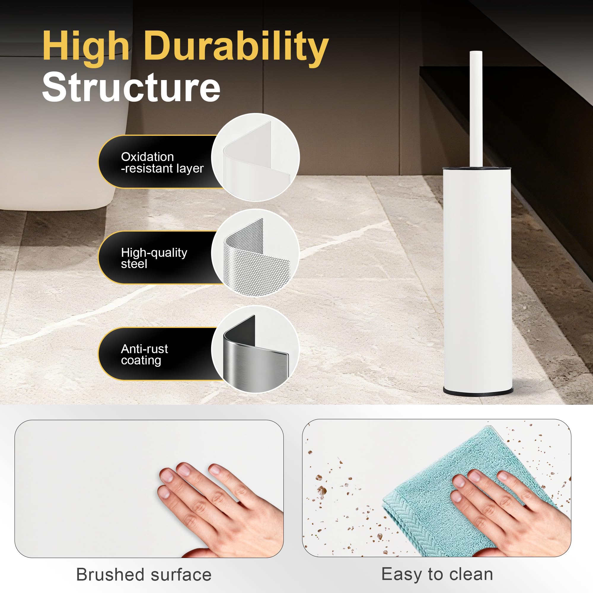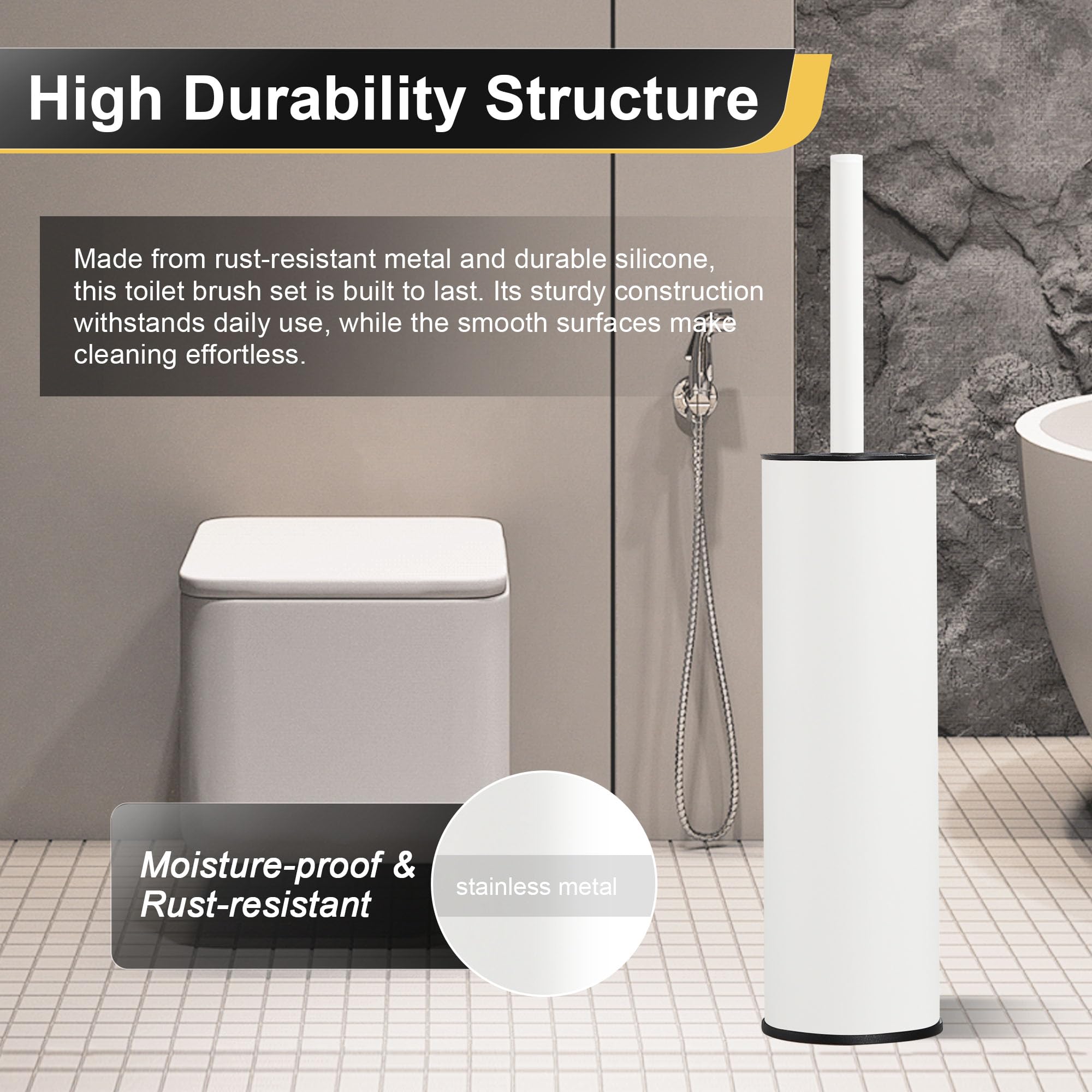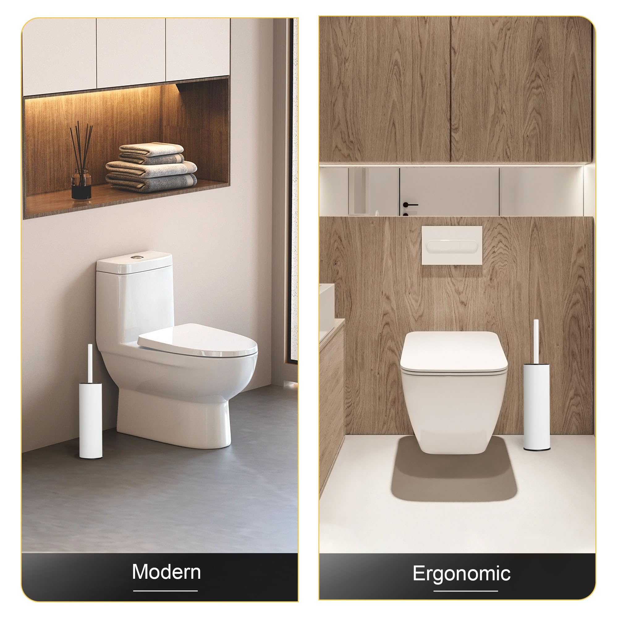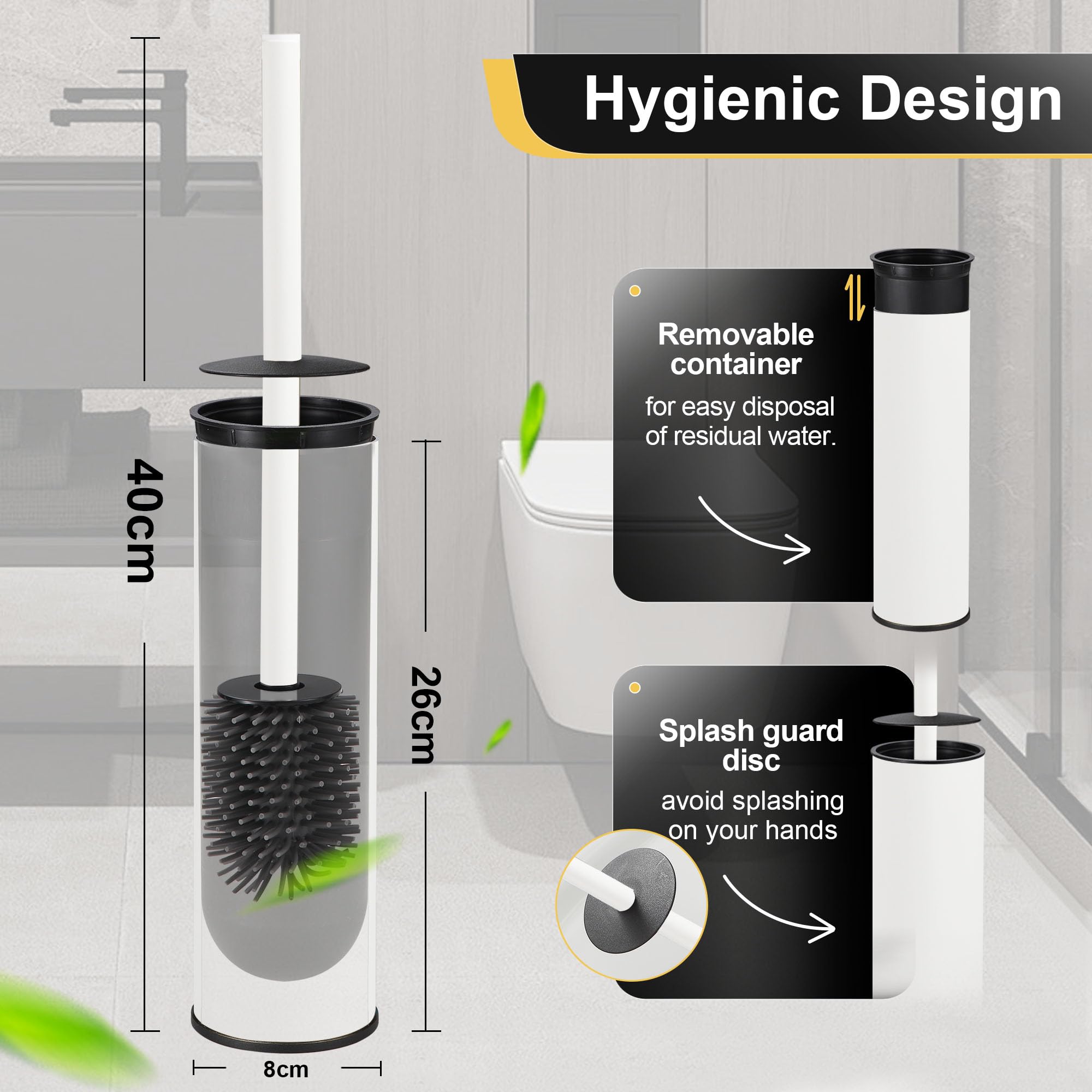 DAZI Klobürste freistehende metallisch, klobürste mit 2 Langen toilettenbürste silikon für eine Tiefenreinigung des Waschbeckens, WC Bürste mit Tropf- und Verstopfungshemmung. (Weiss)