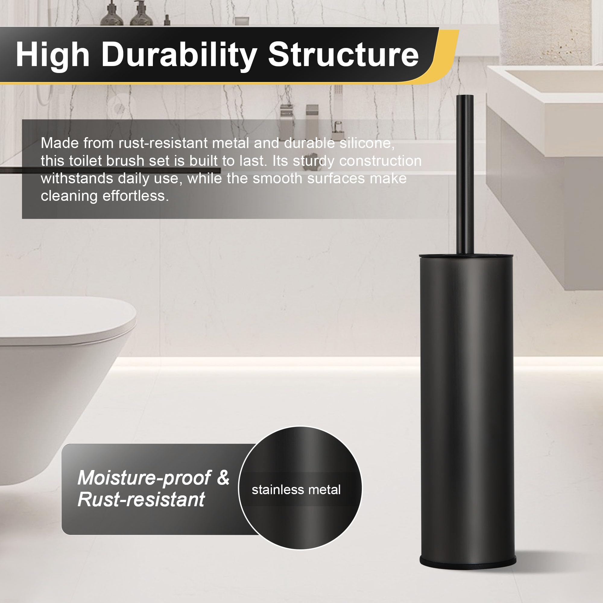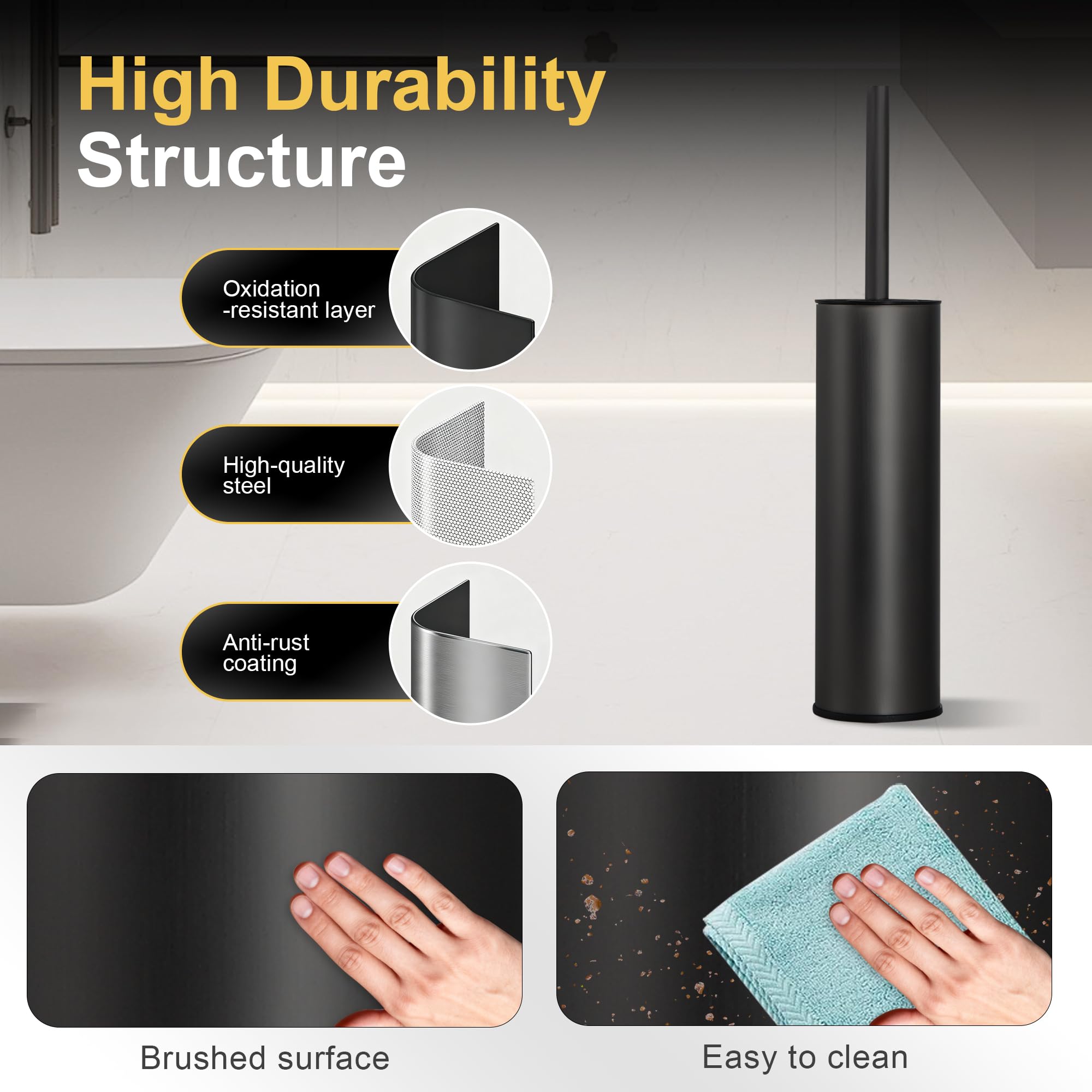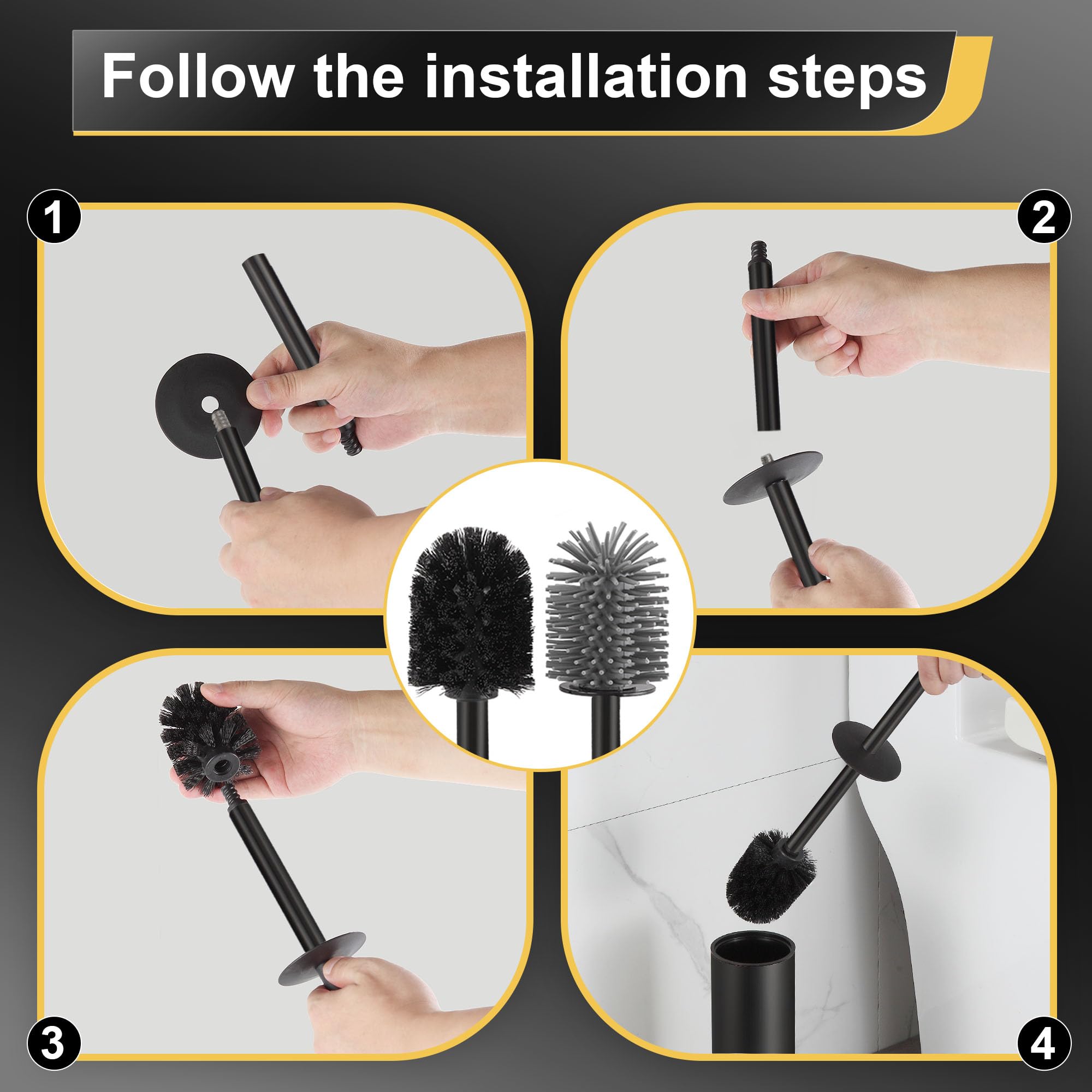 DAZI Klobürste freistehende metallisch, Schwarze Matte Toilettenbürste mit 2 Langen WC-Bürsten für eine Tiefenreinigung des Waschbeckens, Klobürste schwarz mit Tropf- und Verstopfungshemmung.