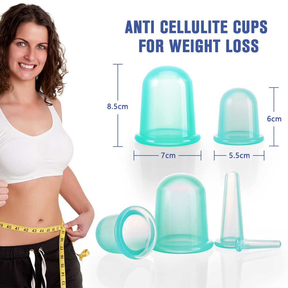 Die grünen Schröpfgläser aus hochwertigem Silikon ermöglichen eine individuelle Anpassung des Unterdrucks und helfen dabei, Verspannungen zu lösen und das Hautbild zu verbessern. Sie sind besonders effektiv bei der Reduktion von Cellulite und der Förderung einer strafferen Haut.
