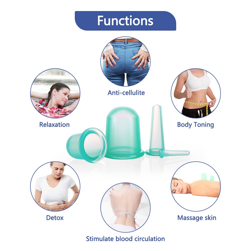 4 Silikon Schröpfgläser für Körper und Gesicht