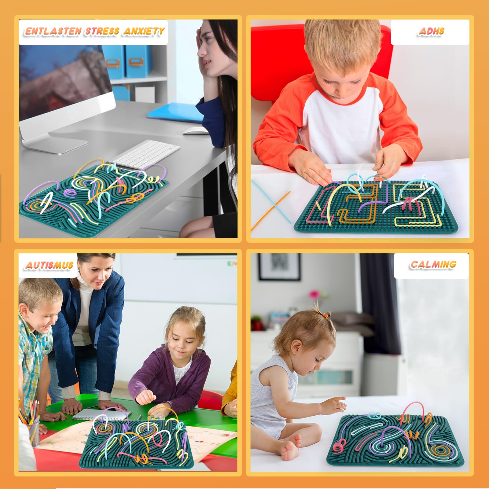 ddLUCK Extra Gross Sensorik Activity Board, 29.5 x 20 cm Silikon Fidget Spielzeug zur ADHS Autismus Stress Anxiety, Sensory Reise Toys Spiel mit 40 Stäbe für Kinder ab 3 Jahr & Erwachsene