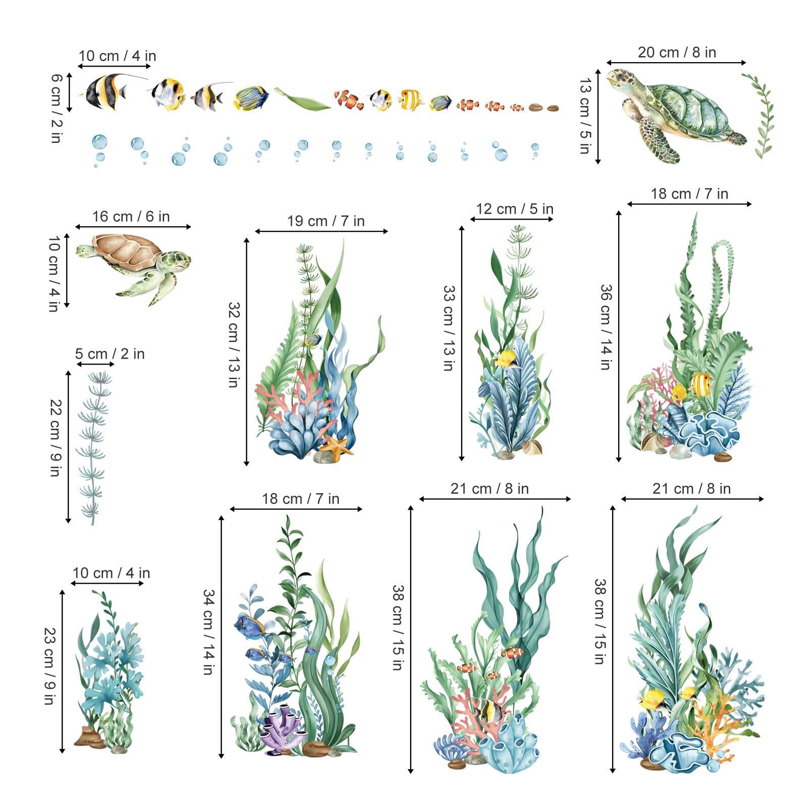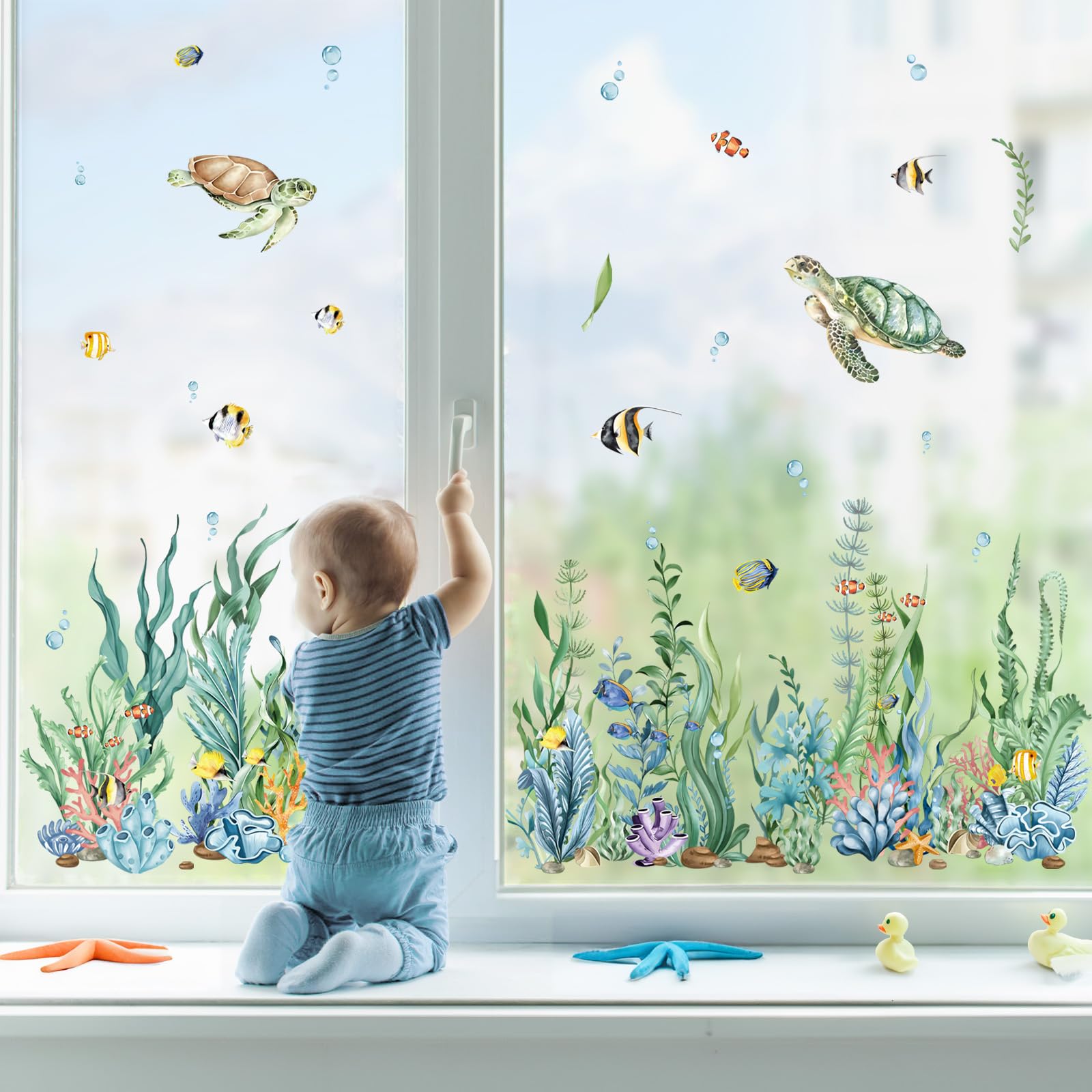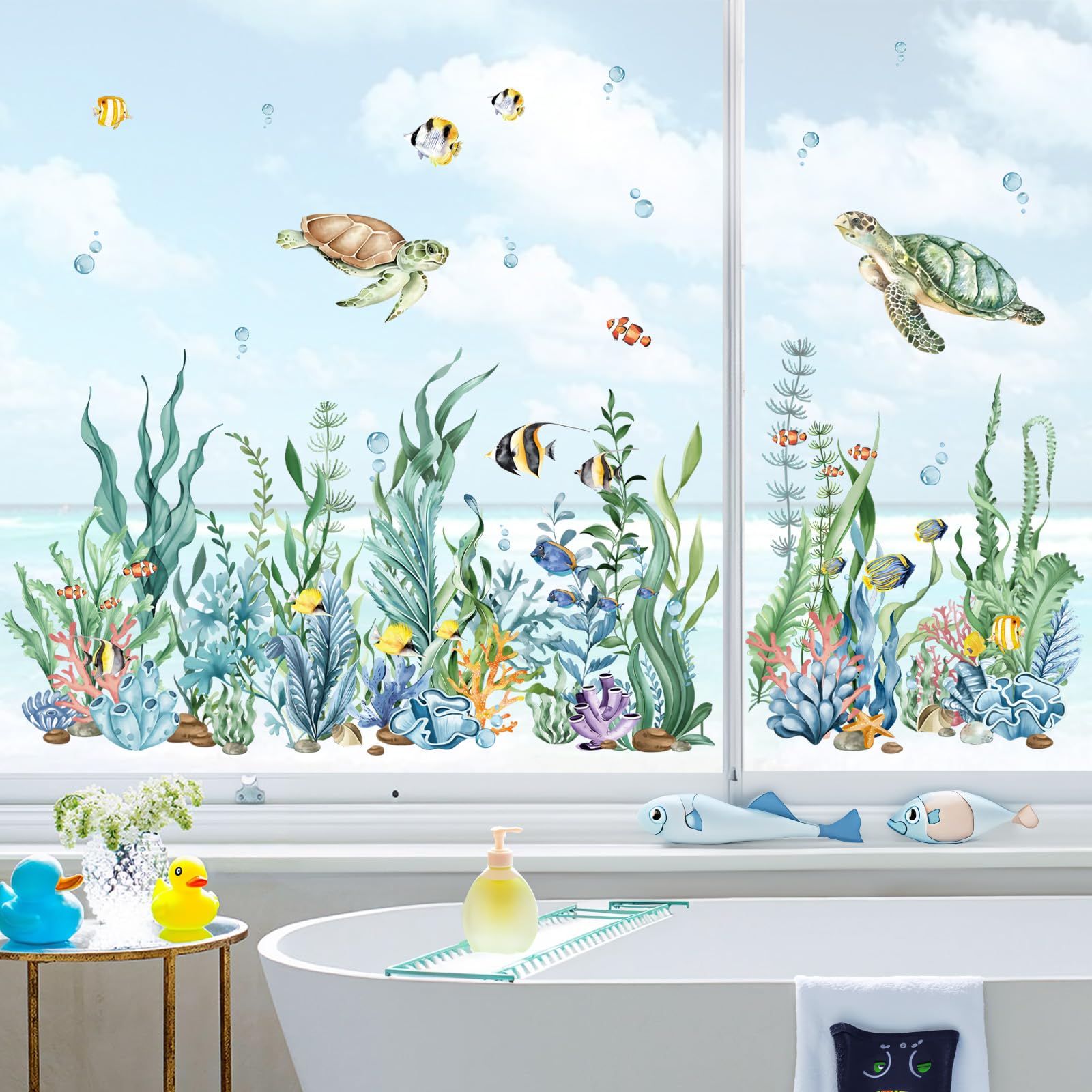 decalmile Fensteraufkleber Unterwasserwelt Seegras Fenster Sommer Abziehbilder Unter dem Meer Seetang Meeresschildkröten Fensterbilder Fisch Fenstersticker Badezimmer Glas Fensterdeko Aufkleber