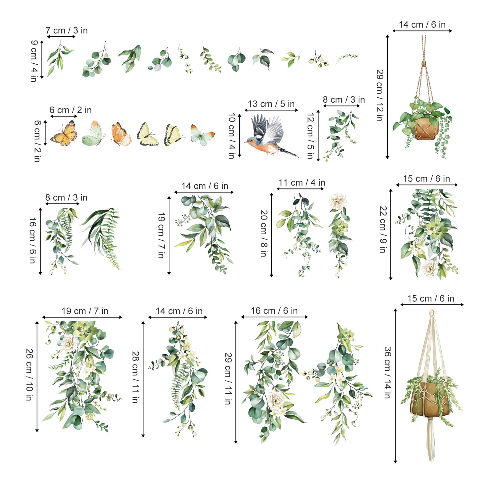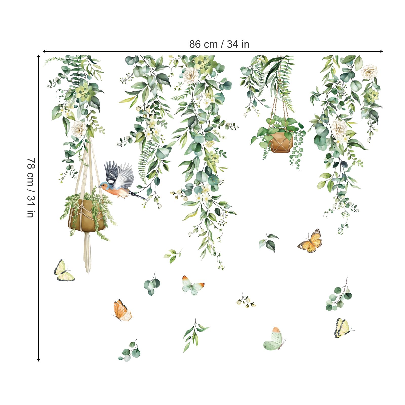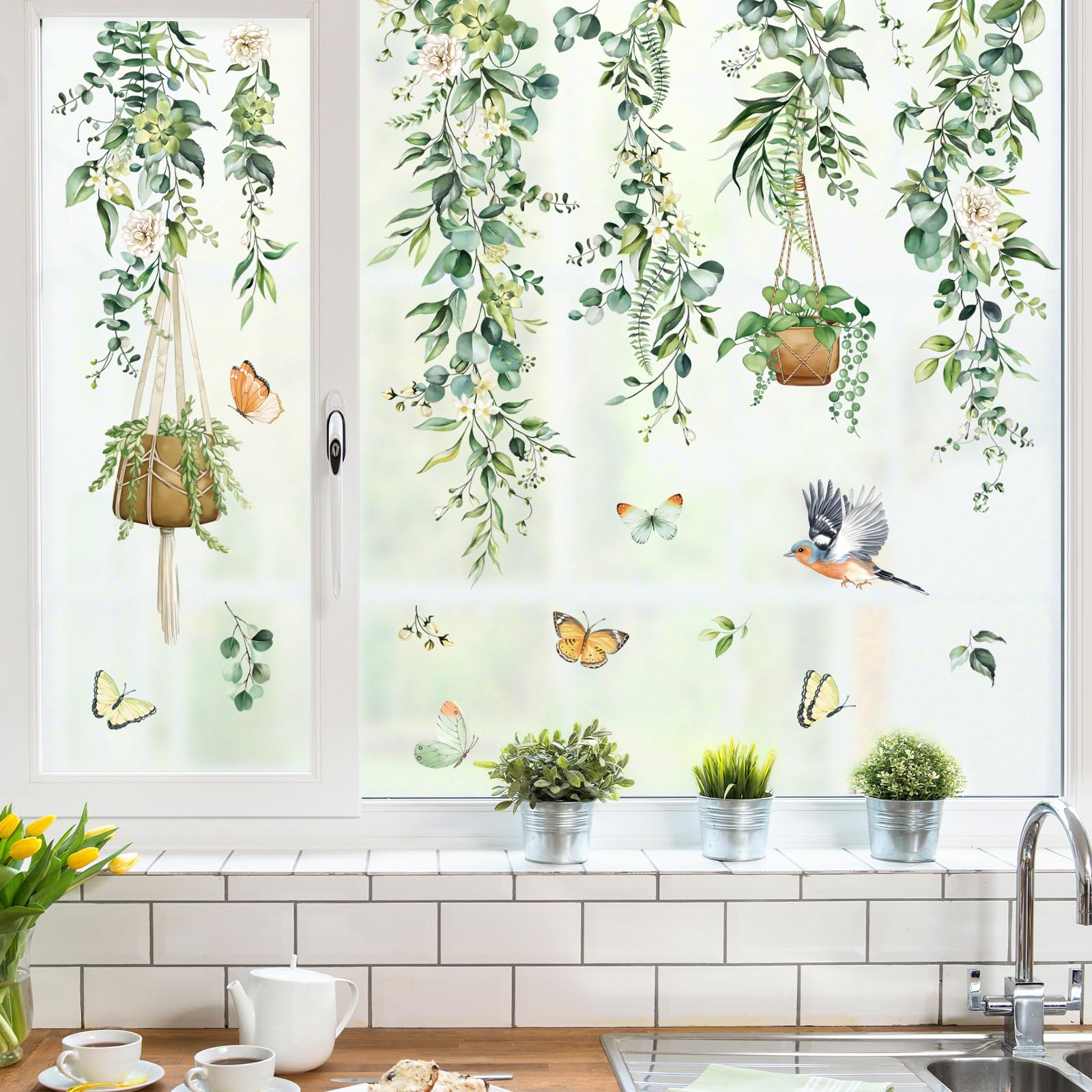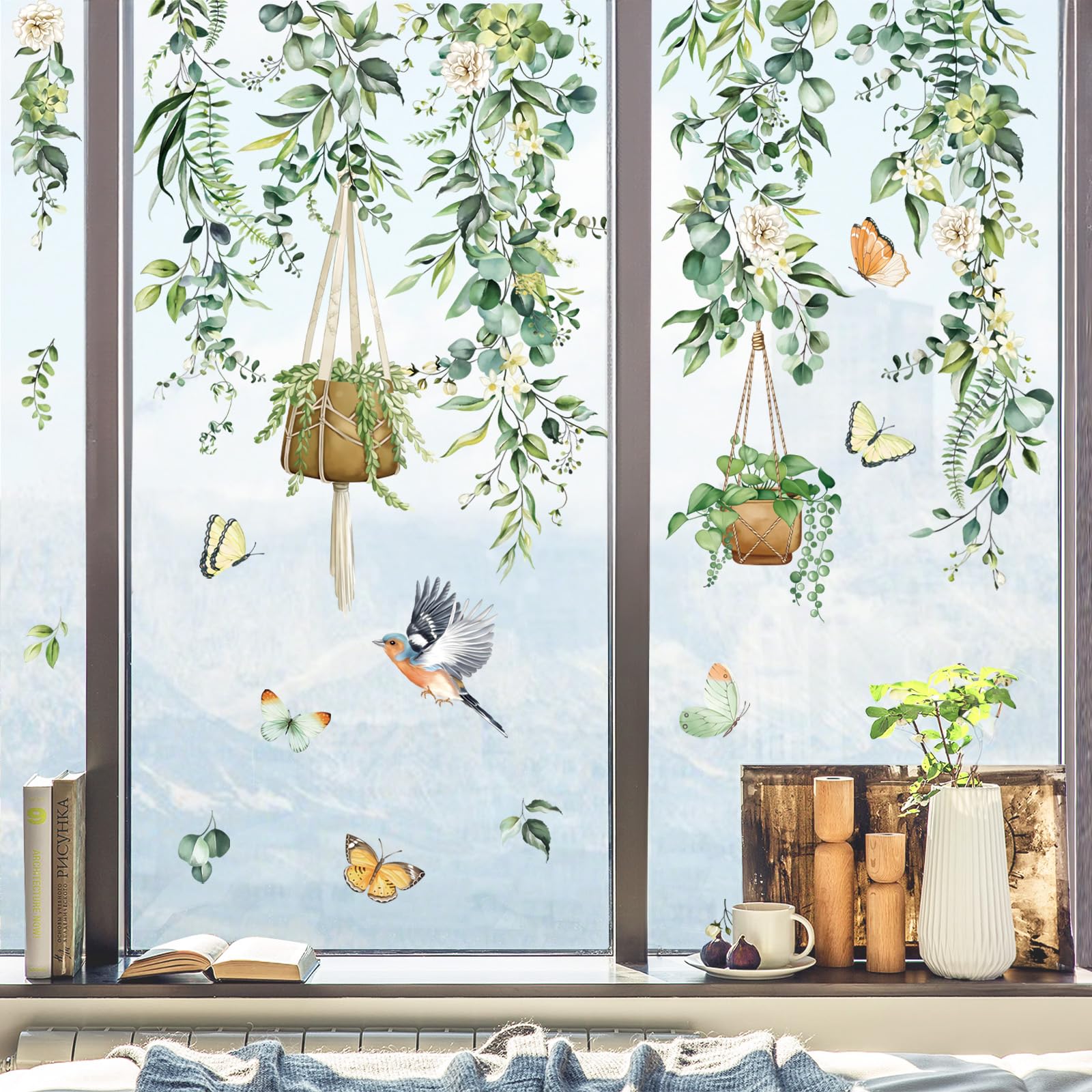 decalmile Fensteraufkleber Hängende Rebe Grün Fensterbilder Frühling Sommer Fenster Abziehbilder Vögel Blätter Pflanzen Vögel Anti-Kollision Fenstersticker Glas Fensterdeko Aufkleber